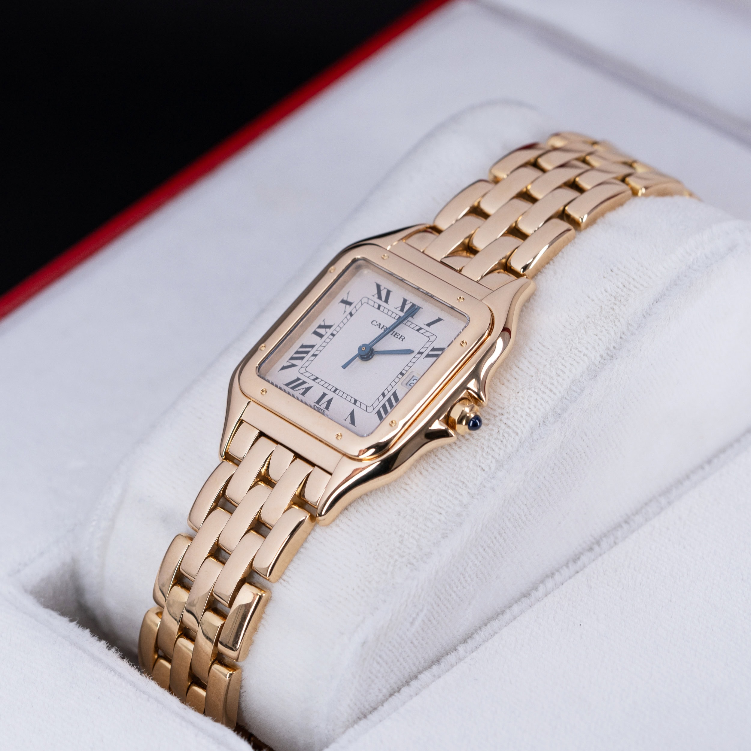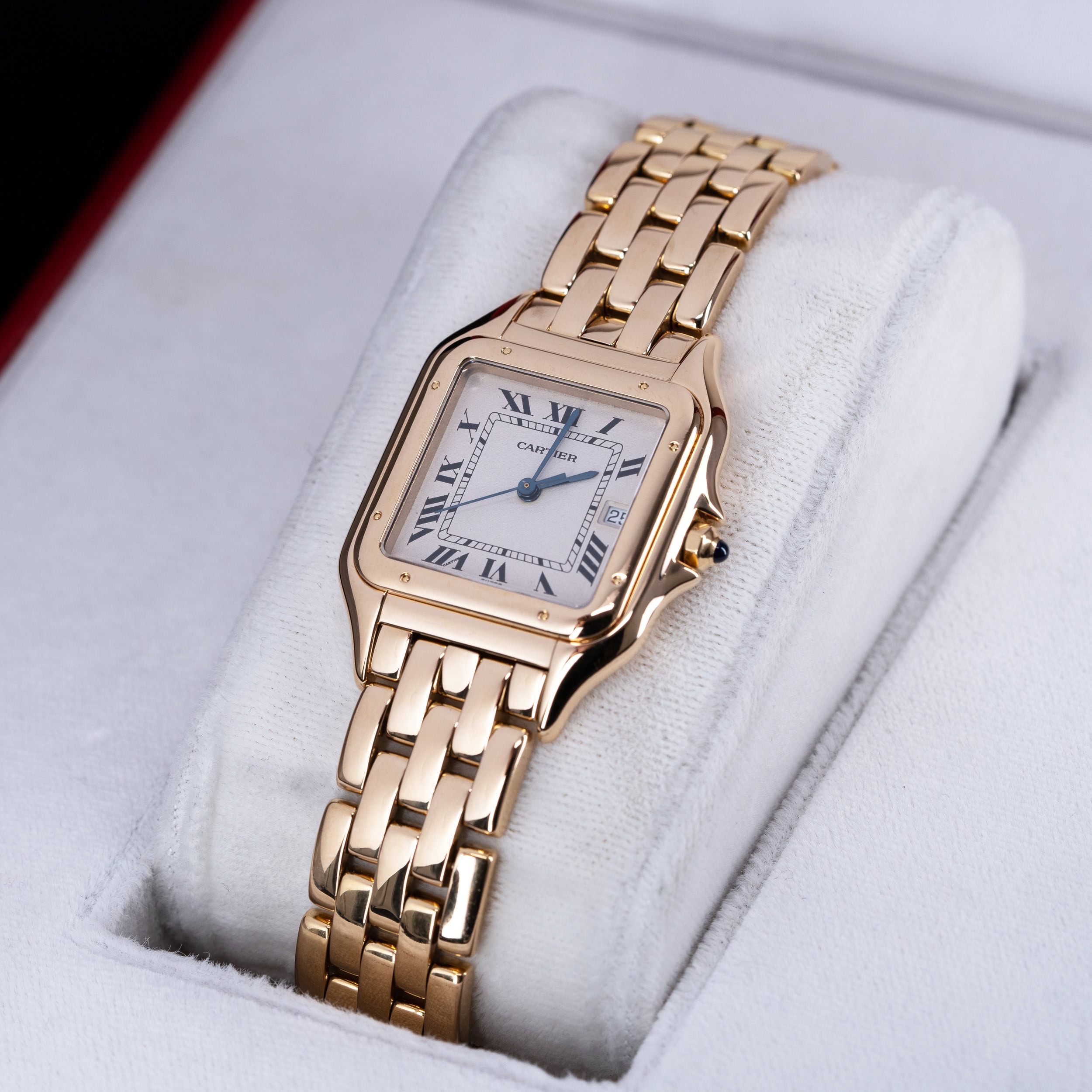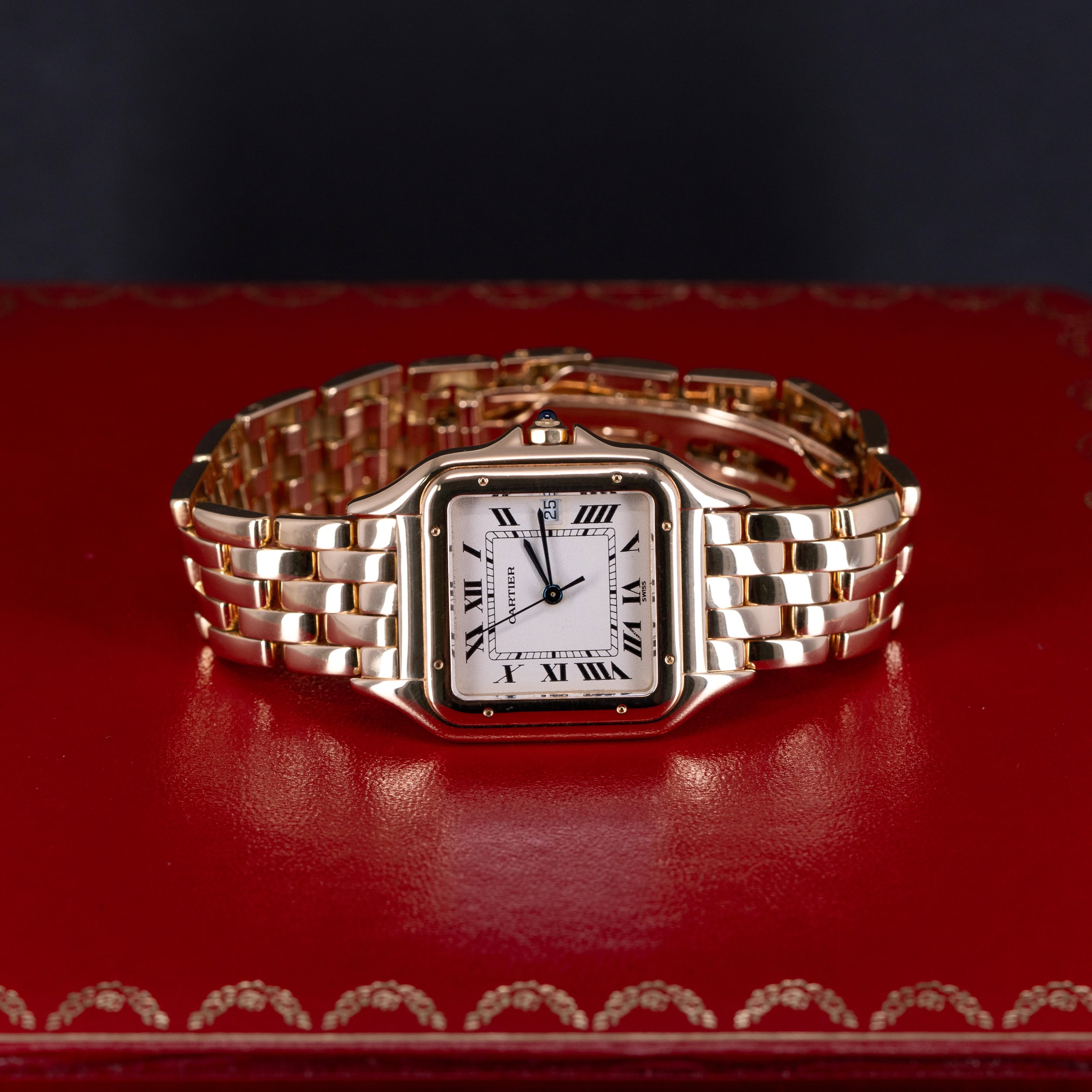 Kaunis Cartier Panthère Quartz rannekello ref. 883968 noin 1980-1990-luvun vaihteesta.