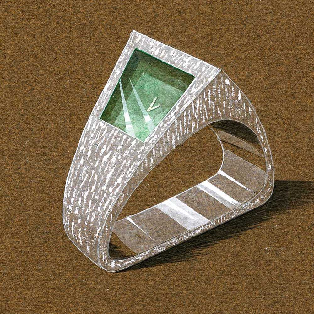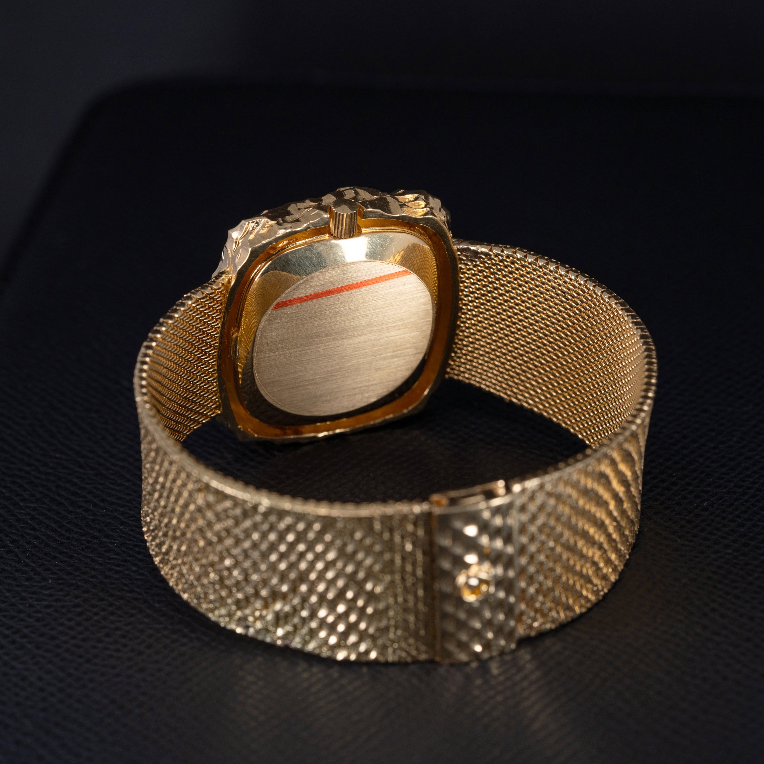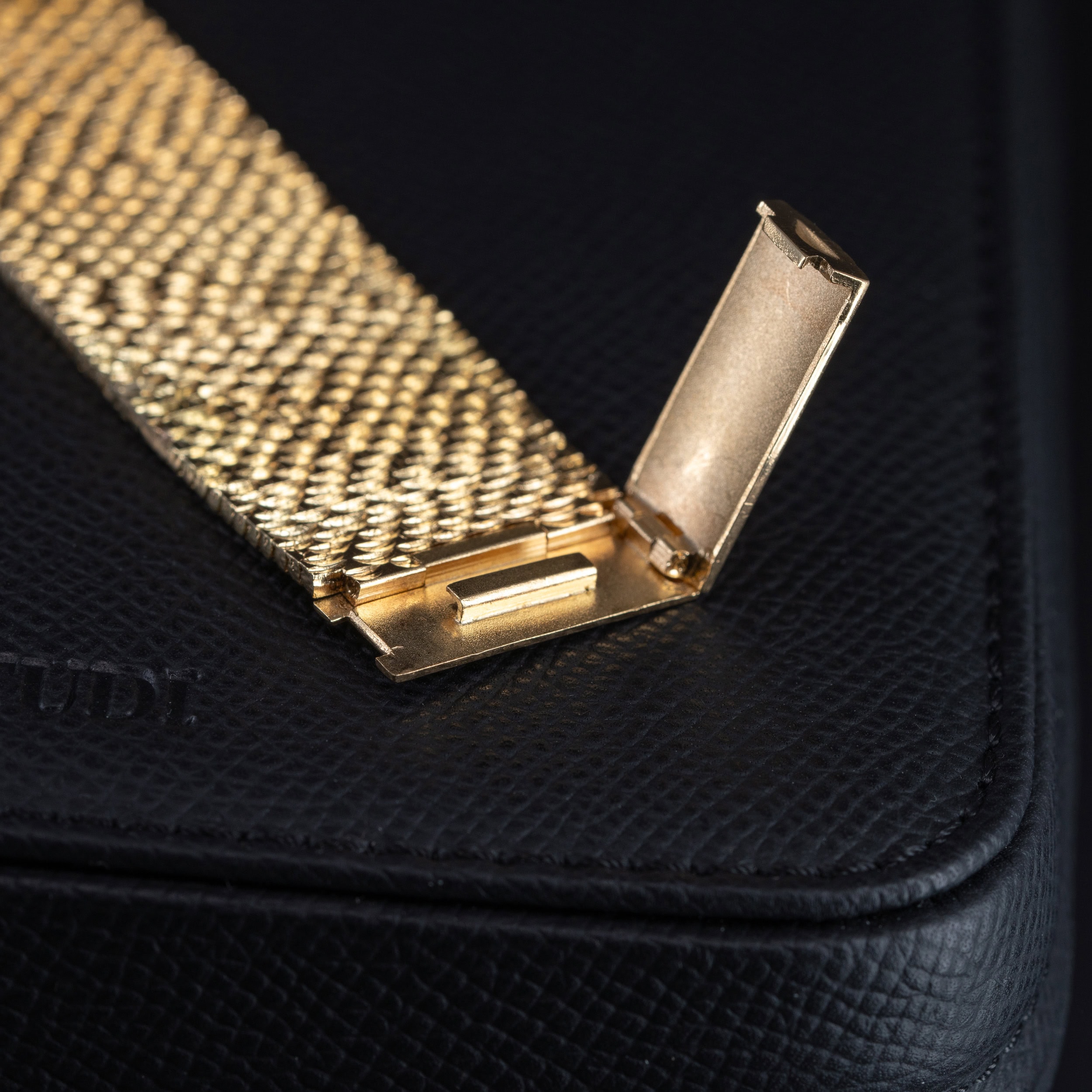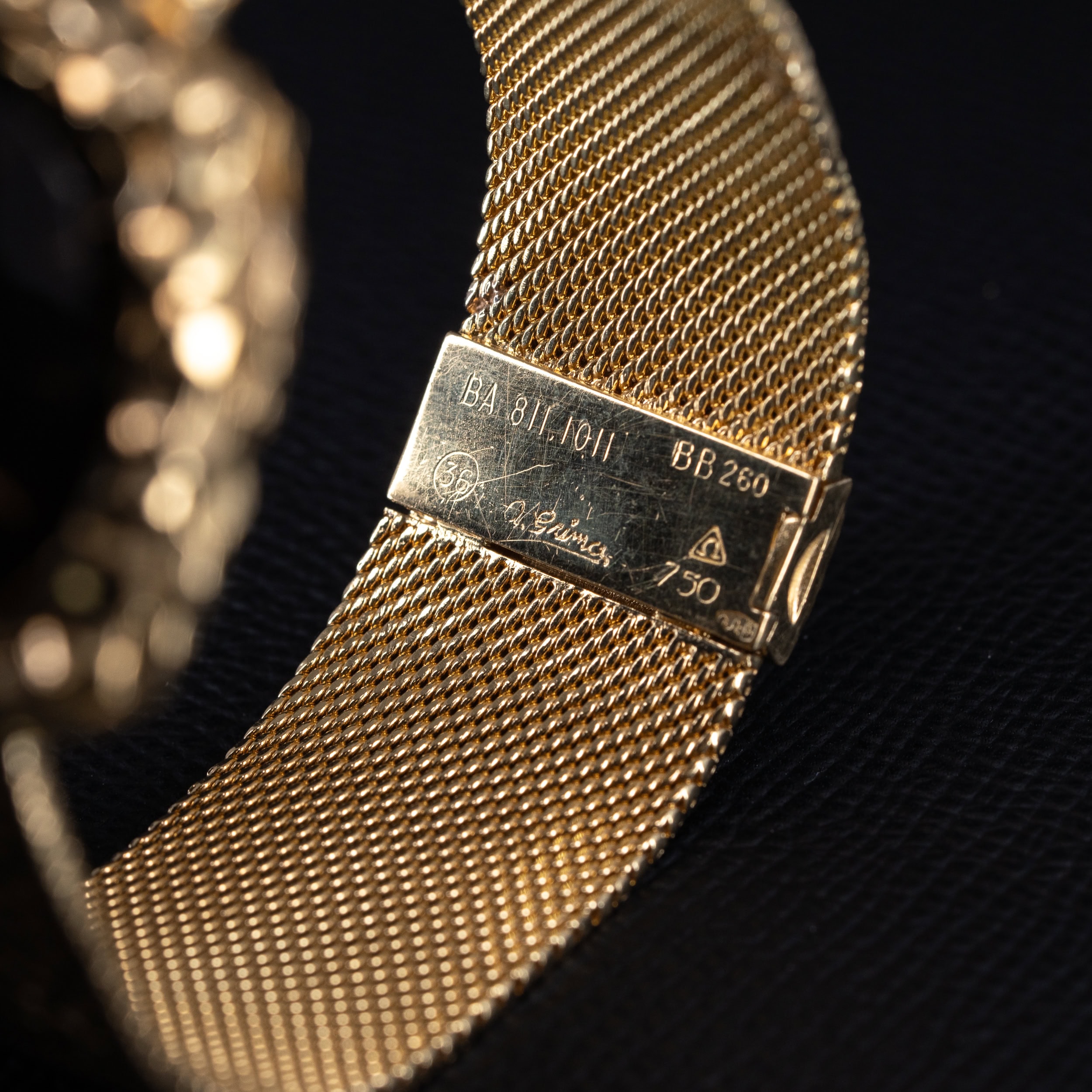Kellon alkuperäinen käsityönä valmistettu 18k massiivikultainen ranneke ja sen lukkomekanismissa on Omegan tunnusten sekä tarkistusleimojen lisäksi lyöty merkintä: A.Grima.