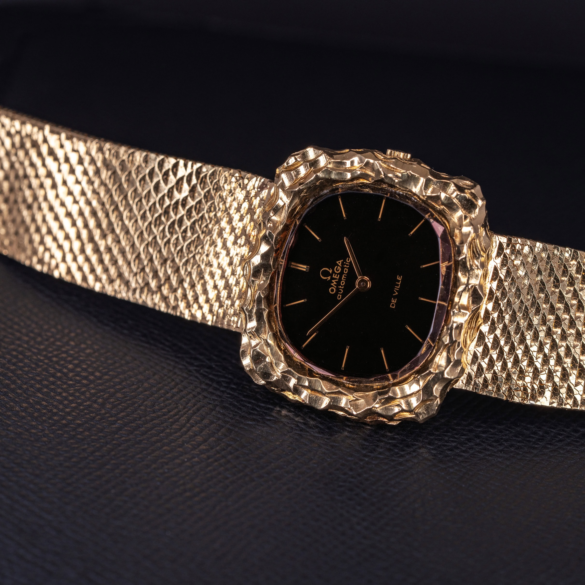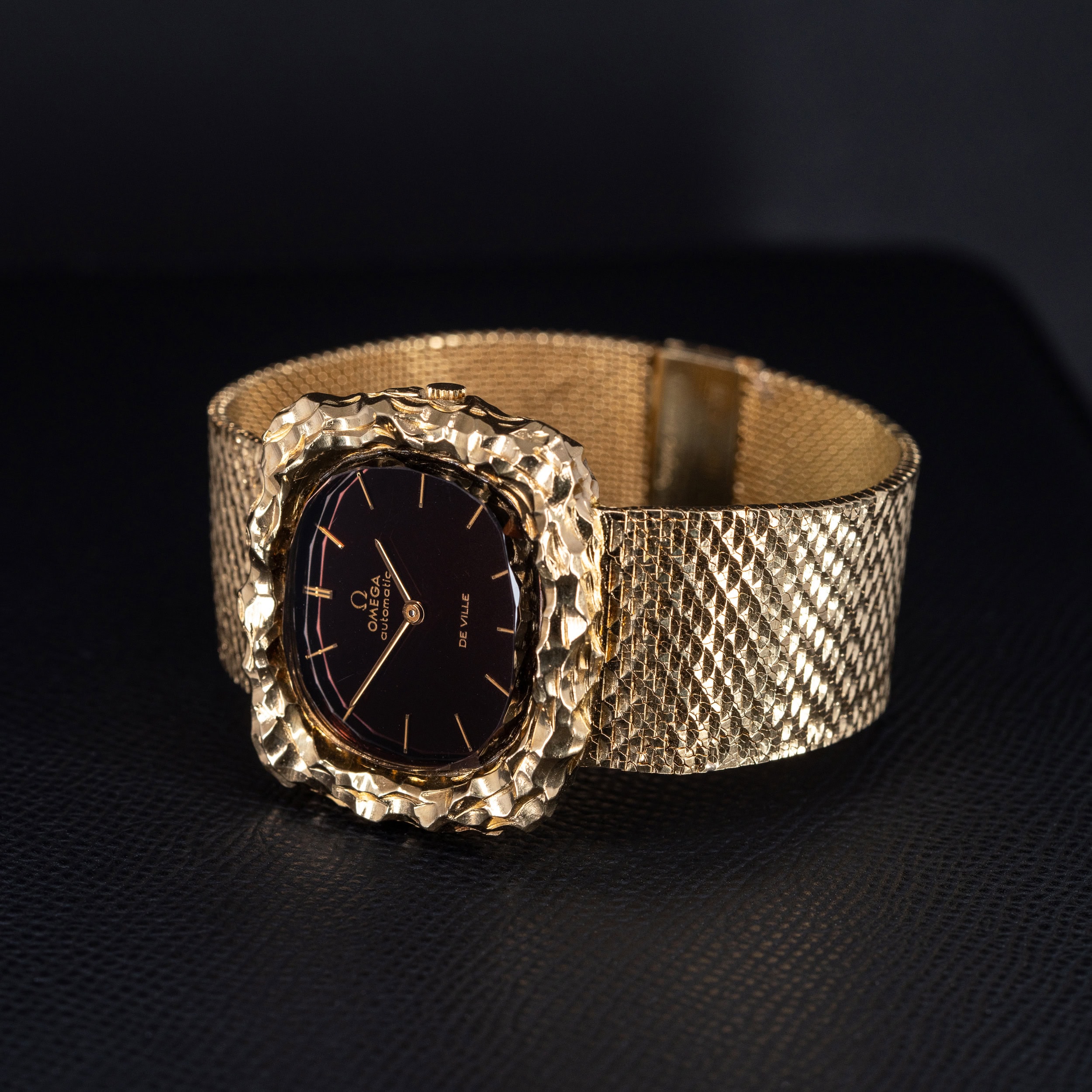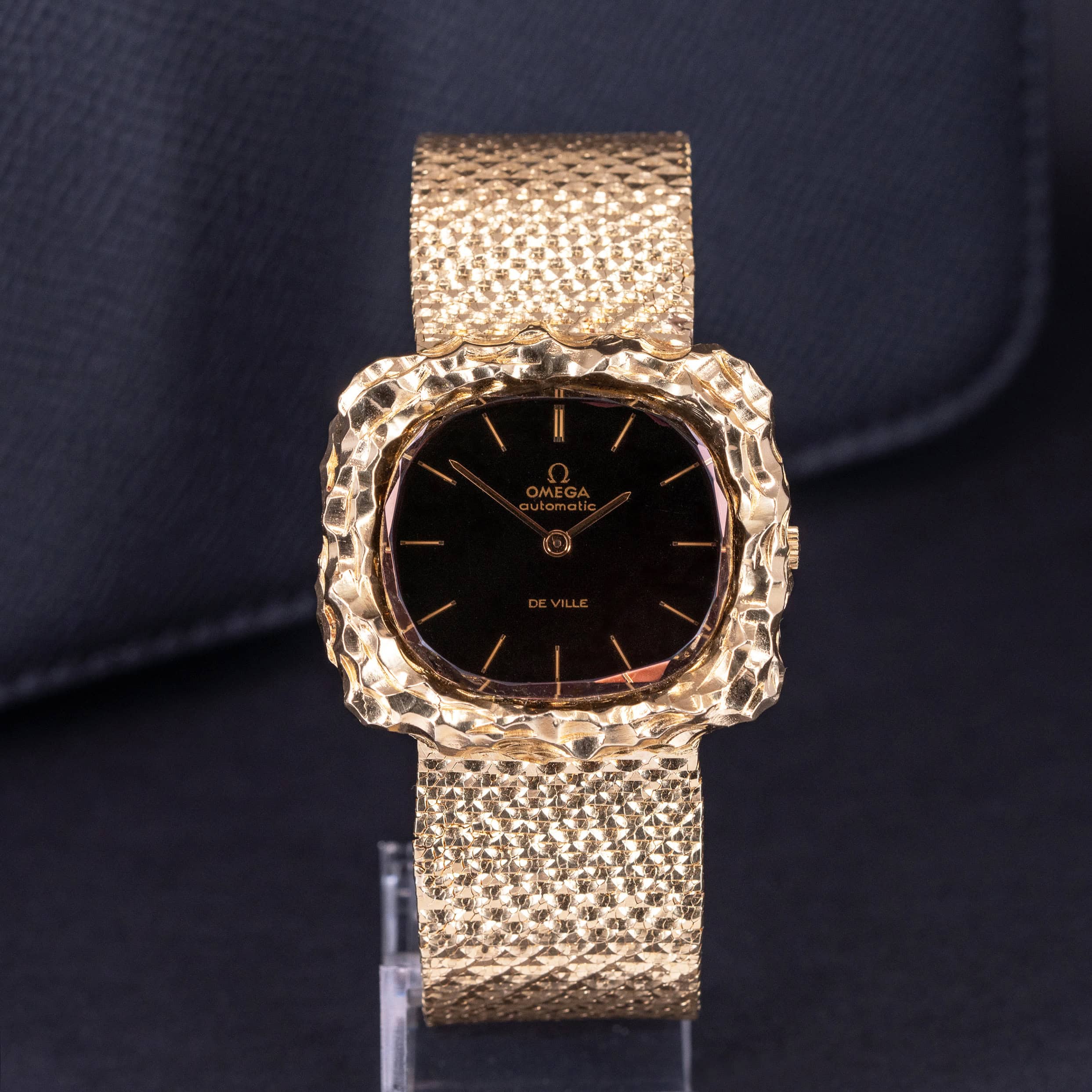 Kellossa on tummanruskea Automatic De-Ville kellotaulu ja kullatut osoittimet. Taulun suojana on aito fasettihiottu kvartsikivi, joka katselukulmasta riippuen sävyttää taulun ruskeasta mustan sävyyn. 18k kultainen taottu ja hiottu kultakuori on upeassa kunnossa. Kuoren koko on 36 x 38 mm.