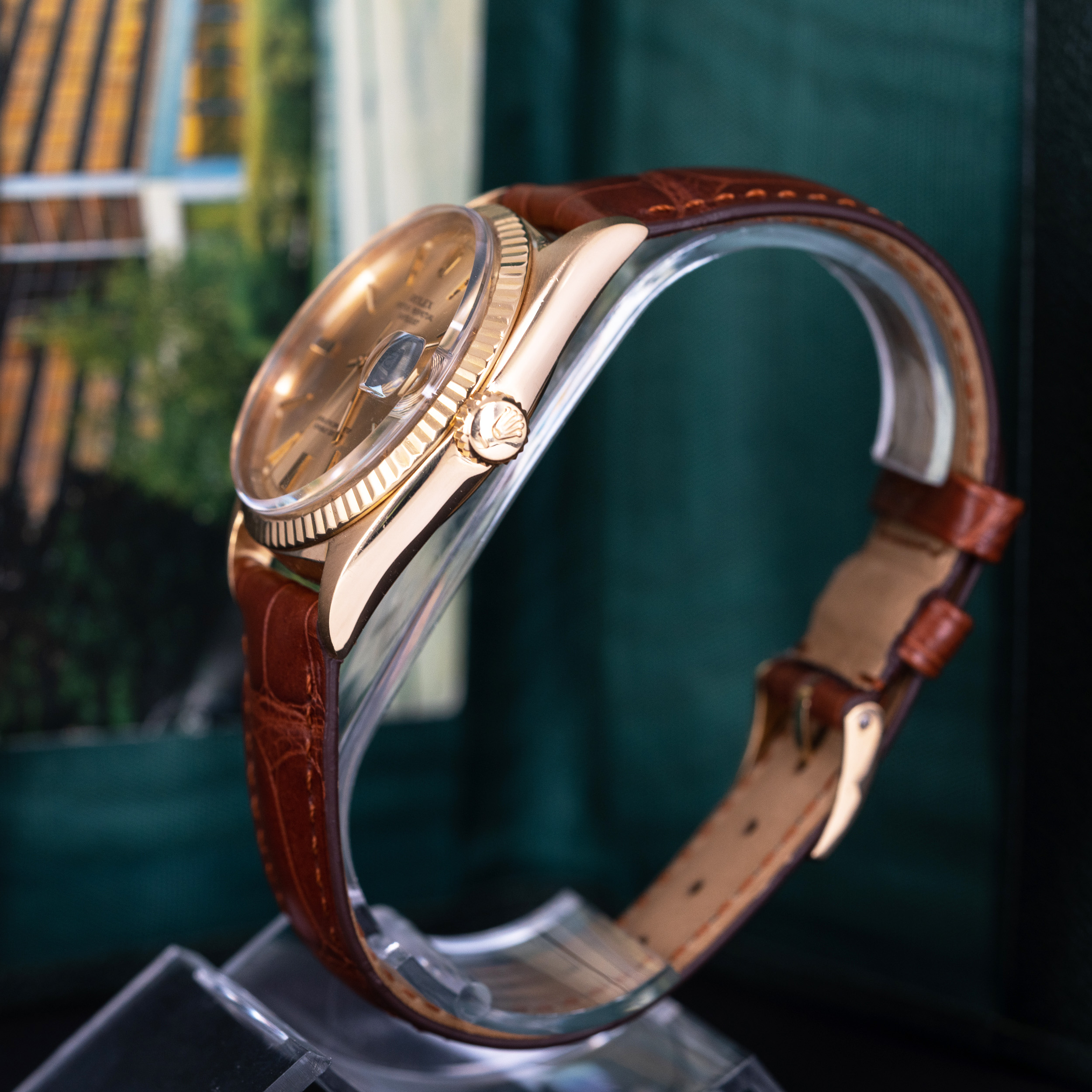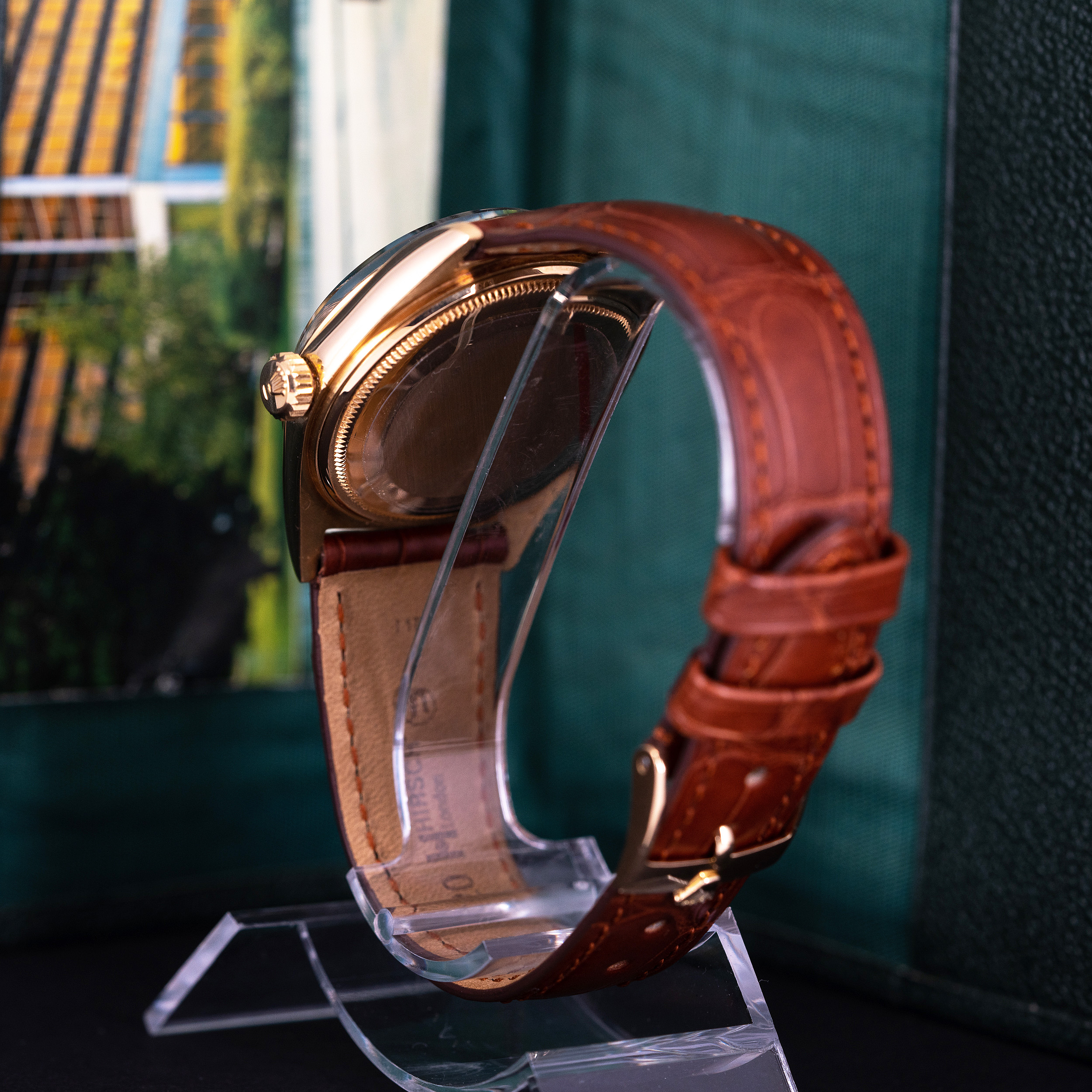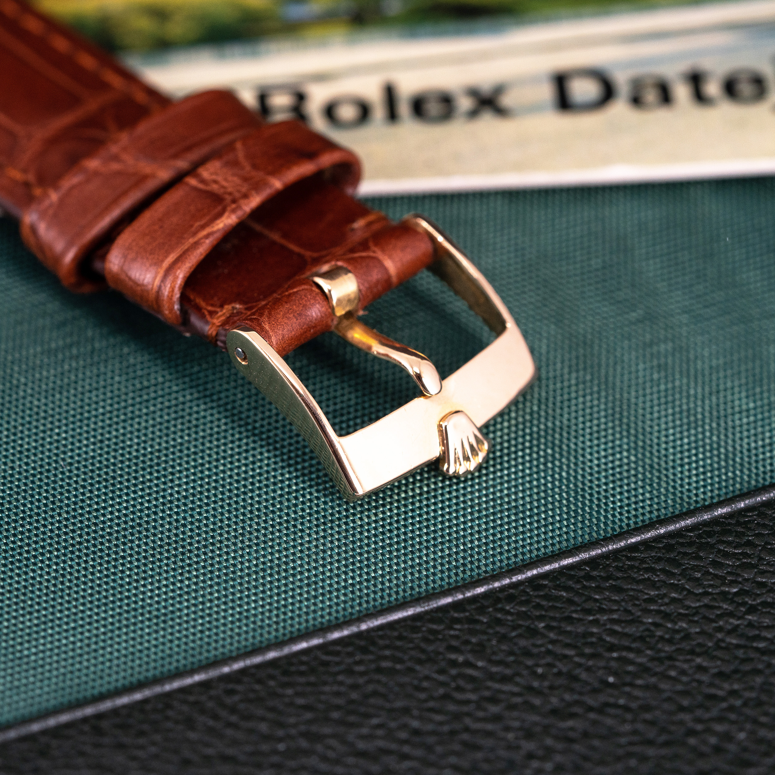 Kellossa on juuri huollettu Rolex cal.1570 automaattikonesto. Ranneke on Hirsch London Alligator mallia. 18k kultainen Rolex solki on kellon alkuperäinen. Tämä yksilö ei ole koskaan ollut kultaranteella.