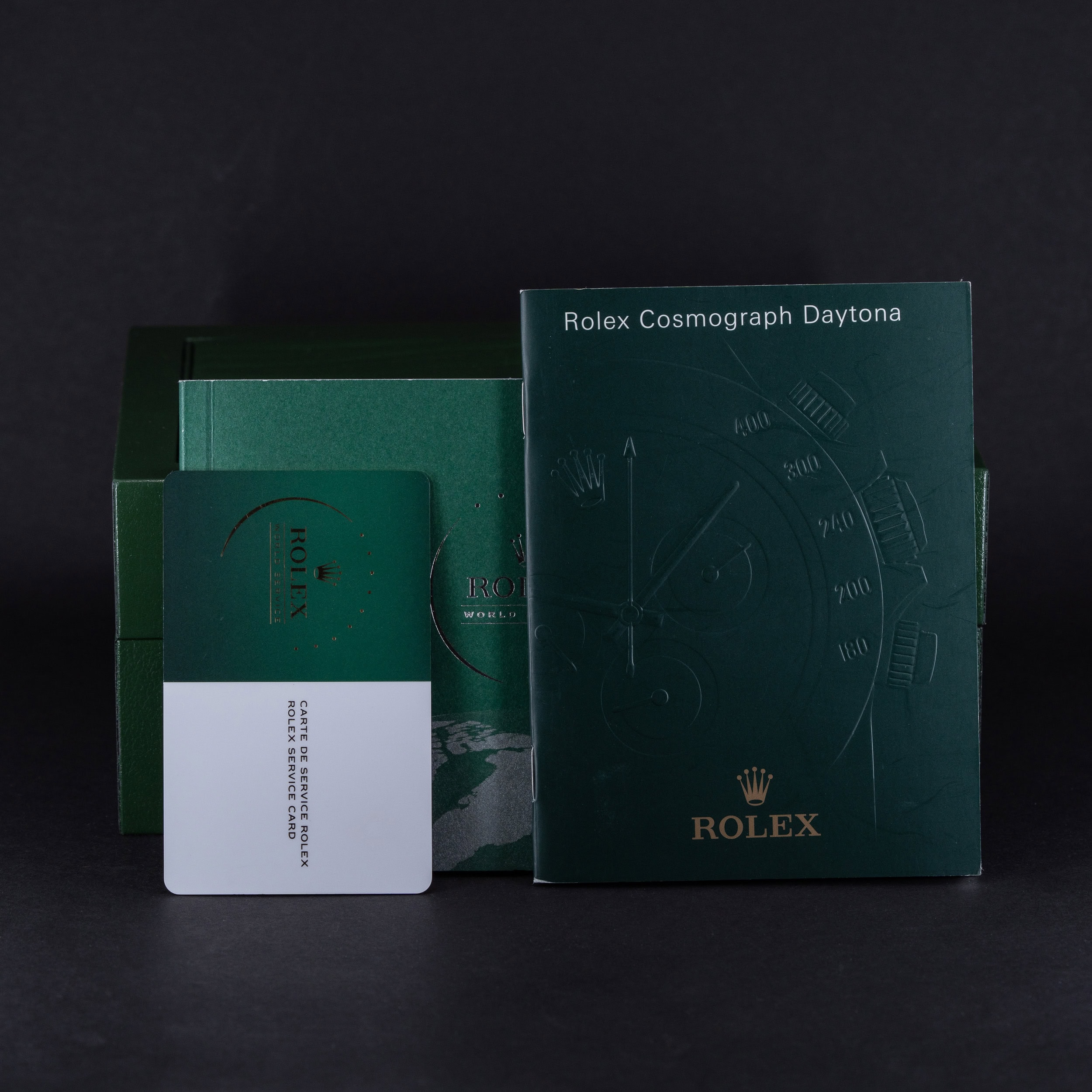 Kellon mukana tulee molemmat suojalaatikot (sisä ja ulko), AD:n huoltotakuu kortti, käyttöohjeet, vihreä tägi ja bezel suojarengas. Kronometritodistus puuttuu.