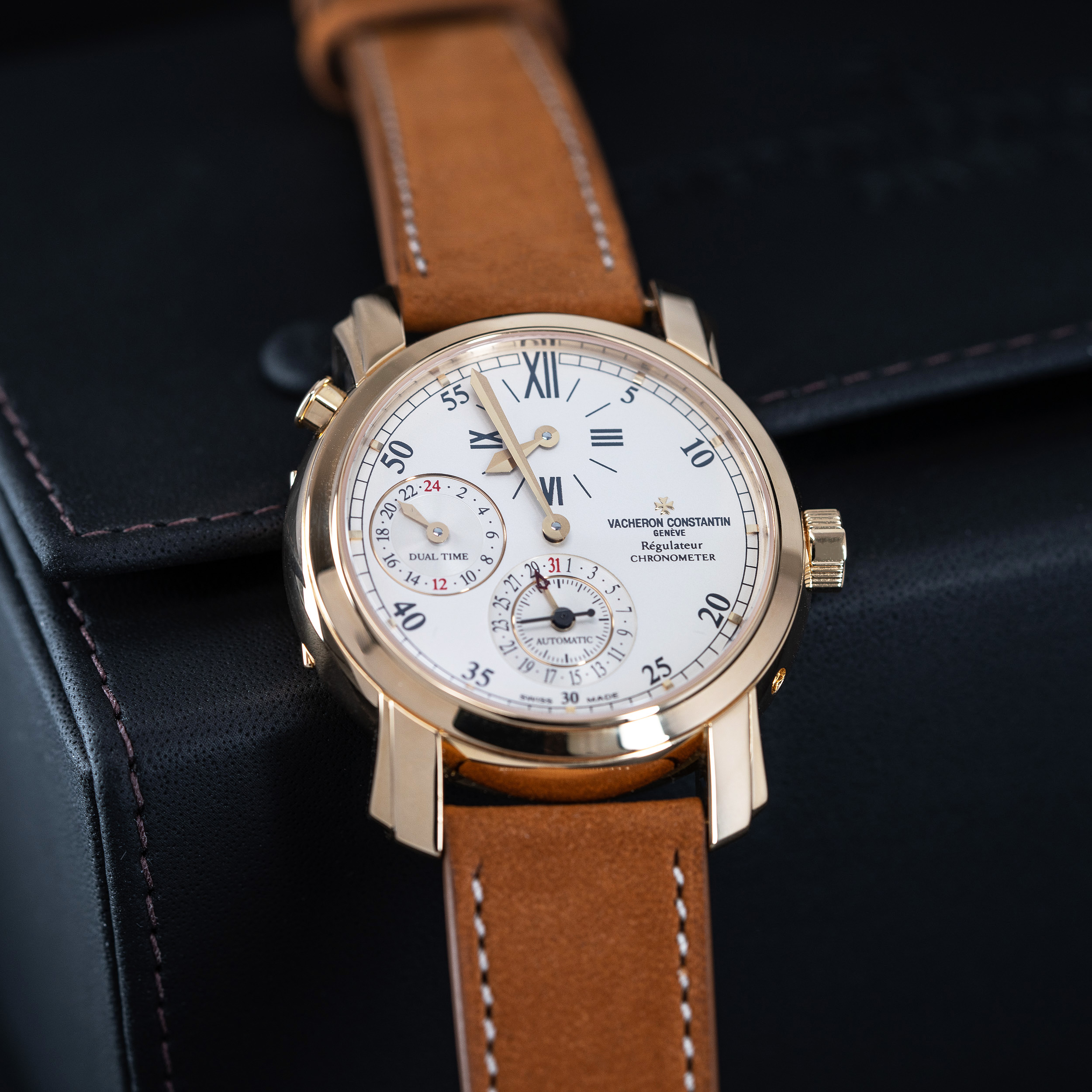 Vacheron & Constantin Malte Dual-Time ref. 42005 n. vuodelta 2004. Kello on juuri täydellisesti kunnostettu Vacheron & Constantin tehtaan huollossa.