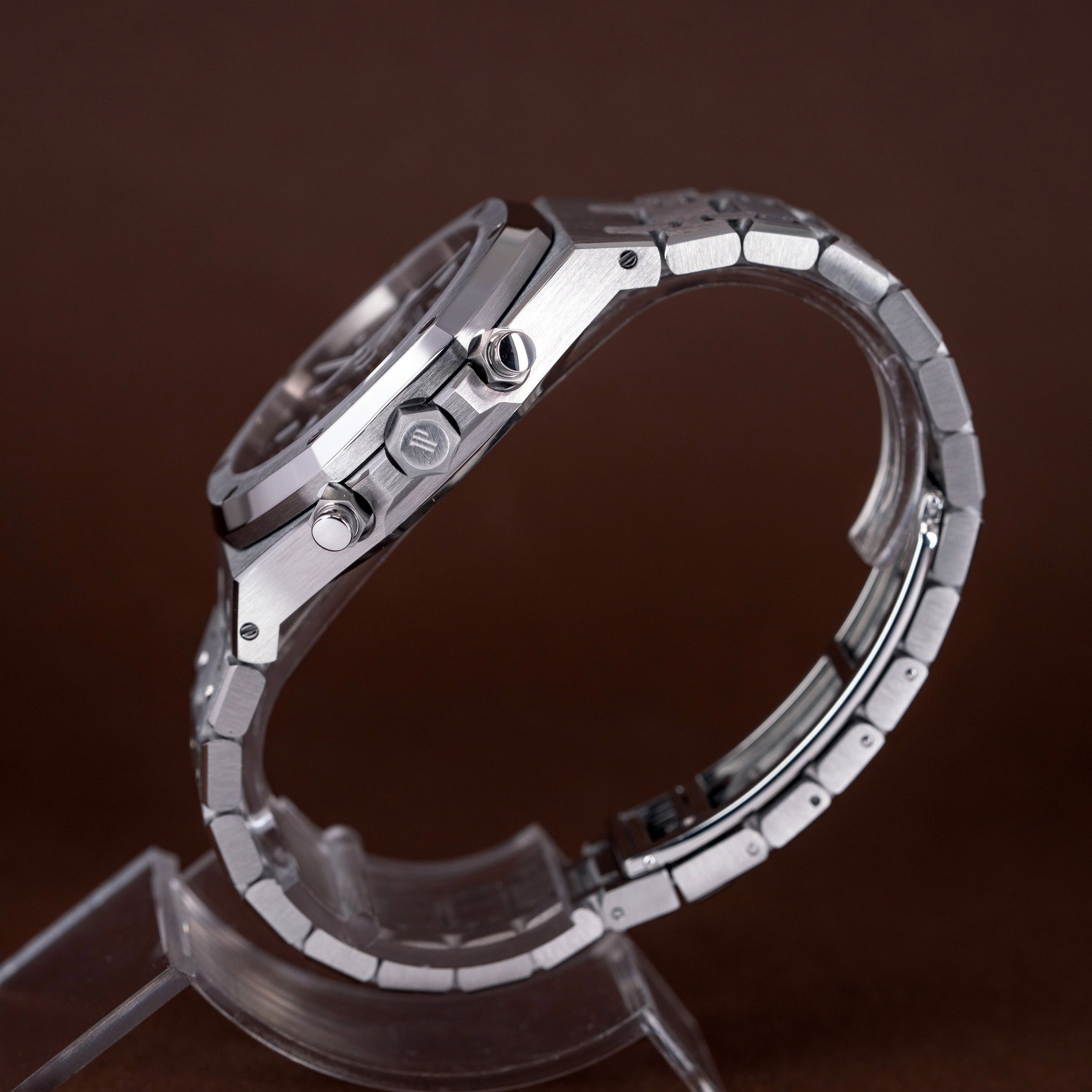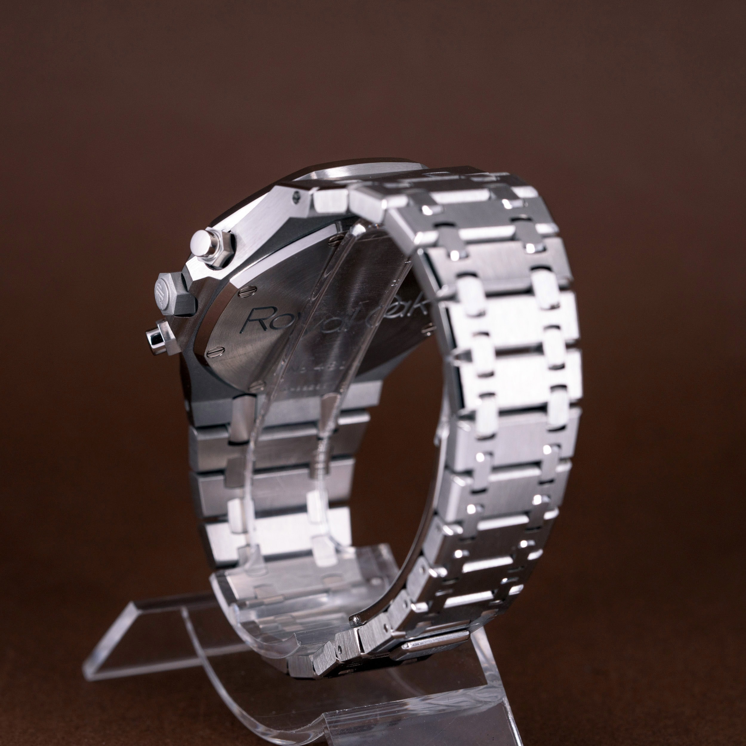 Royal Oak malliin teräsranneke on uudenveroisessa kunnossa ja siinä on täydet linkit.