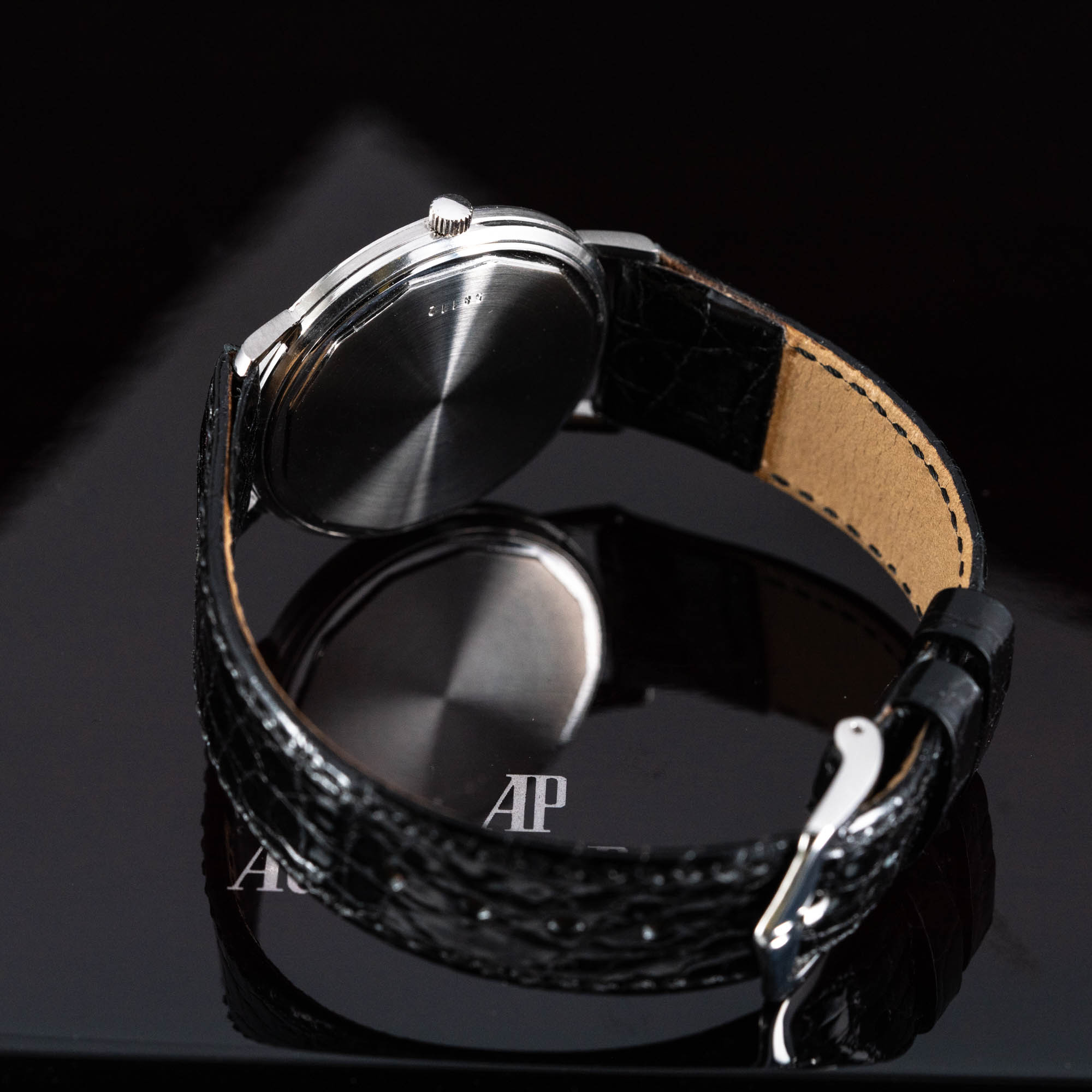 Koneisto on harvinainen ultraohut AP cal. 2120 joka on juuri kunnostettu. Ranneke on Hirschin valmistama aito ja ohut krokotiilinnahkainen malli. Kellon mukana tulee AP:n puinen kellolaatikko (sisä ja ulko), ei papereita. Kuoren halkaisija on 34mm.
