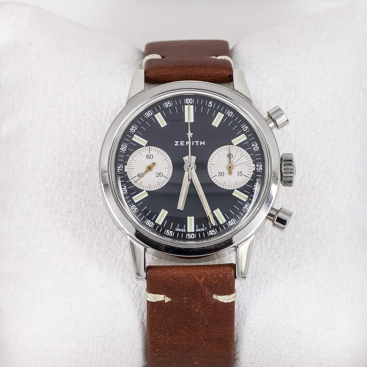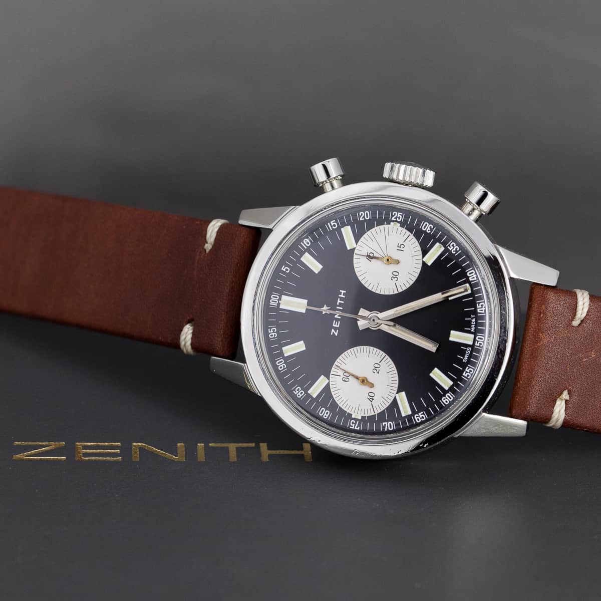 Zenith toi A278 mallin myyntiin v.1969. Mallista esiteltiin kolme eri versiota, A273 valkoisella kellotaululla, A279 hopeisella kellotaululla ja tämä A278 mustalla ”reverse panda” kellotaululla. Tässä kellossa käytetty cal.146DP oli Zenithin viimeinen manuaalivetoinen kronografikoneisto ennen El Primeroa. Koneistosta oli kaksi eri versiota 146HP kolmella rekisterillä ja 146DP kahdella rekisterillä.