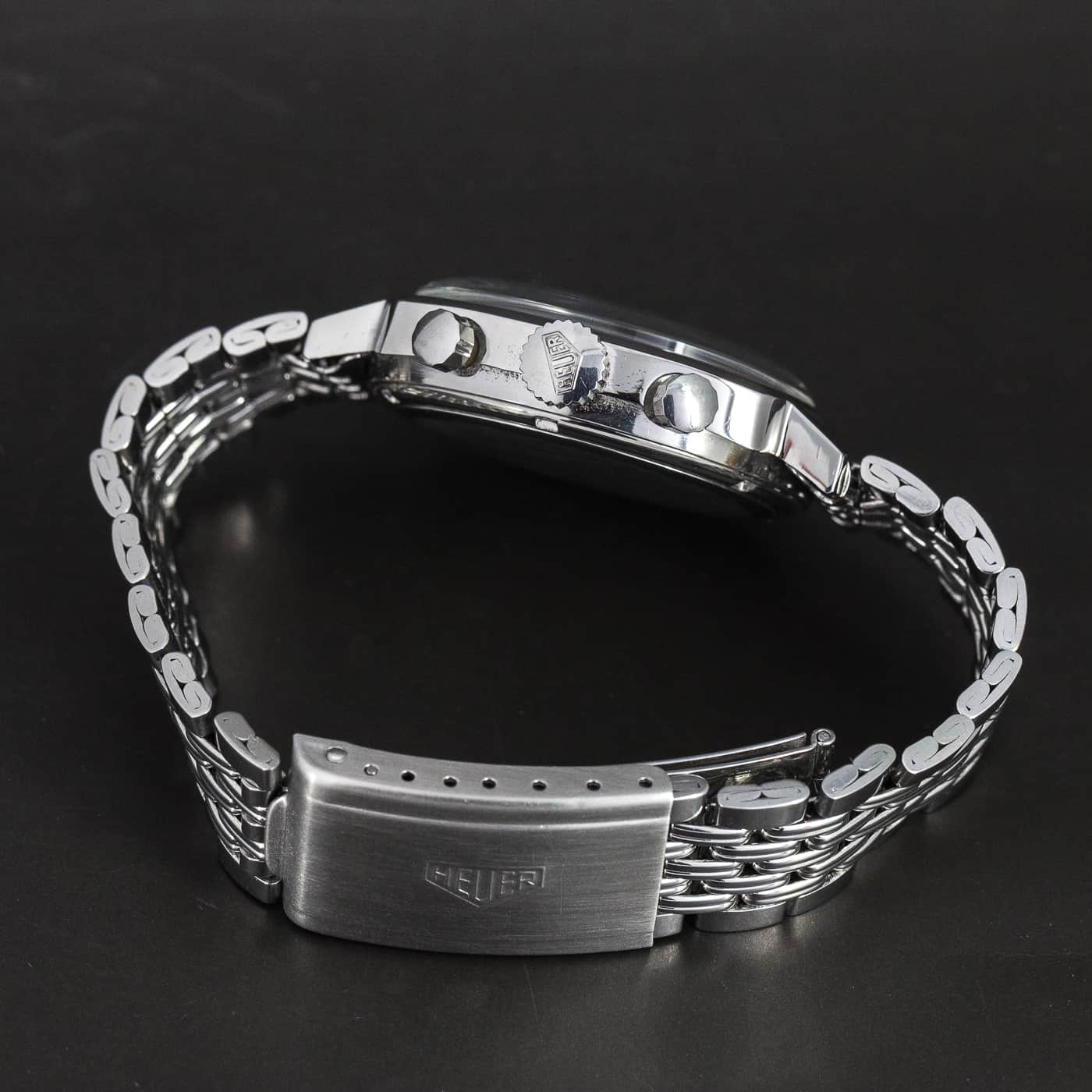 Ranneke on alkuperäinen ja harvinainen Heuer-Gay Frères metalliranneke. Kuoren koko on 37mm.