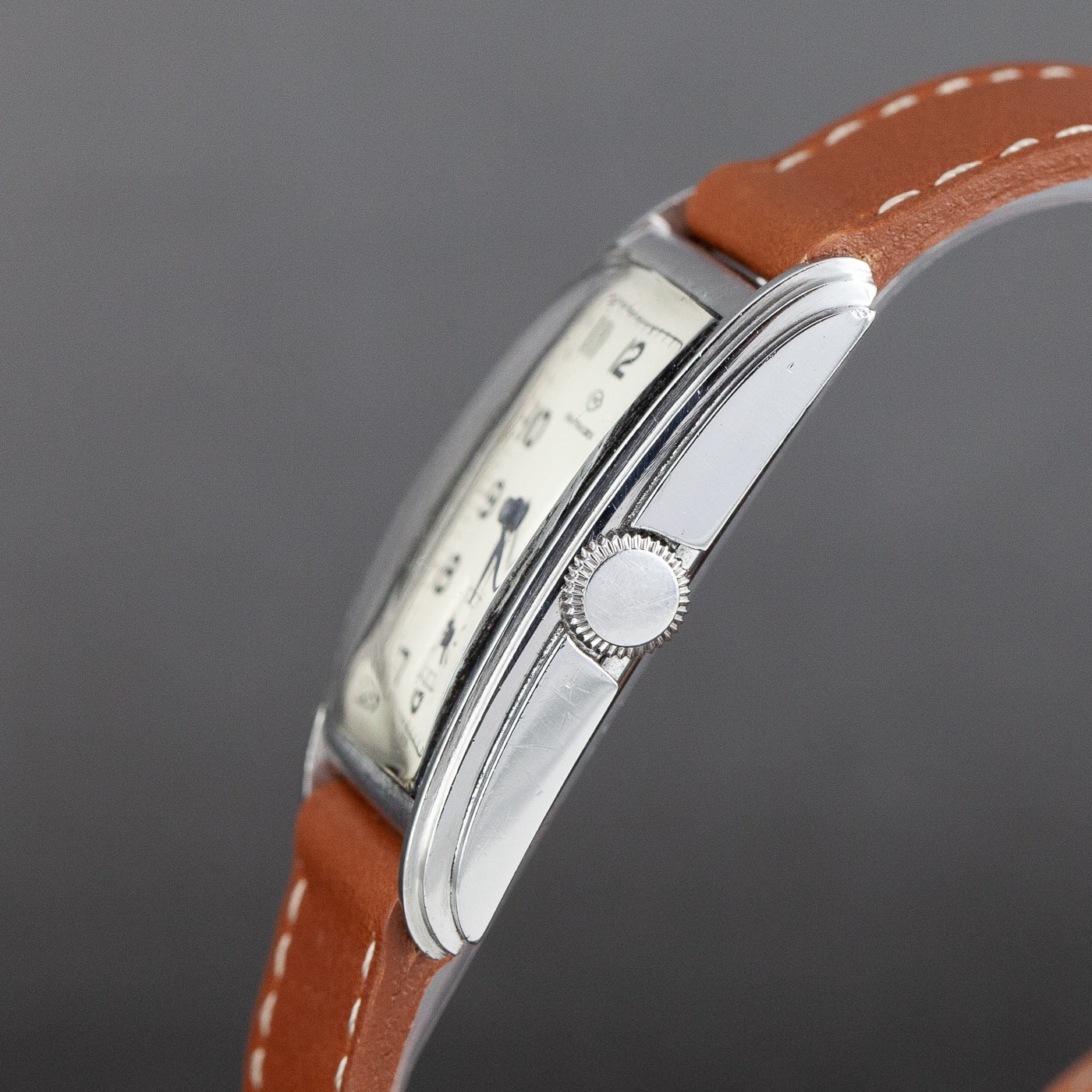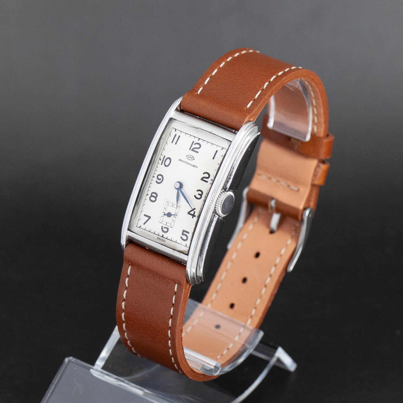 Teräskuorinen IWC Art-Deco rannekello vuodelta 1938. Juuri täydellisesti kunnostettu kokonaisuus. Koneisto on IWC:n cal.87 manuaalivetoinen malli. Kellotaulu on restauroitu yhdellä euroopan parhaimmista taulurestauroijista. Alkuperäiset osoittimet sinistettyä terästä.