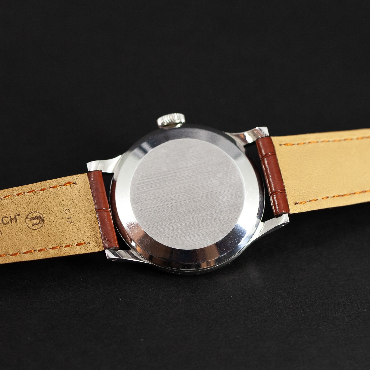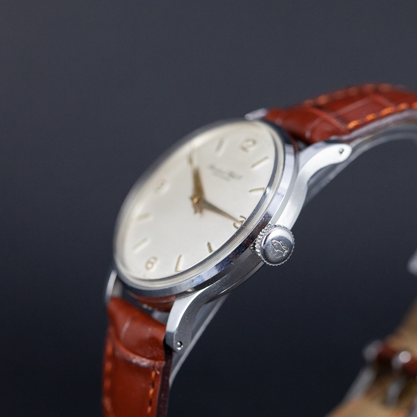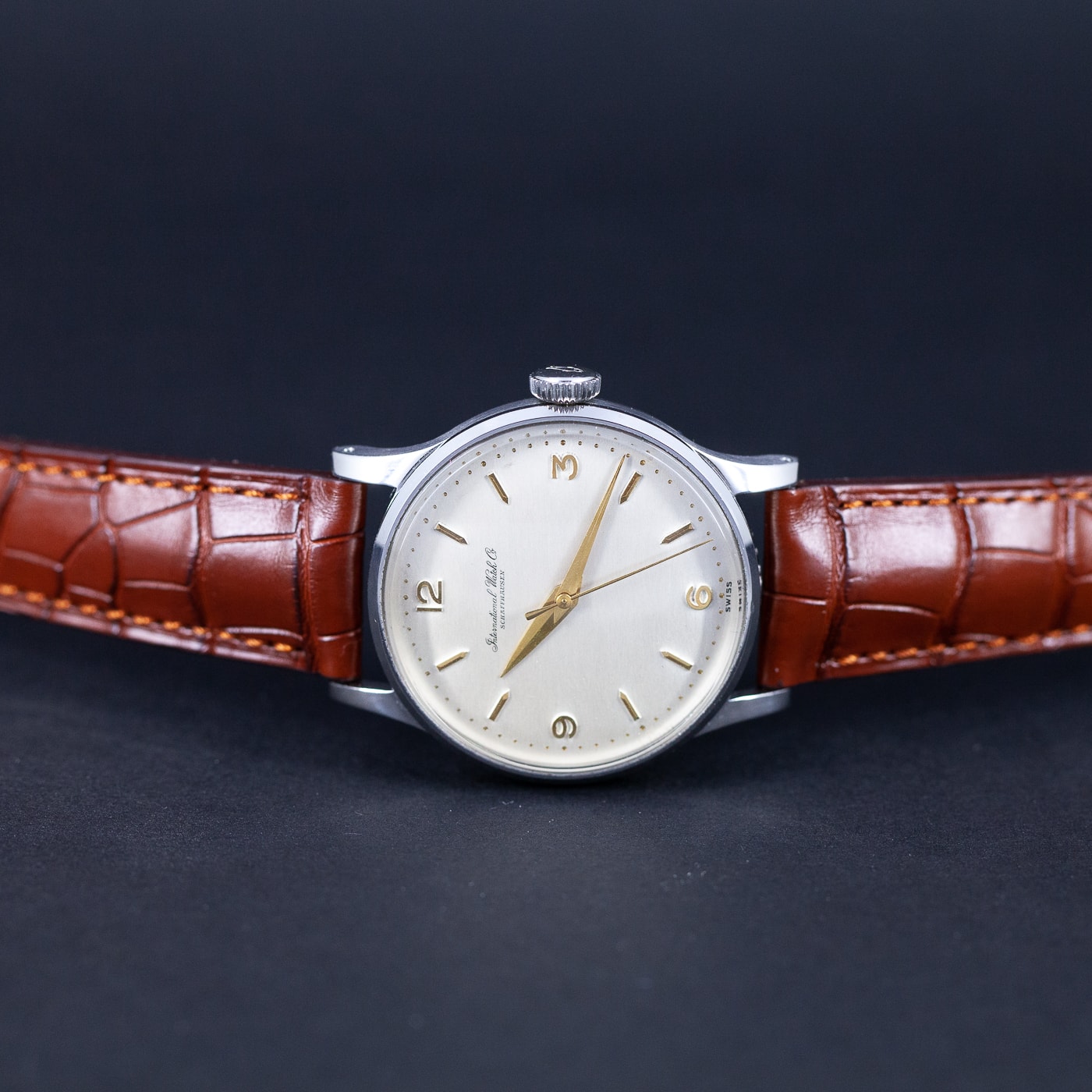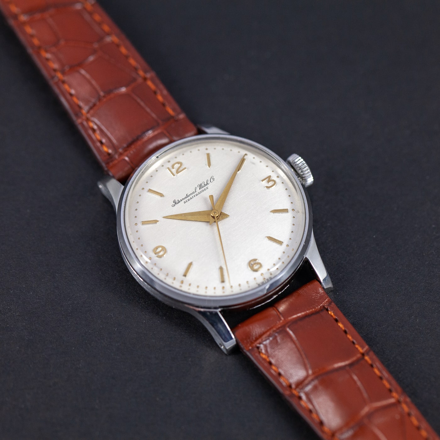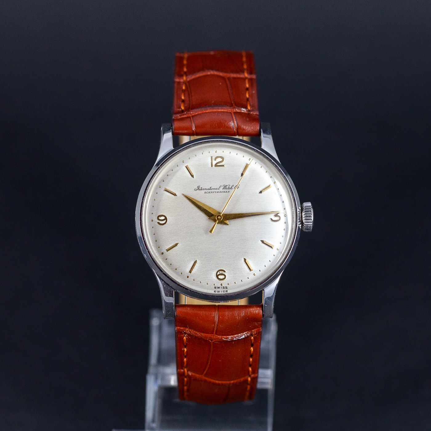 IWC rannekello vuodelta 1955. Täysin alkuperäinen ja lähes uudenveroinen kokonaisuus. IWC:n cal.89 manuaaliviritteinen koneisto on juuri täysin kunnostettu. Alkuperäinen hopeoitu norsunluunvalkoinen kellotaulu.
