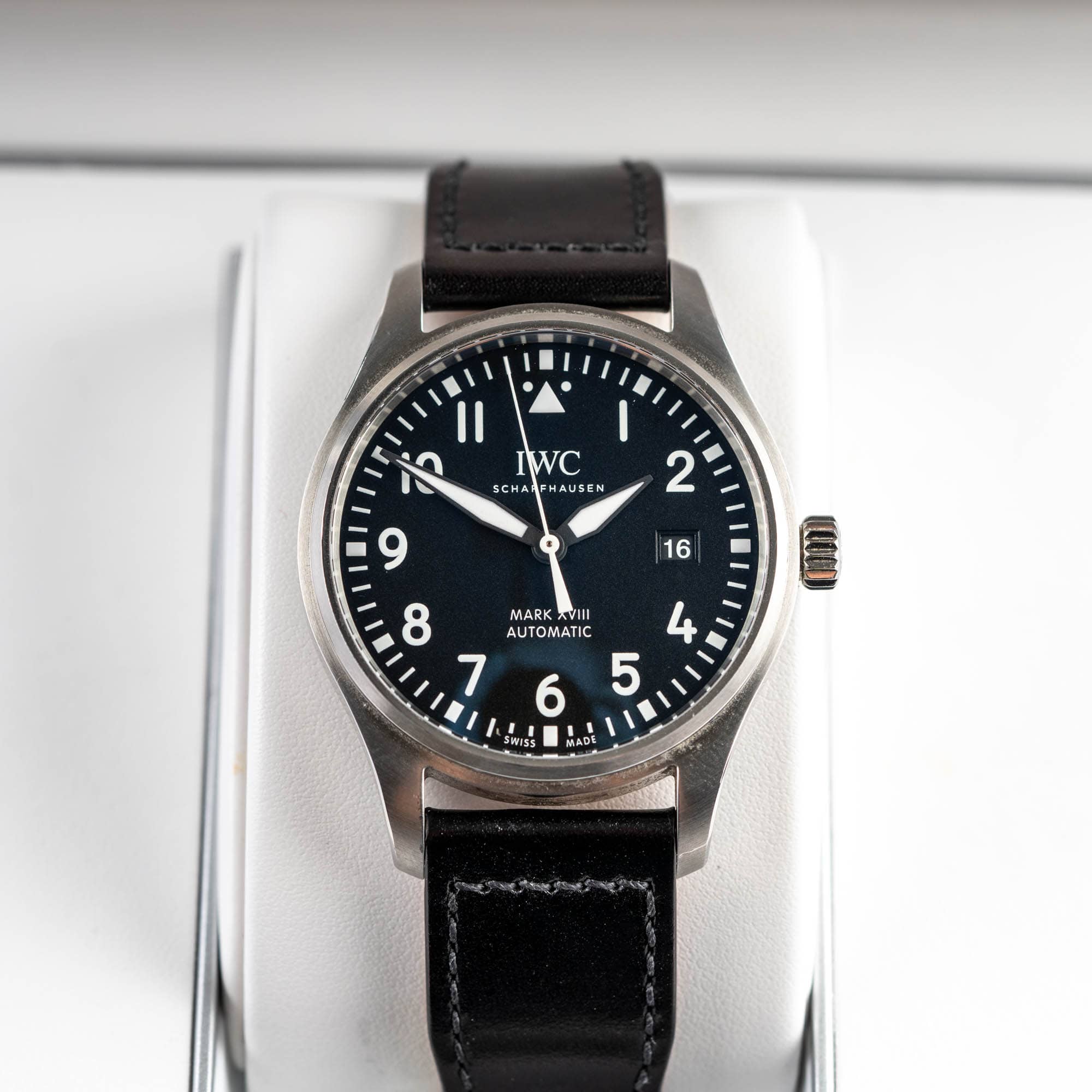 Uudenveroinen IWC Mk XVIII Pilot vuodelta 2017. Full-set, suomikello. Ostettu Lindroosilta 25.2.2017. Virheetön musta kellotaulu ja teräsosoittimet valkoisella superluminova-lumella. Teräskuori on virheetön. Kellossa on IWC cal.35111 automaattikoneisto. Alkuperäinen IWC:n nahkaranneke. Kuoren koko on 40mm.