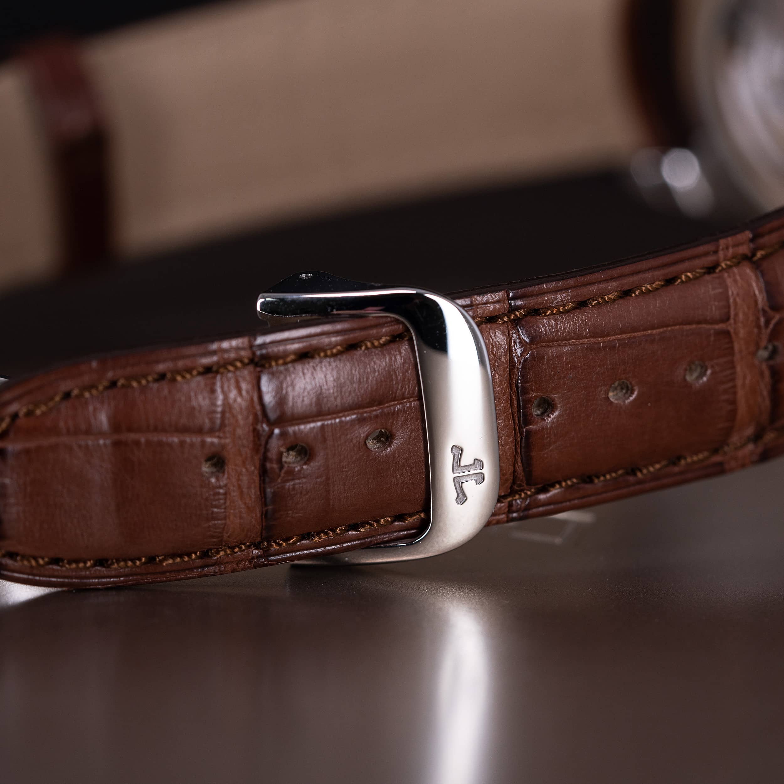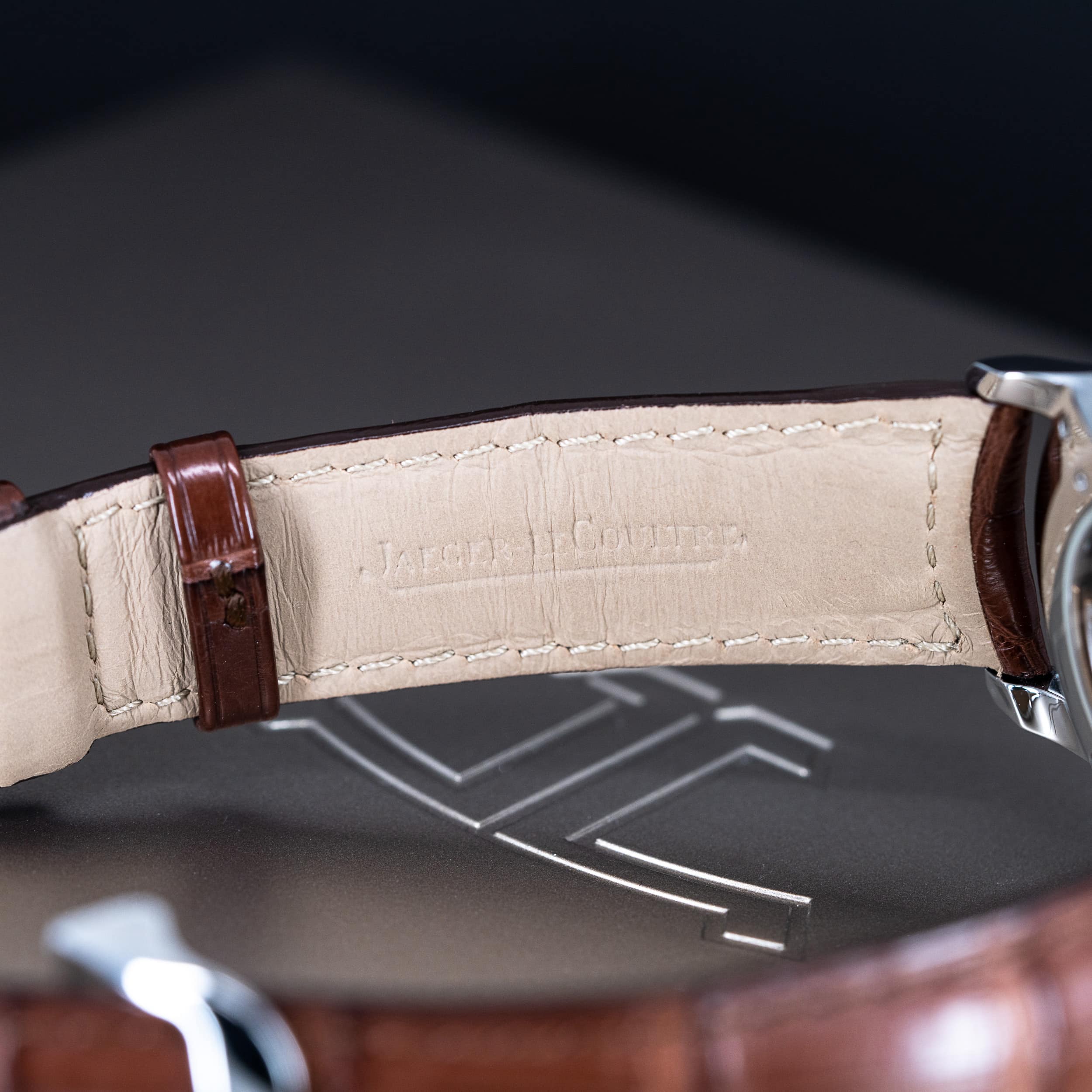 Kellossa on JLC:n NOS alligaattori ranneke ja JLC:n alkuperäinen linkku solki.