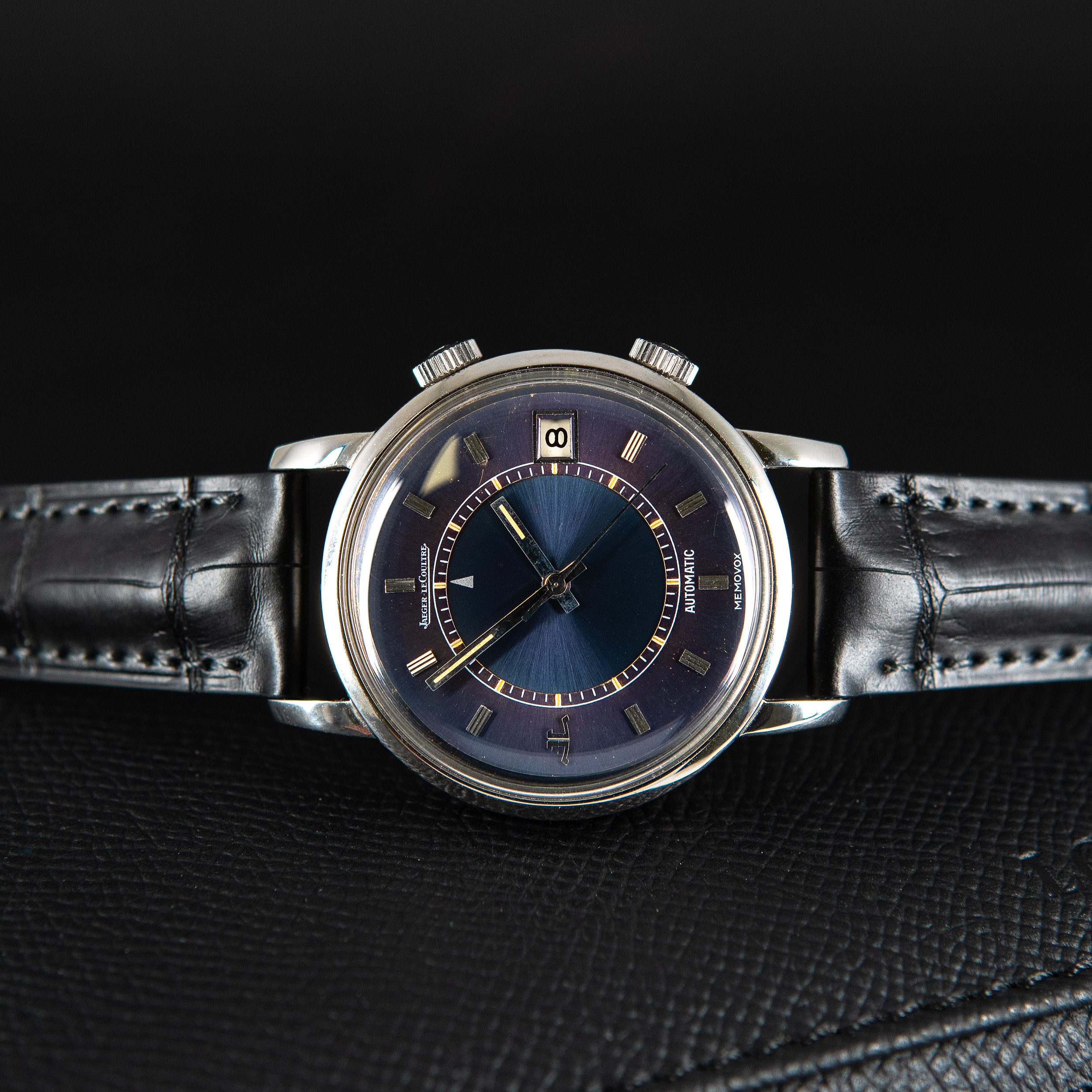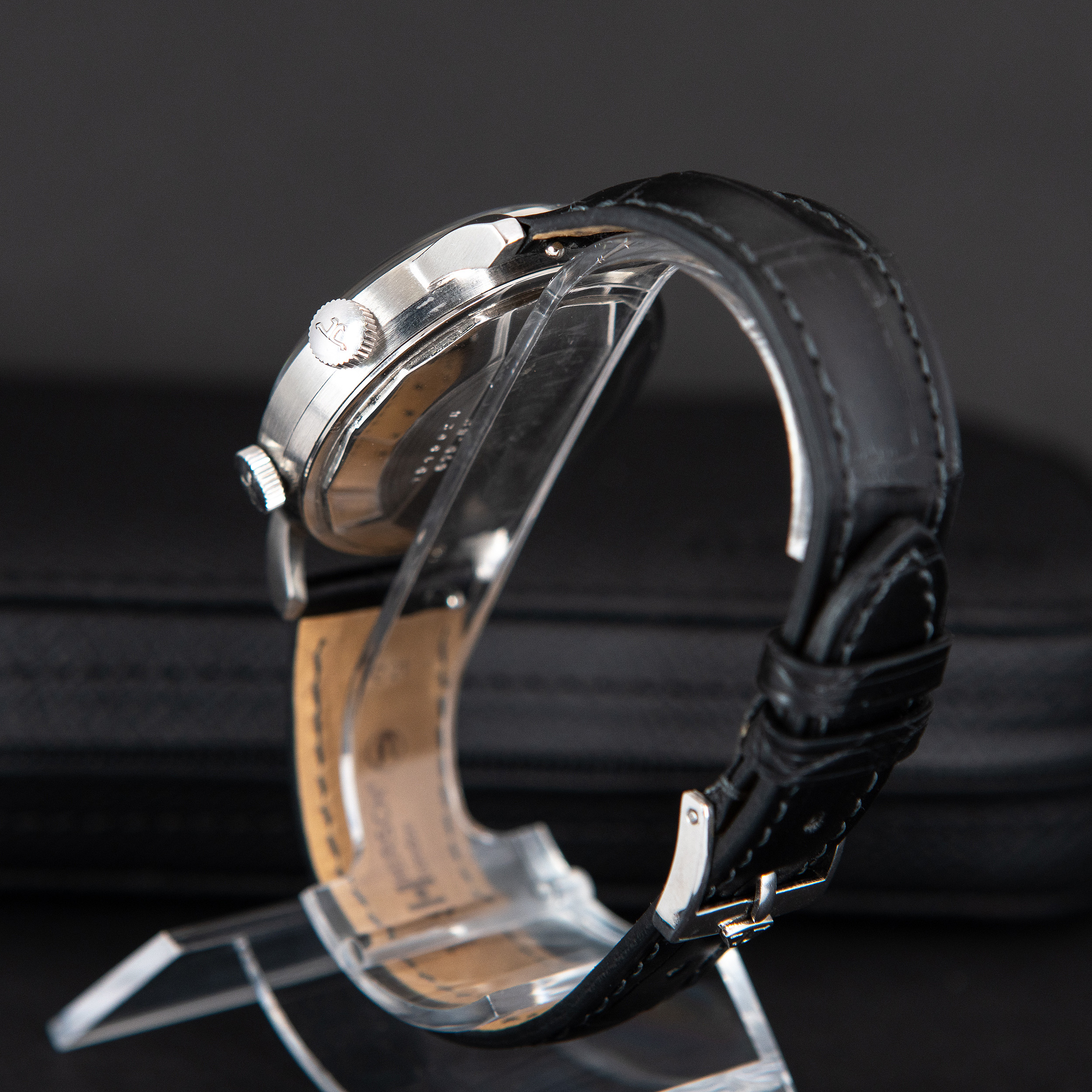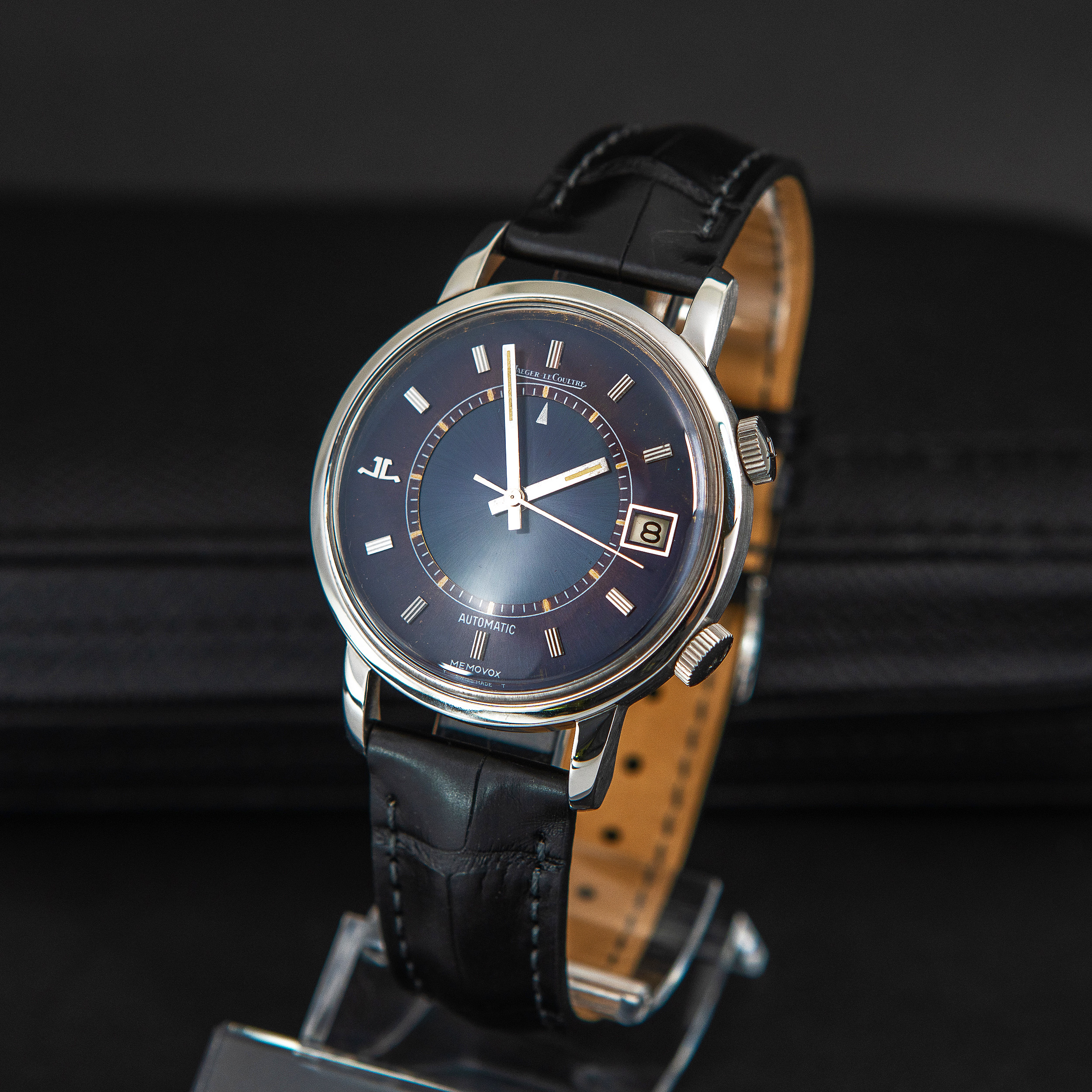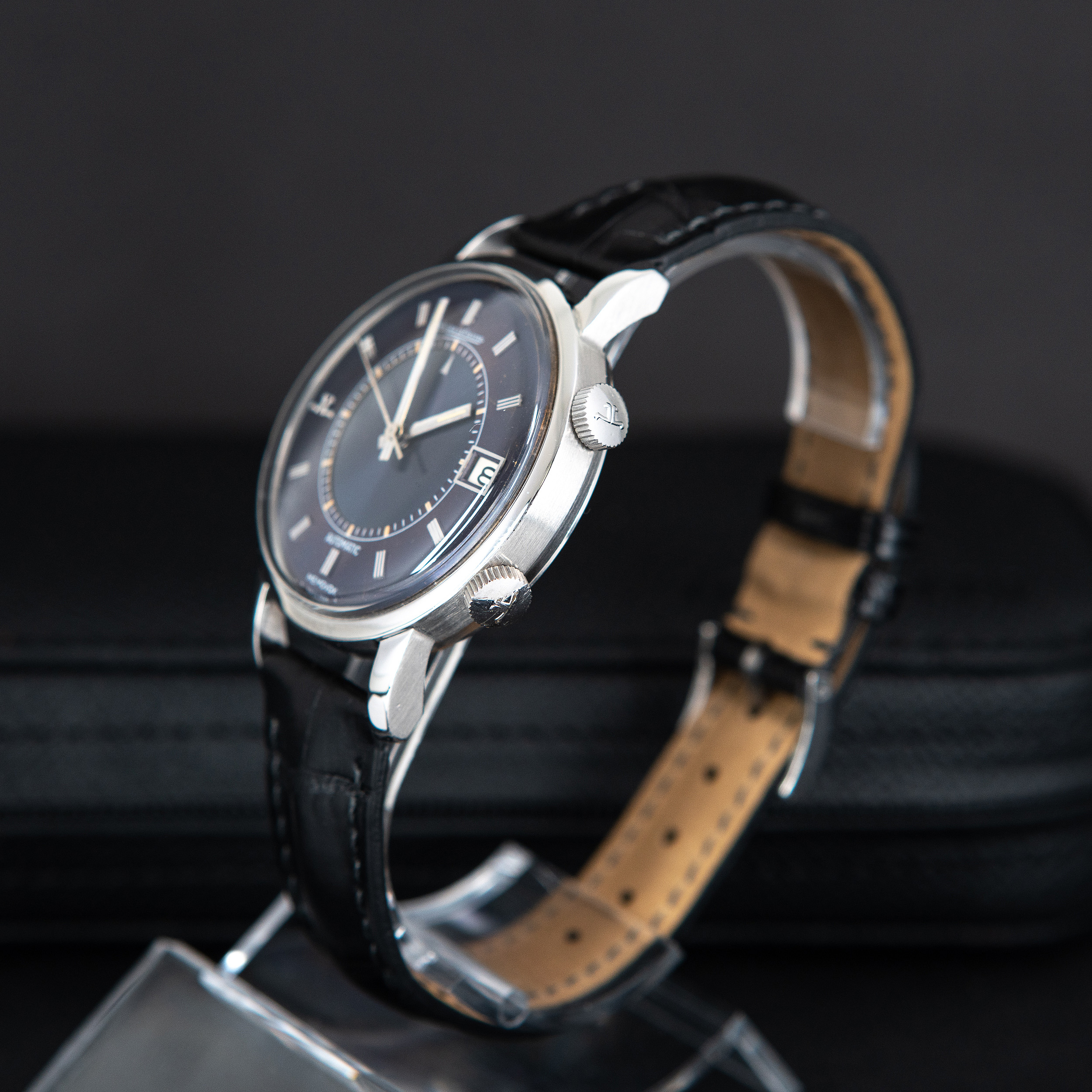 Kellossa oleva ranneke on Hirsch London Alligator mallia. Rannekkeessa on JLC Memovox mallin harvinainen ja alkuperäinen terässolki.