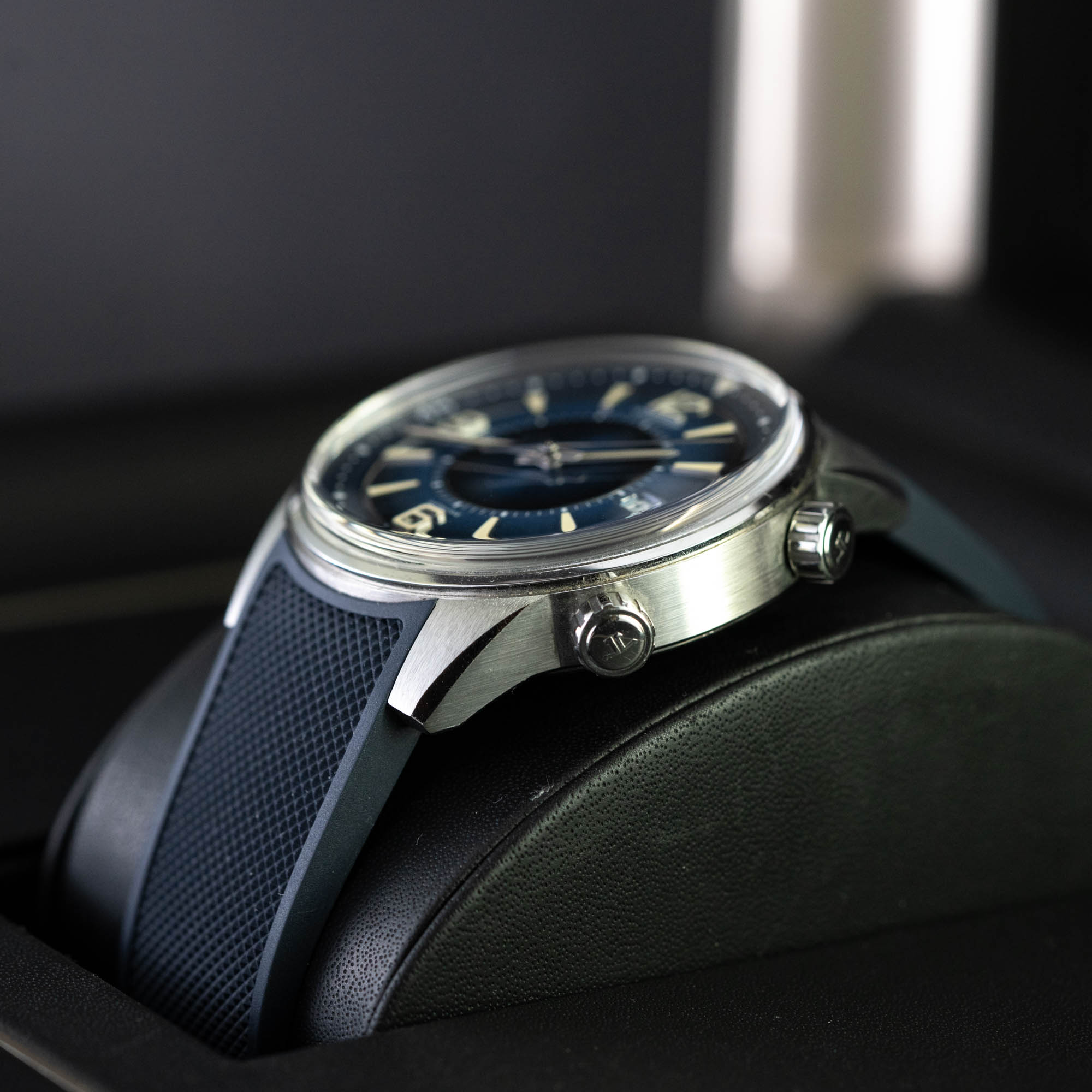 Virheetön, sininen liukuvärjätty kellotaulu ja osoittimet. Superluminova loistemassa taulussa ja osoittimissa. Normaalin aikanäytön lisäksi tässä on lasin sisäpuolinen kierrettävä muistirengas. Kellossa on Jaeger-LeCoultre Caliber 899A/1 automaattikoneisto. Ranneke on tumman sinistä kumia ja siinä on JLC:n perhoslukko. Kuoren koko on 42mm.