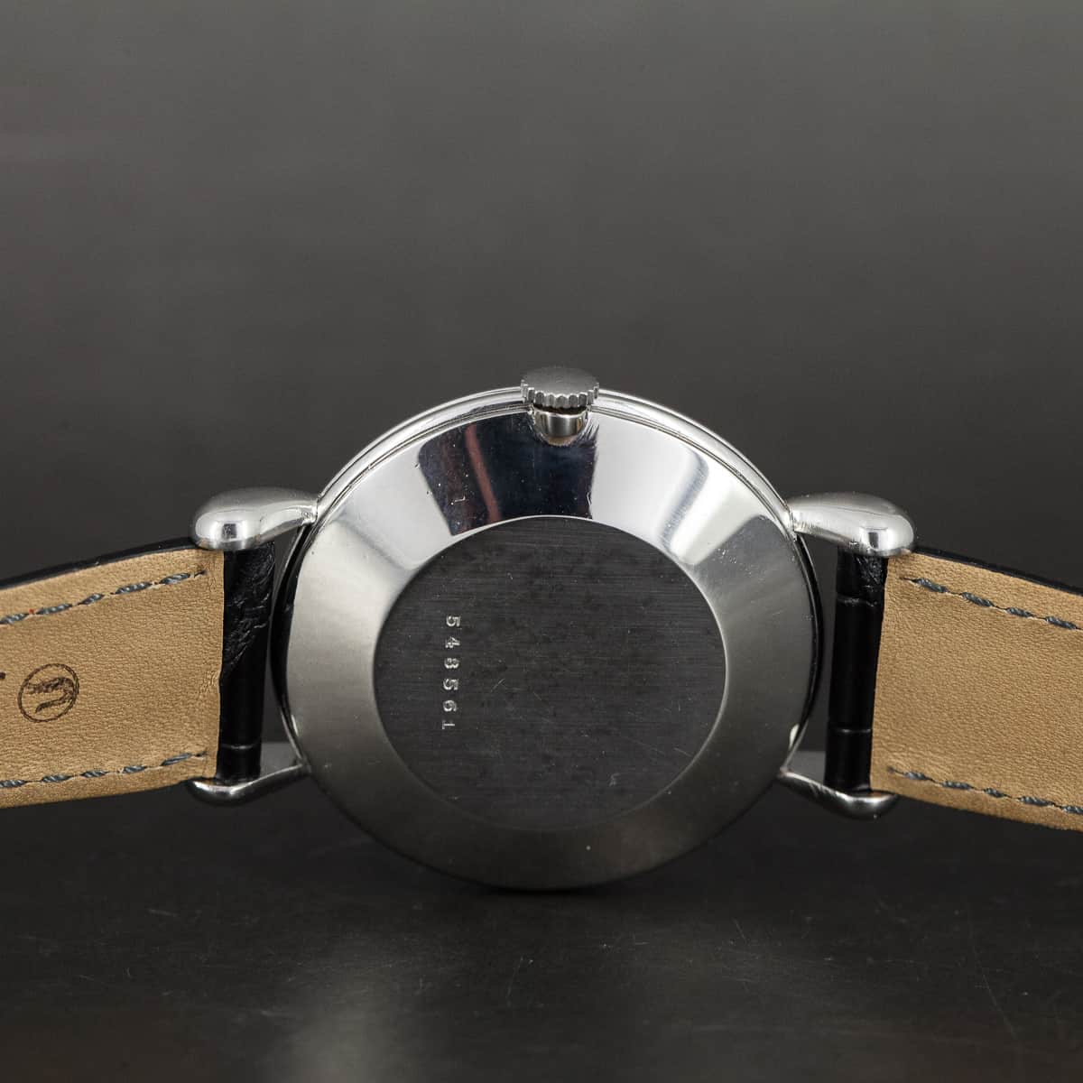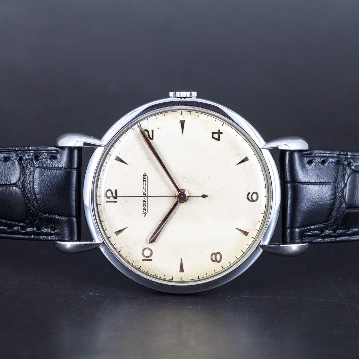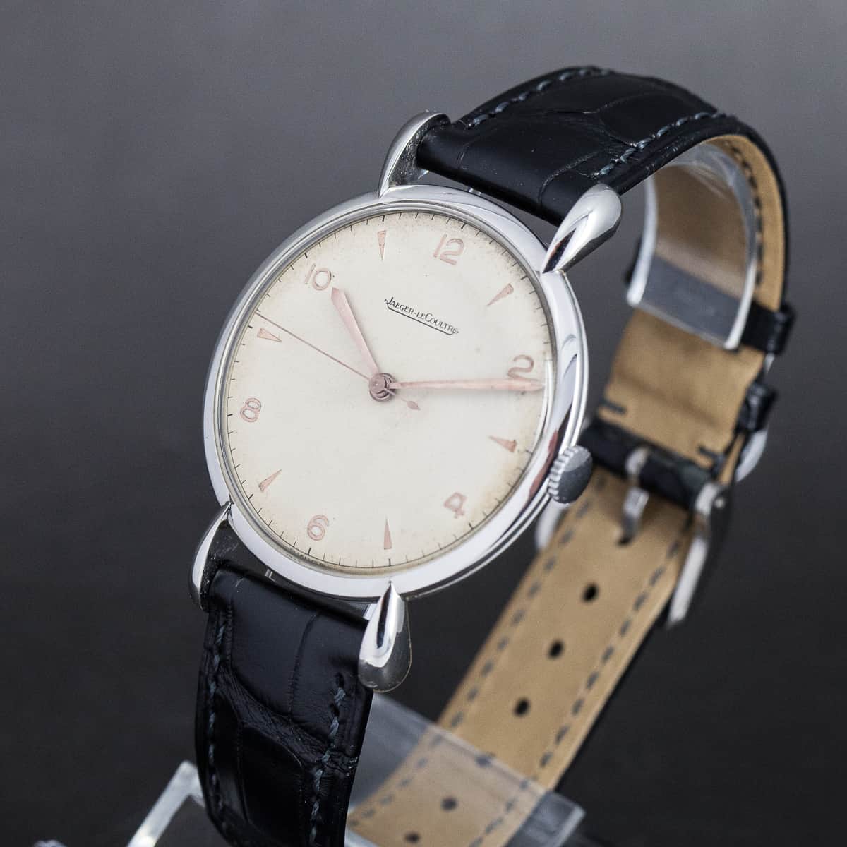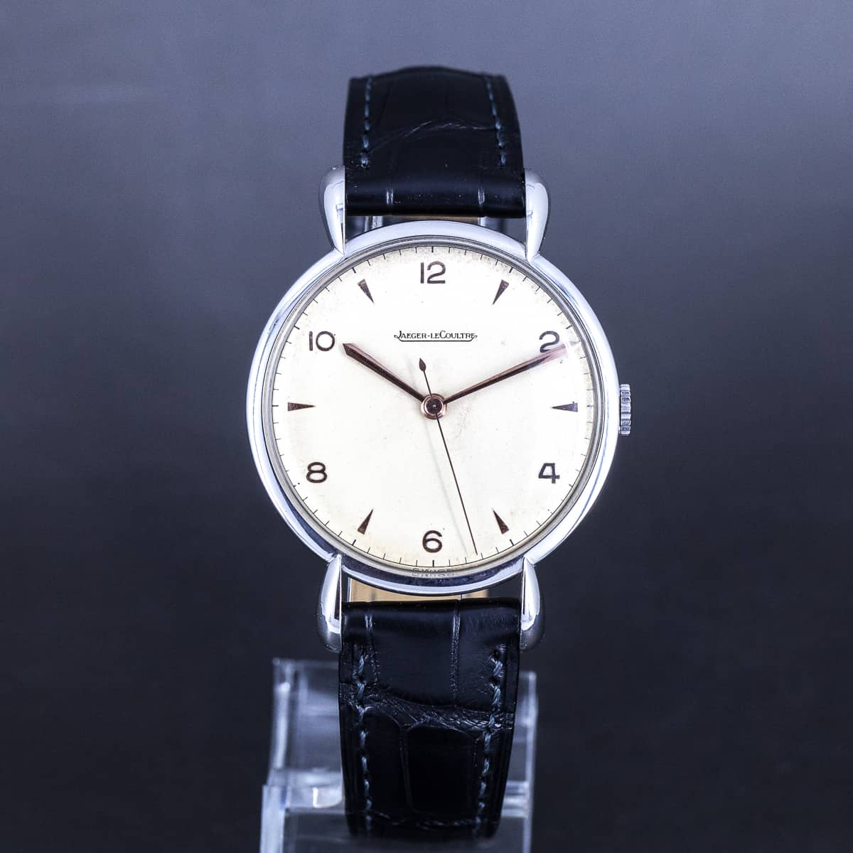 Jaeger LeCoultre pukukello vuodelta 1949. JLC cal.P478/C koneisto on täysin kunnostettu. Alkuperäinen kellotaulu ja osoittimet. Hyvin ohut 35,5mm kuori on hienossa kunnossa. Hirsch London Alligator ranneke. Myös muita rannekevaihtoehtoja.