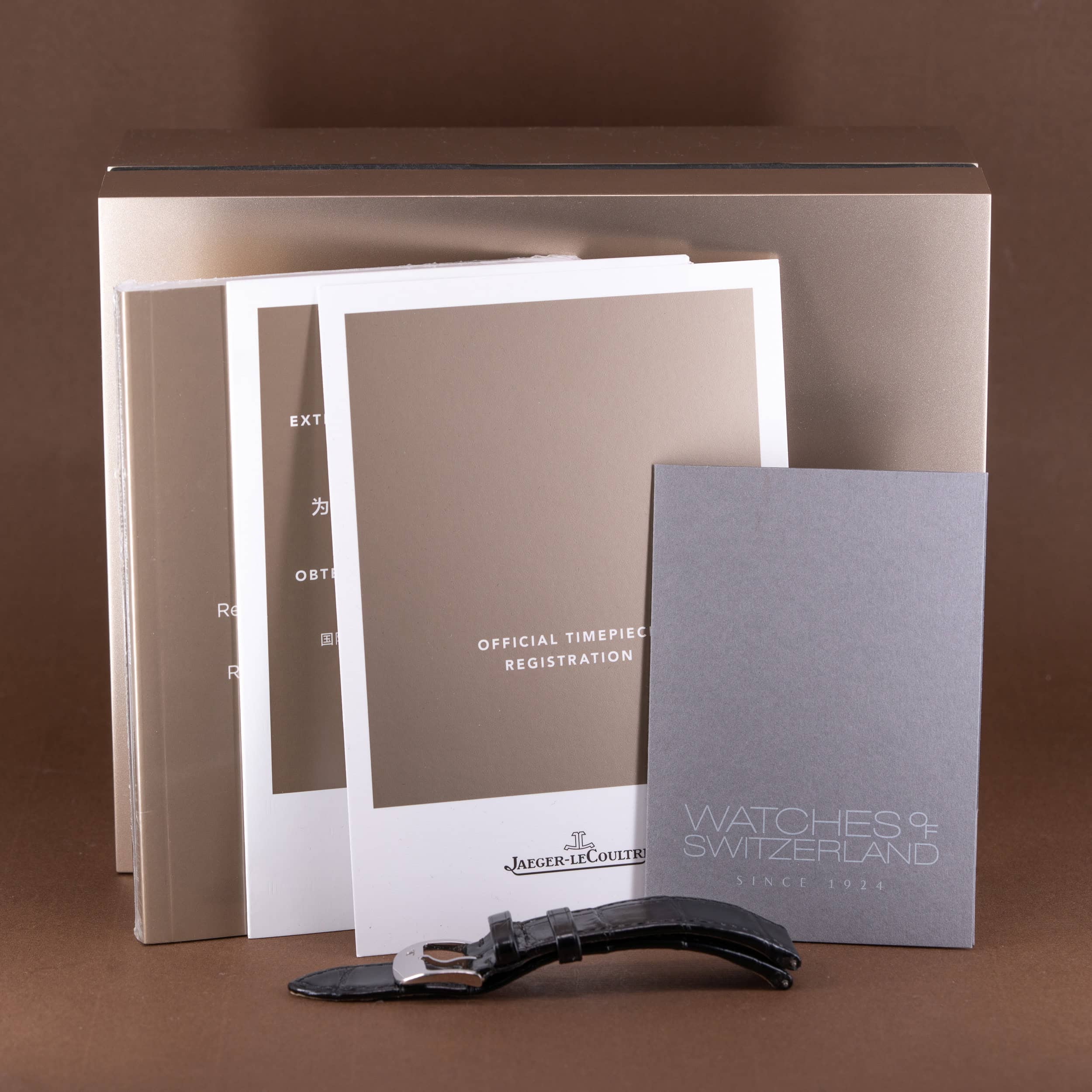 Kellossa on uusi musta London Alligator -nahkaranneke. Mukana tulee myös musta JLC:n alkuperäinen alligaattori nahkaranneke (m-koko) alkuperäisellä JLC:n teräs soljella.