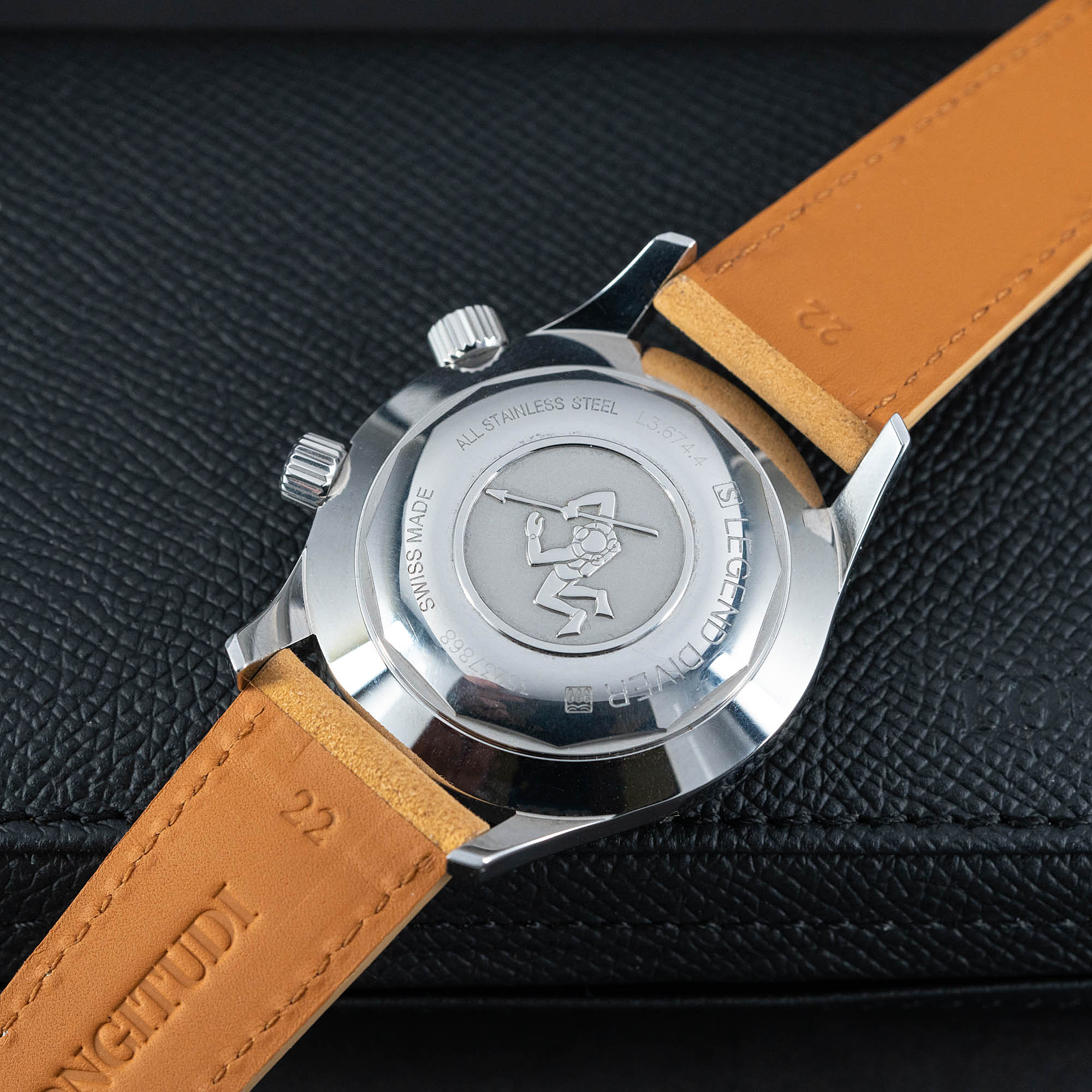 Kello toimitetaan kahdella nahkaranteella. Toinen on käyttämätön alkuperäinen Legend Diver-ranneke jossa on Longineksen terässolki. Vaalea mokkanahkainen malli on Longitudin mallistosta.