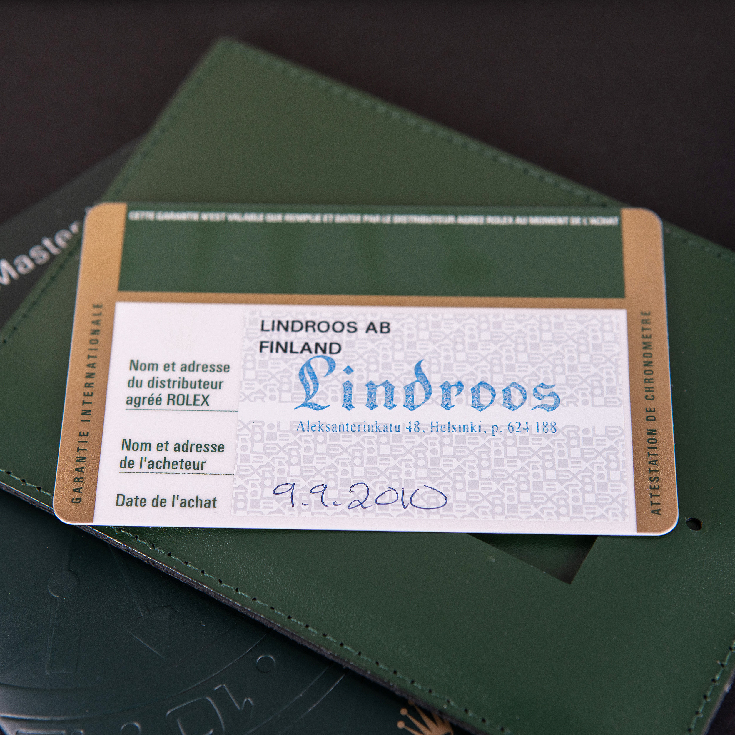 NOS Rolex Oyster Perpetual GMT-Master II ref. 116710 vuodelta 2010. NIB, käyttämätön ja osoittain yhä muoveissa. Full-set, kaikki laatikot ja paperit. Hankittu Lindroosilta 9.2010. Virheetön yksilö kaikin puolin. Kuoren koko 40mm.