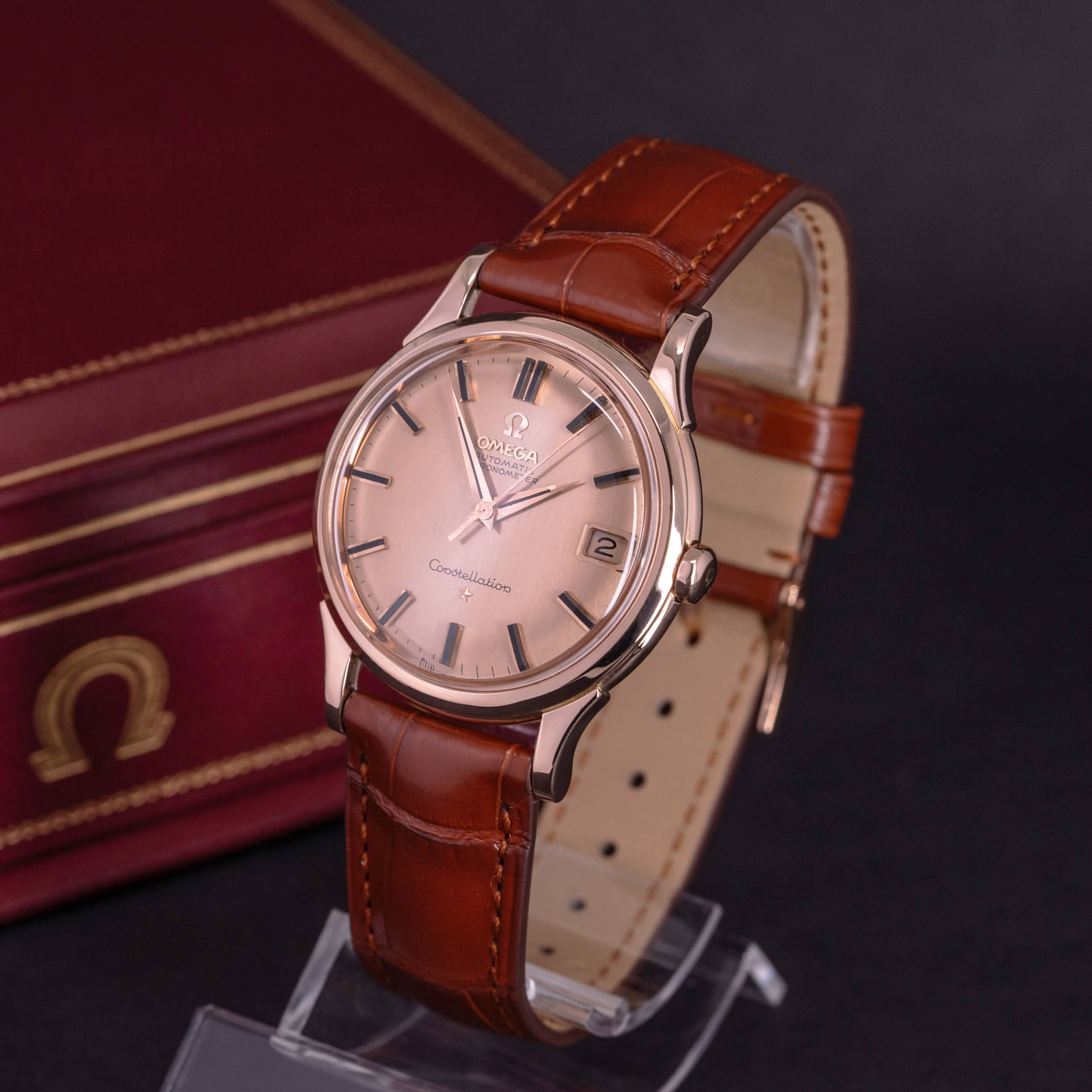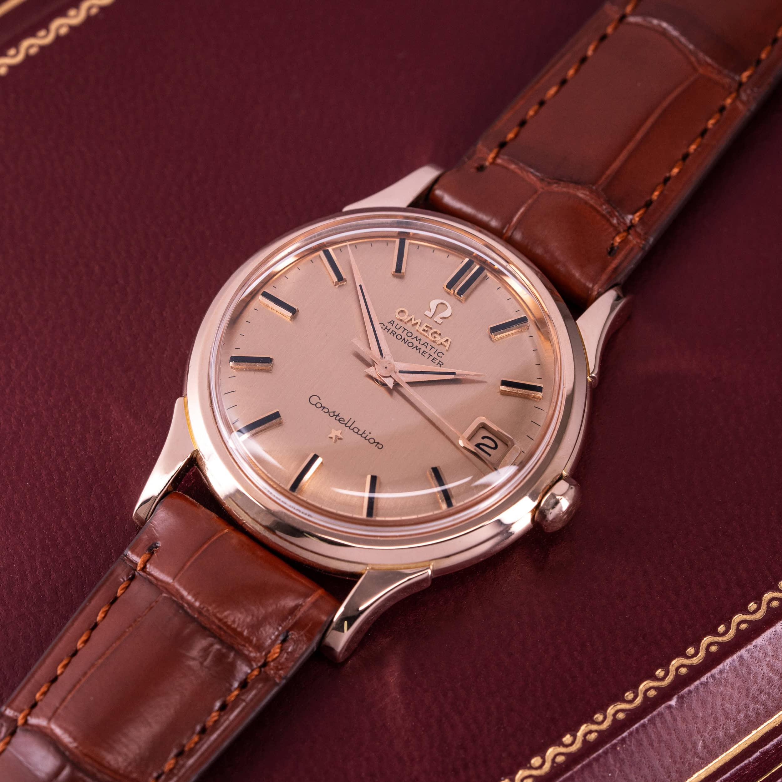 Hyvin harvinainen 18k Omega Constellation Automatic Chronometer De Luxe, Pink-on-Pink, vuodelta 1961. Ref. 14394.
