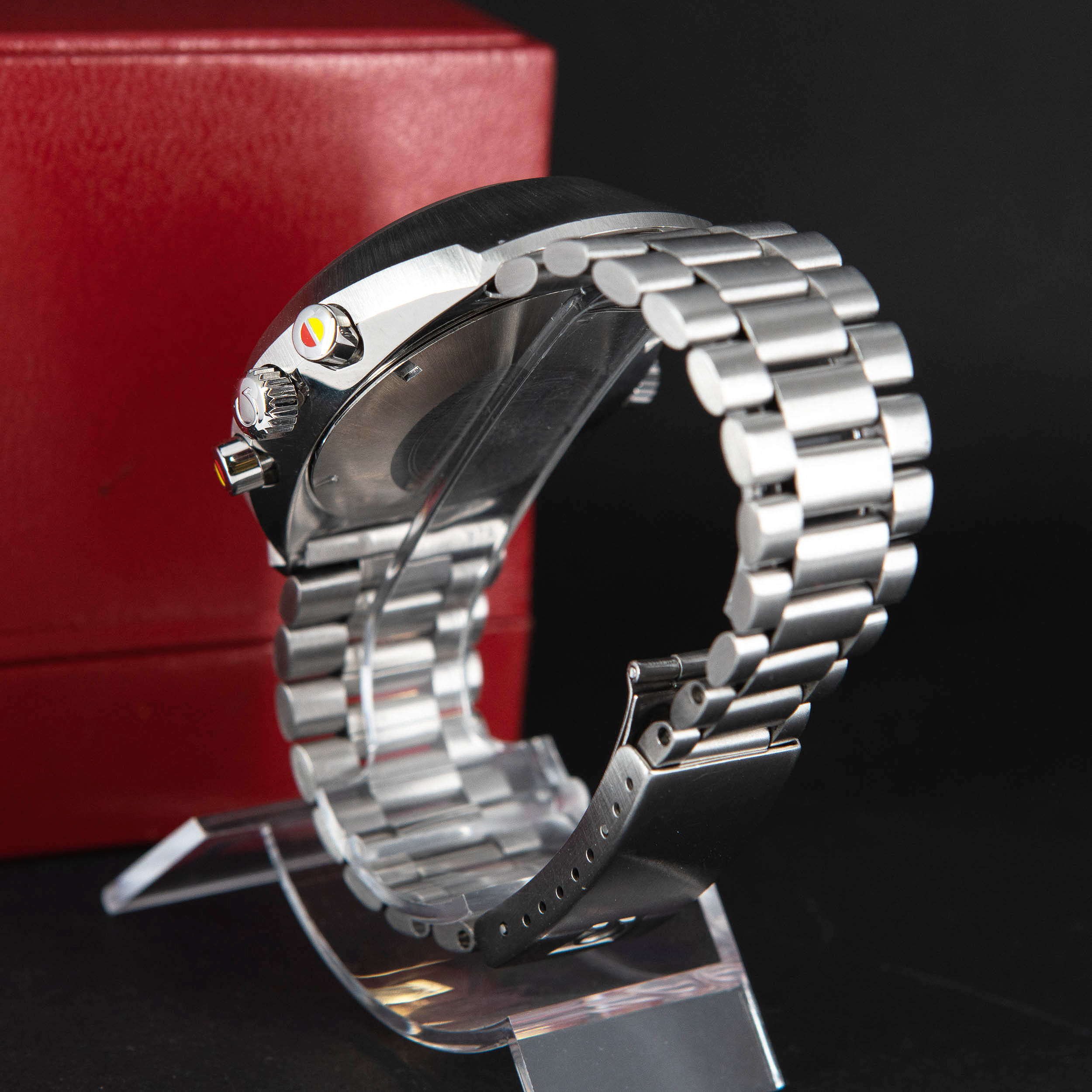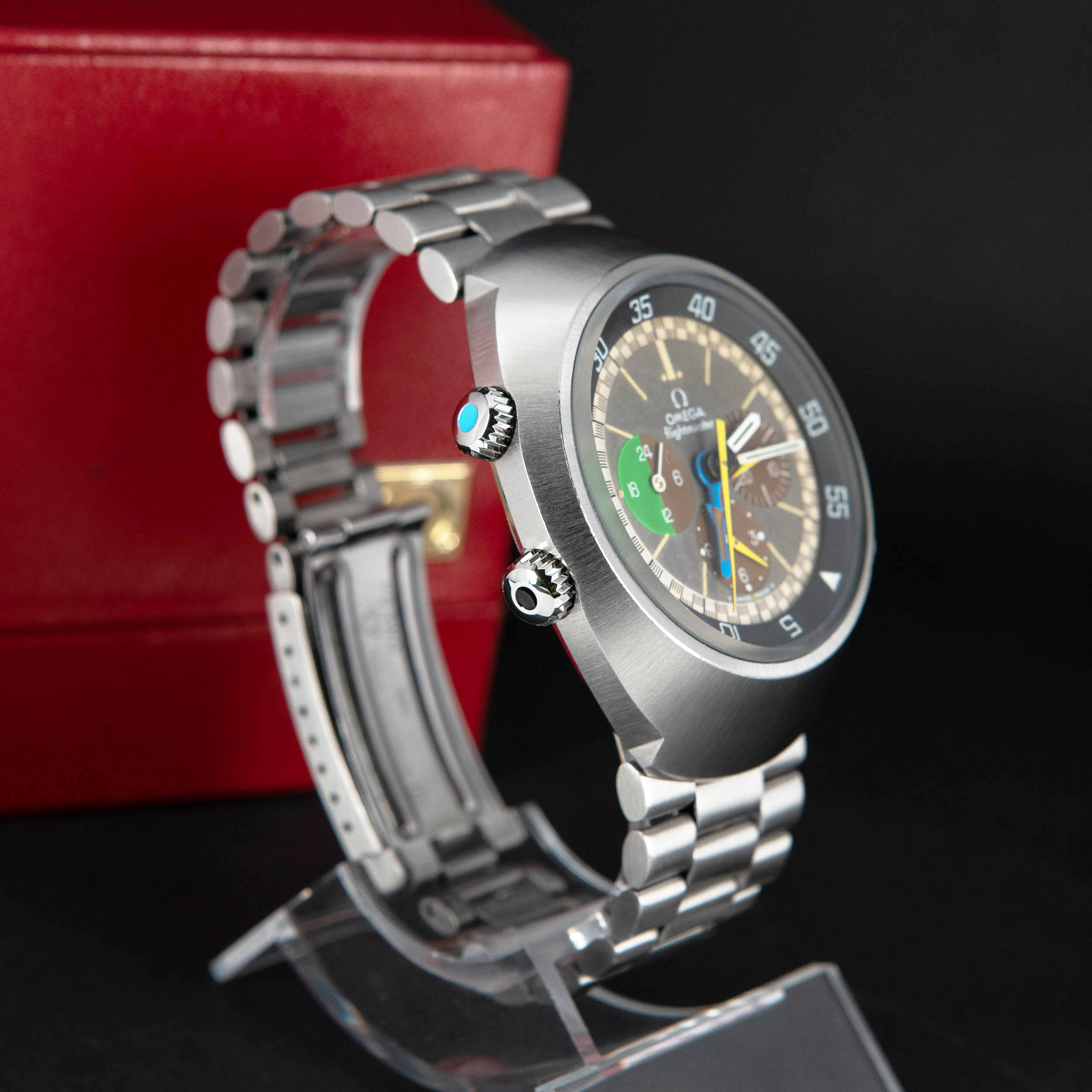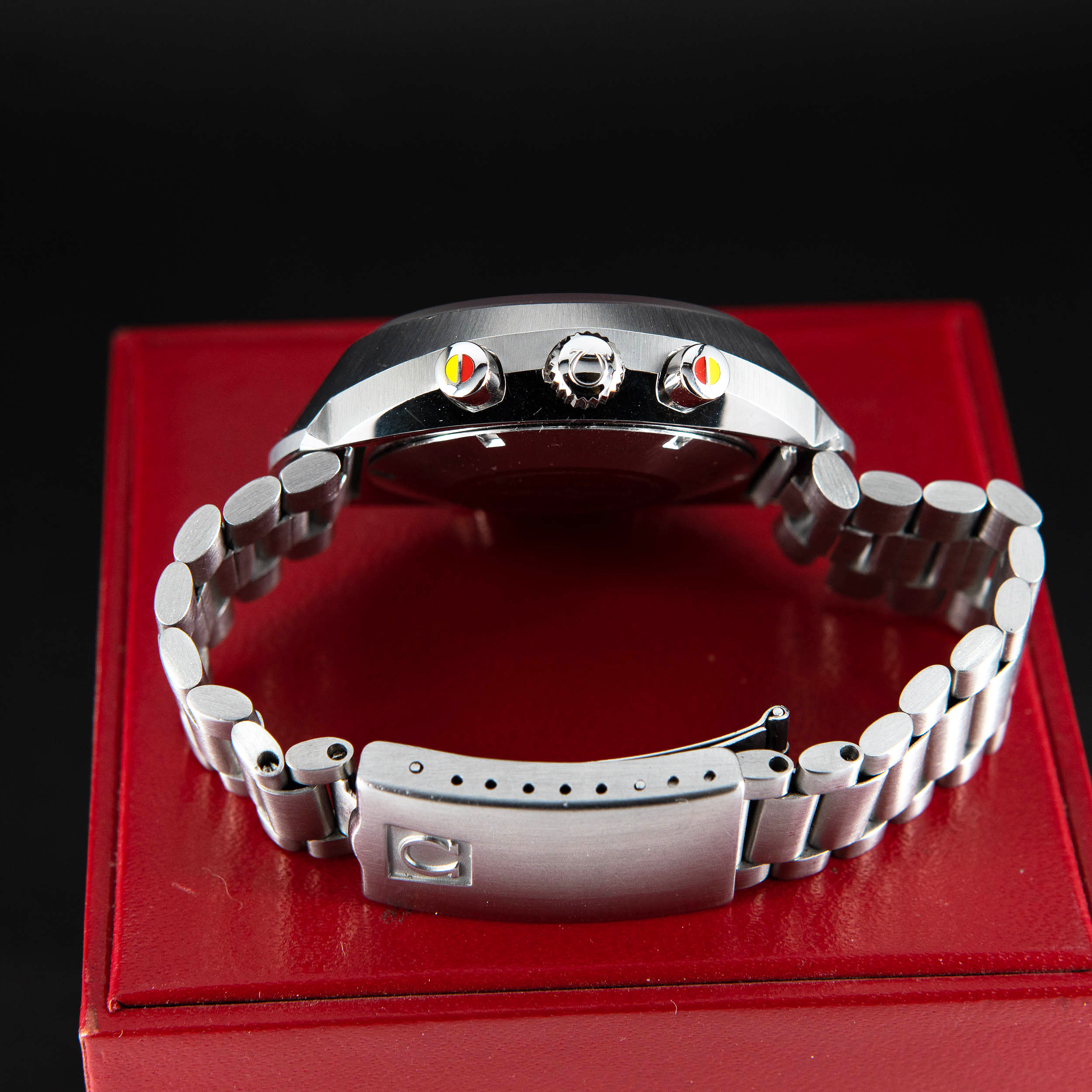 Kellossa on Omegan cal.910 manuaalivetoinen kronografikoneisto, jota käytettiin vain tässä mallissa. Koneisto on täysin kunnostettu. Ranneke on Omegan alkuperäinen 1162/172 (No.11) teräsranneke.