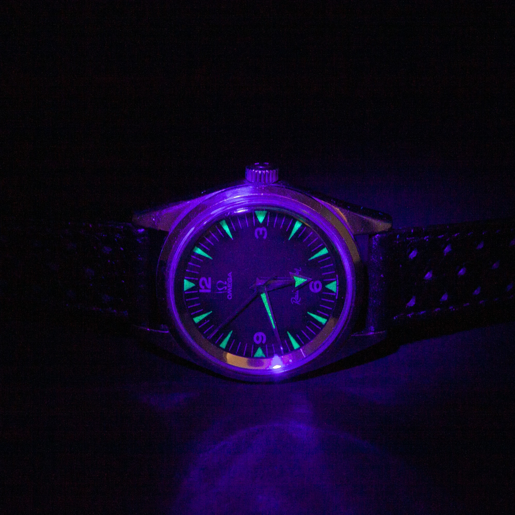 Hyvin harvinainen Omega Railmaster ref. 2914-3 antimagneettinen rannekello vuodelta 1958. Alkuperäinen kauniisti ikääntynyt “mu-metal” radium-kellotaulu ja Broad Arrow teräs-osoittimet. Alkuperäinen Omegan nuppi vanhalla logolla. Hyväkuntoinen ja testattu Omegan cal. 284 manuaalivetoinen koneisto. Kuoren koko on 38mm. Ranneke on italialainen käsin ommeltu malli. Omega museon extract from archives todistus on tilattu.