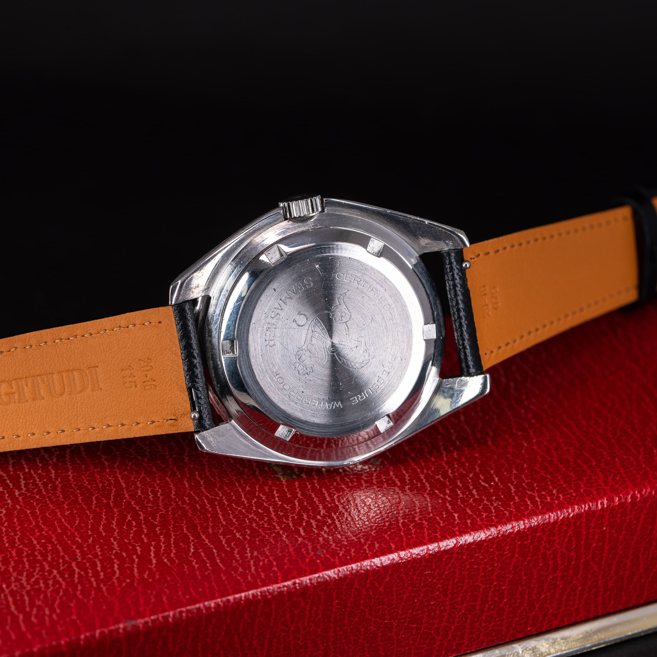 Kellon mukana tulee harvinainen Omegan punainen kellolaatikko. Ei alkuperäisiä papereita.