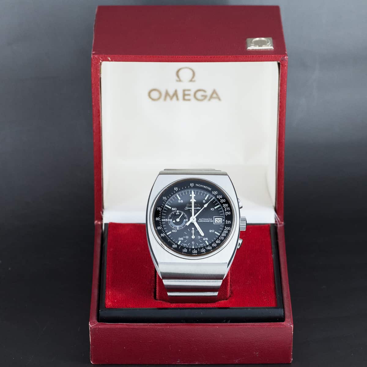 1973. Ref. ST378.0801. Cal. 1041. Koko 51 × 42mm. Alkuperäinen Omegan metalliranneke. Juuri täysin kunnostettu yksilö. Kellon mukana tulee myös alkuperäinen Omegan kellolaatikko.