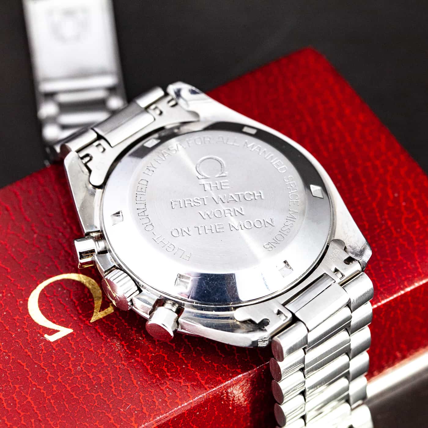 Tässä kellossa on hyvin harvinainen 1969 kuuhun laskeutumisen jälkeen käytetty takapohja, jossa oli ensimmäisen kerran teksti ”first watch worn in the moon, flight qualified by NASA for all manned space missions”. Nämä ensimmäiset takapohjan tekstit poikkeavat myöhemmistä siinä, että ”first watch worn in the moon” teksti on keskellä ja suoraan rivitettynä mistä tulee myös mallin kutsumanimi ”straight writing” tai italiaksi ”Scritti dritti”.