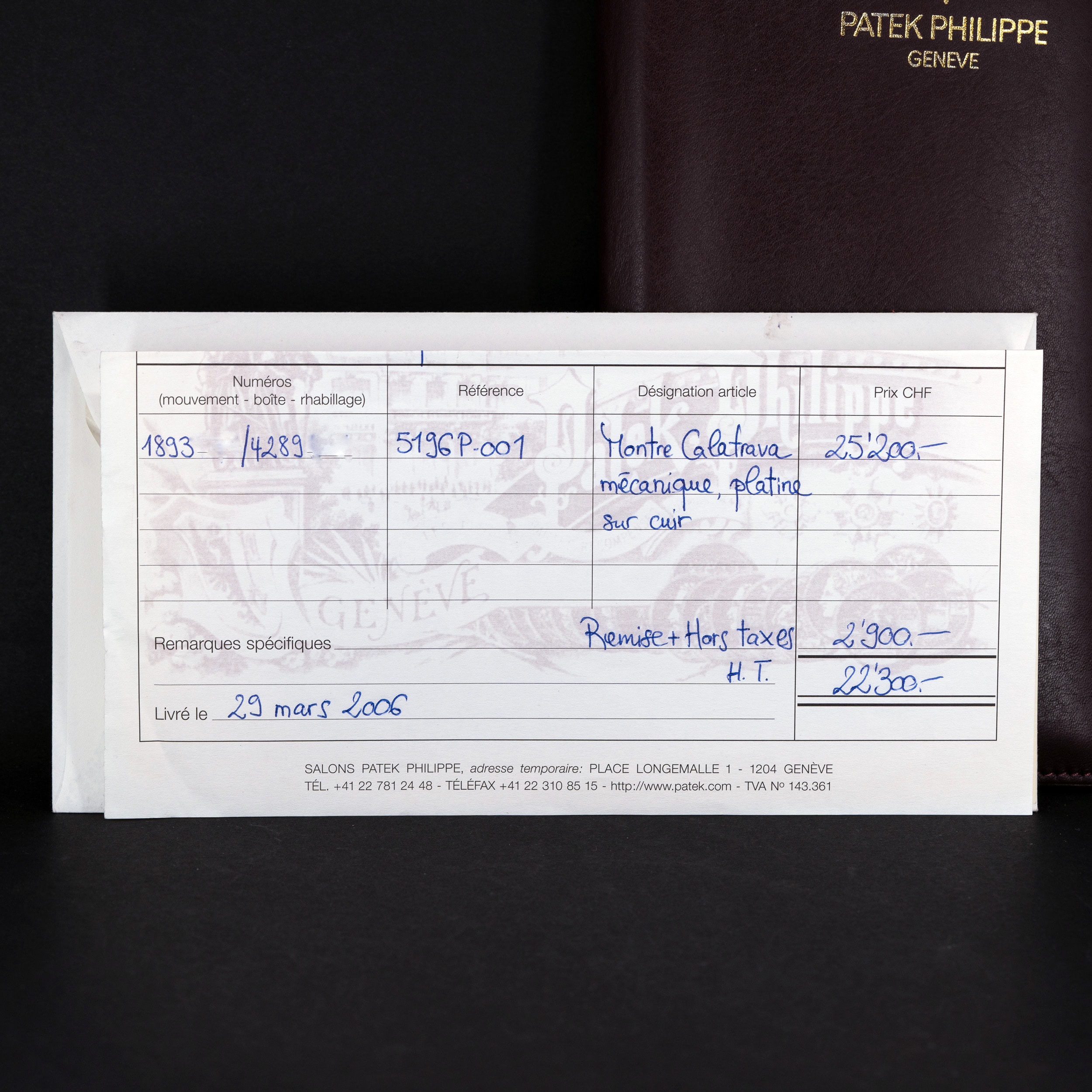 Harvinainen platinakuorinen Patek Philippe Calatrava 5196P vuodelta 2006. Full-set