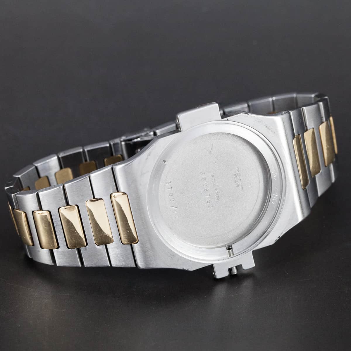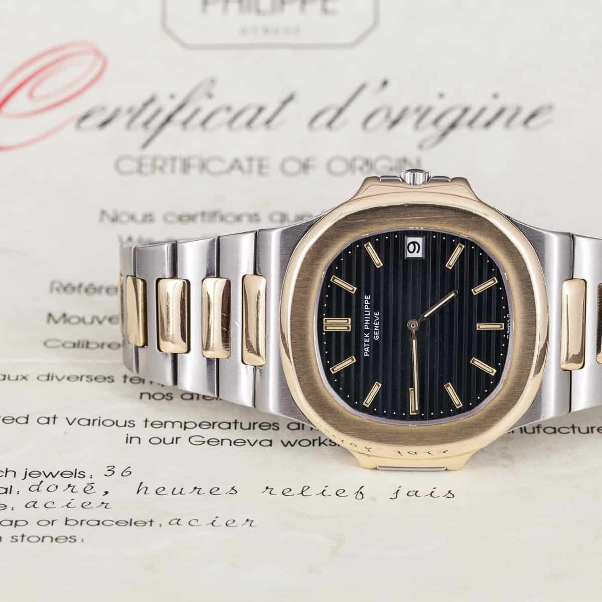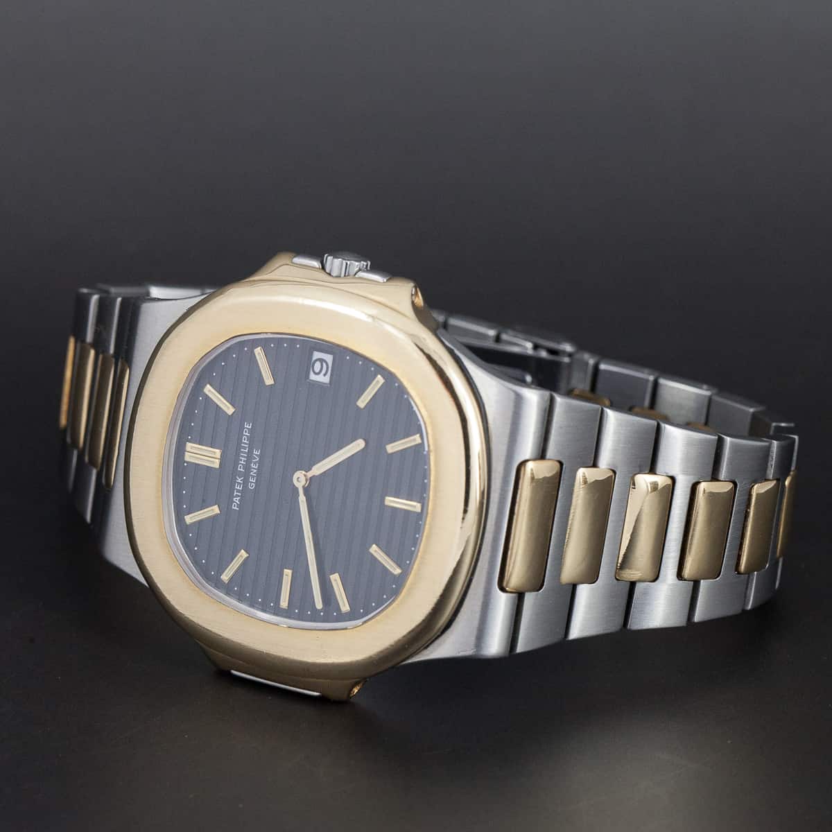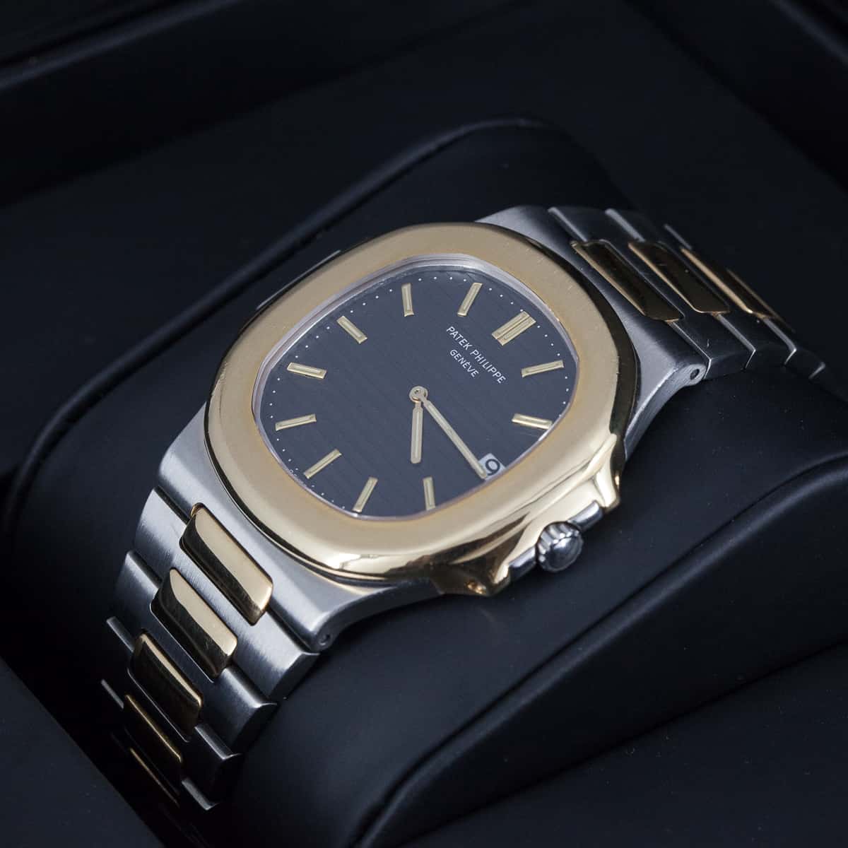 Hyvin harvinainen Patek Philippe Nautilus “Jumbo” ref. 3700-11AJ vuodelta 1985. Teräs-kulta malli kapenevalla rannekkeella (AJ). Mukana on alkuperäiset paperit ja kellolaatikko (ei alkuperäinen). Patek Philippe cal. 28.255C automaattikoneisto on testattu ja hyvässä kunnossa. Kello on vesitiivis. Kuoren koko on Jumbo mallissa 42mm x 38mm.