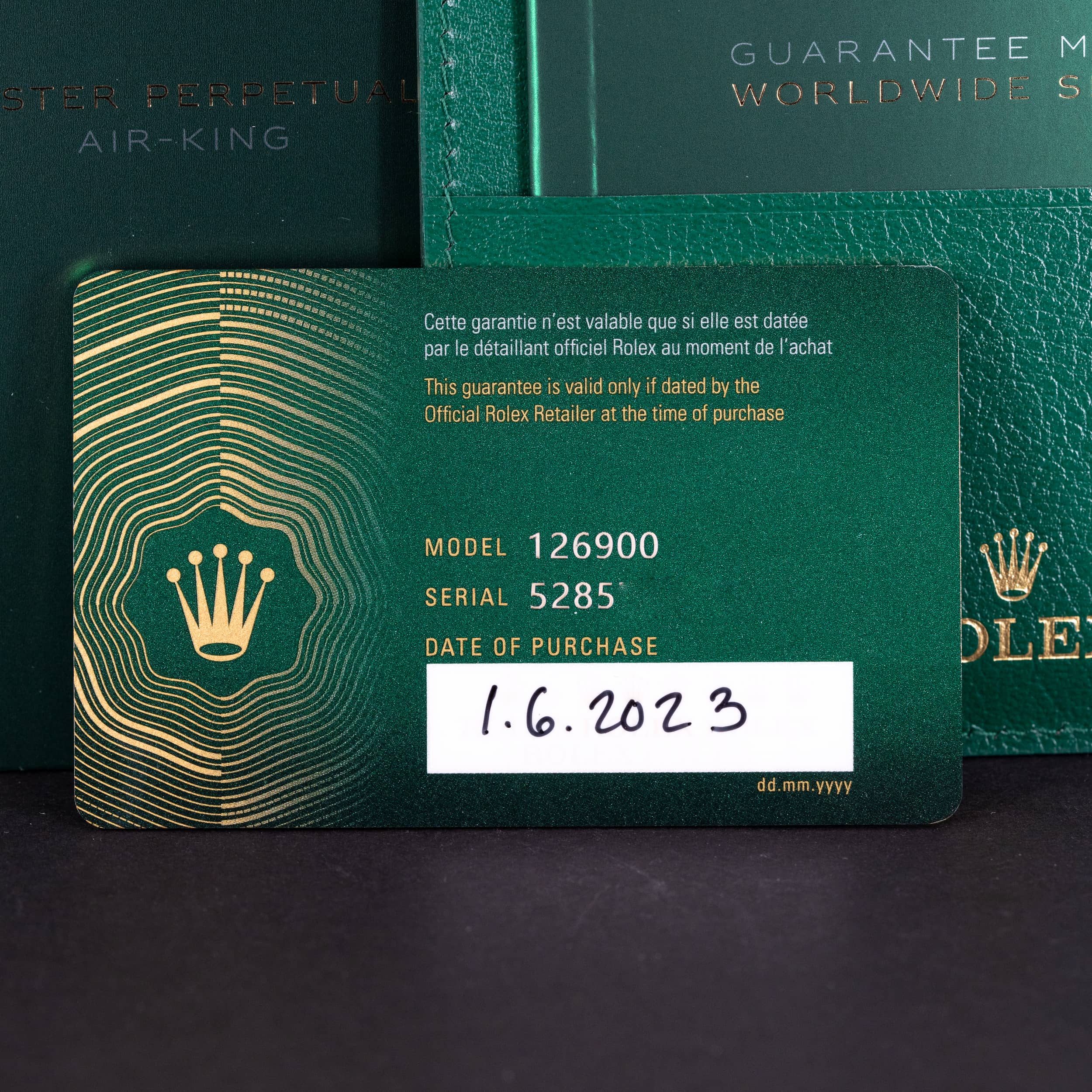 Rolex Oyster Perpetual Air-King vuodelta 2023. Full-set, suomikello. Kello on käyttämätön.