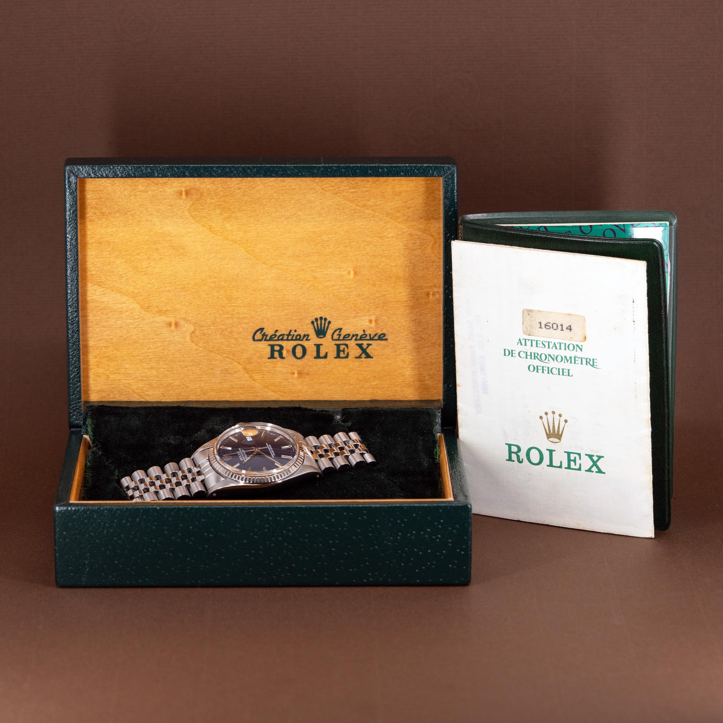 Rolex Oyster Perpetual Datejust 16014 vuodelta 1987. Semi-full-set, mukana laatikko ja paperit.
