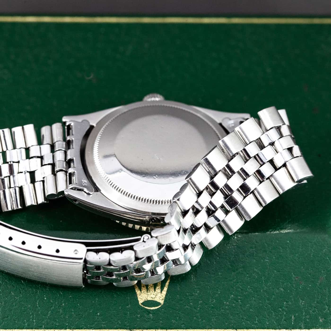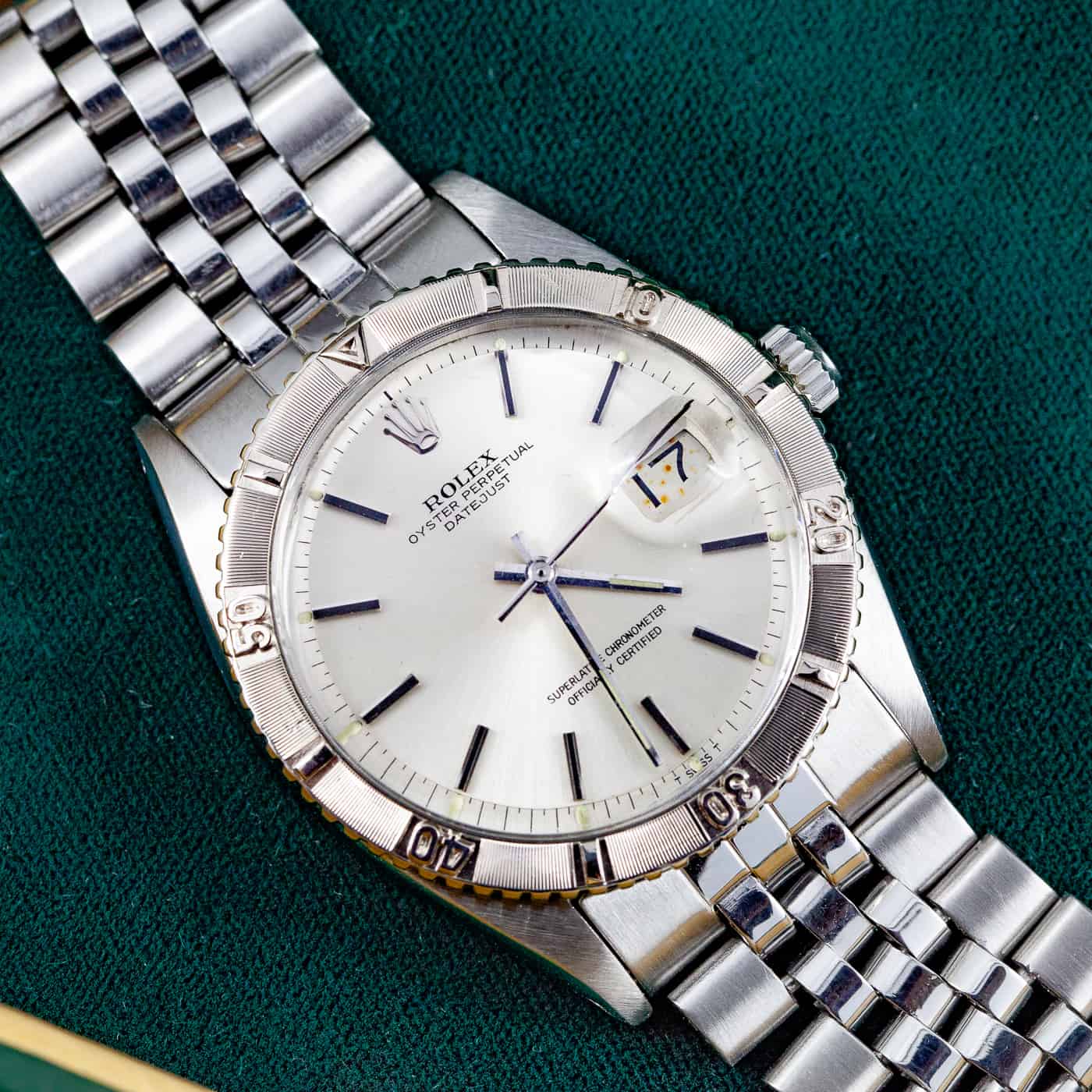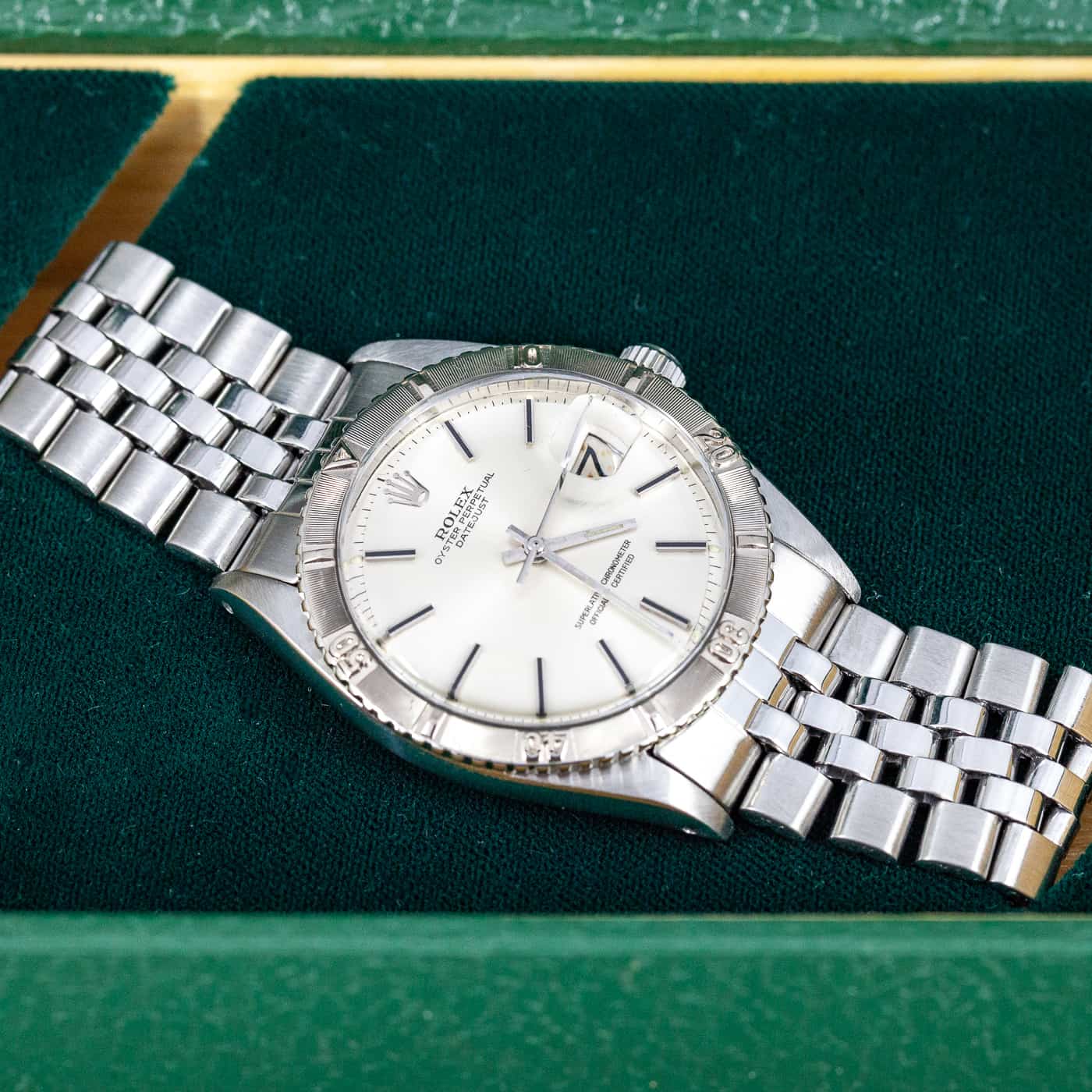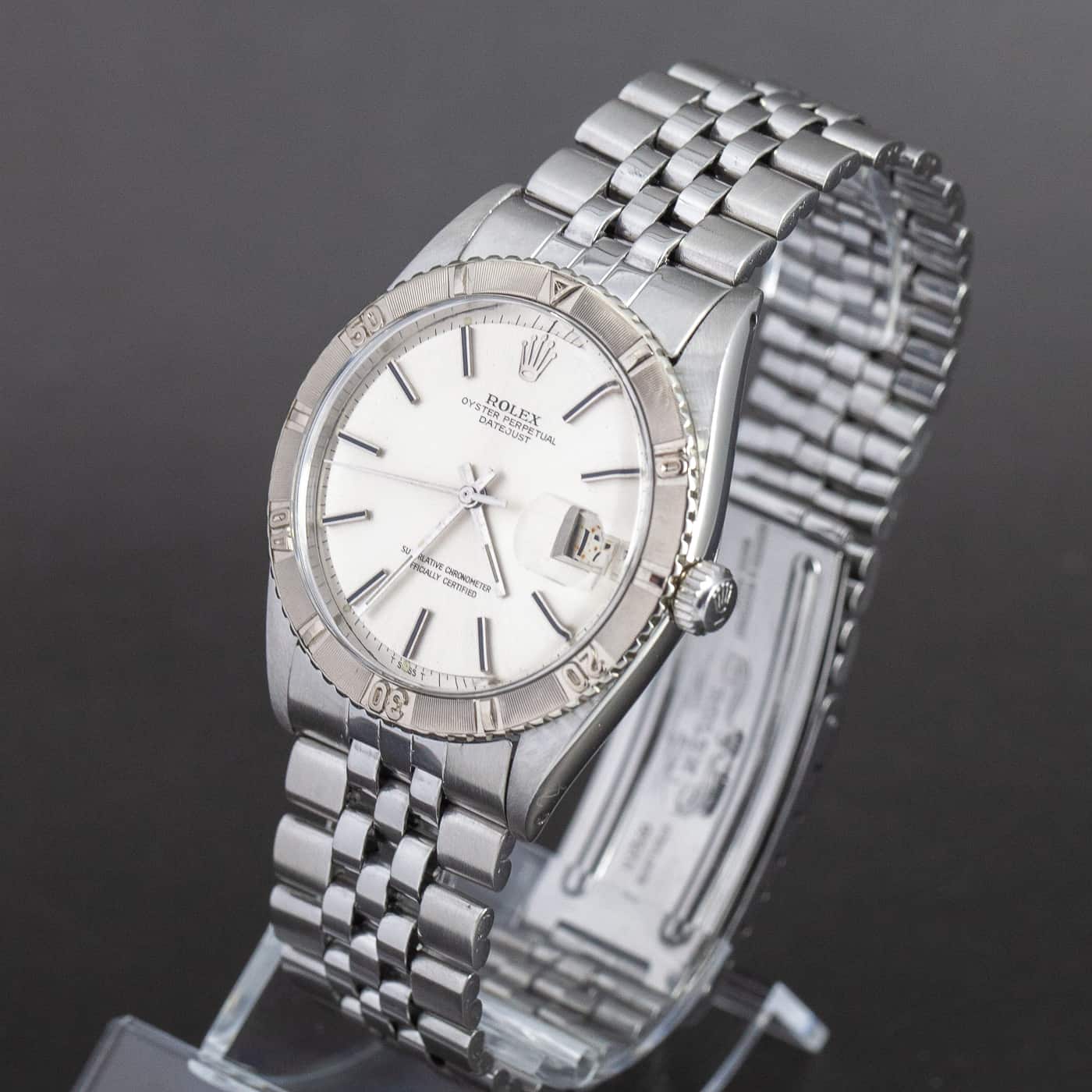 Rolex Datejust ”Turn-O-Graph” ref.1625 vuodelta 1965. Alkuperäinen kellotaulu ja osoittimet. Valkokultainen Turn-O-Graph bezel. Teräskuori on hienossa kunnossa. Alkuperäinen folded Jubilee teräsranneke. Alkuperäinen laatikko ja paperit.