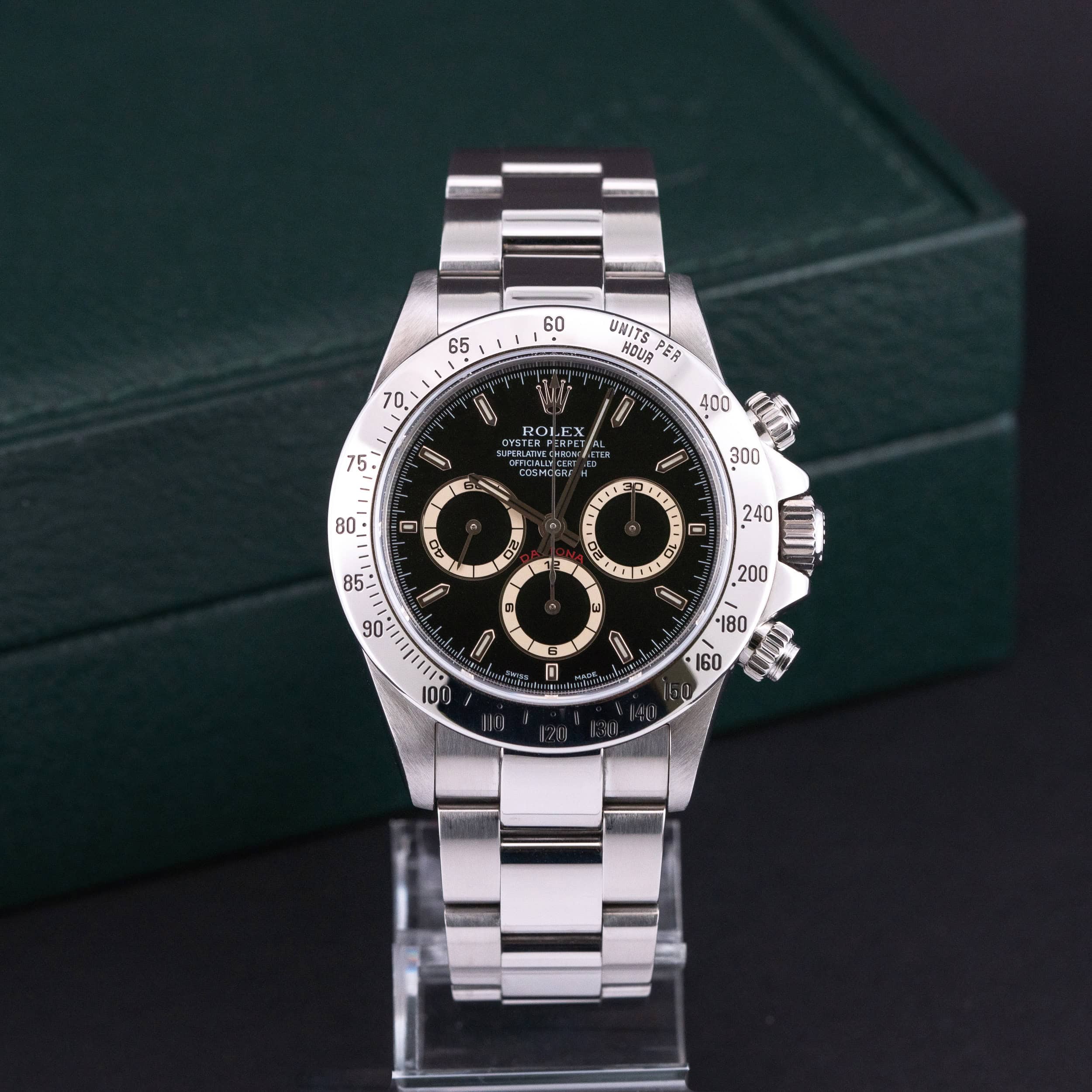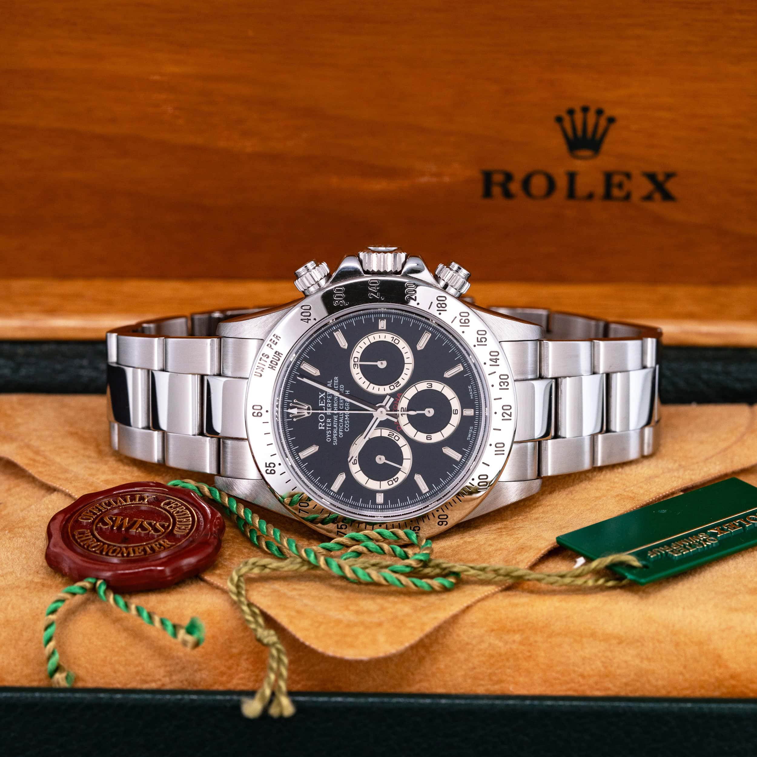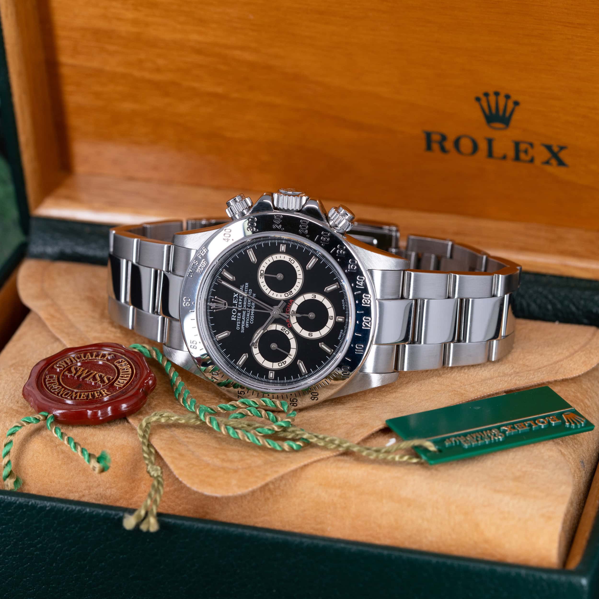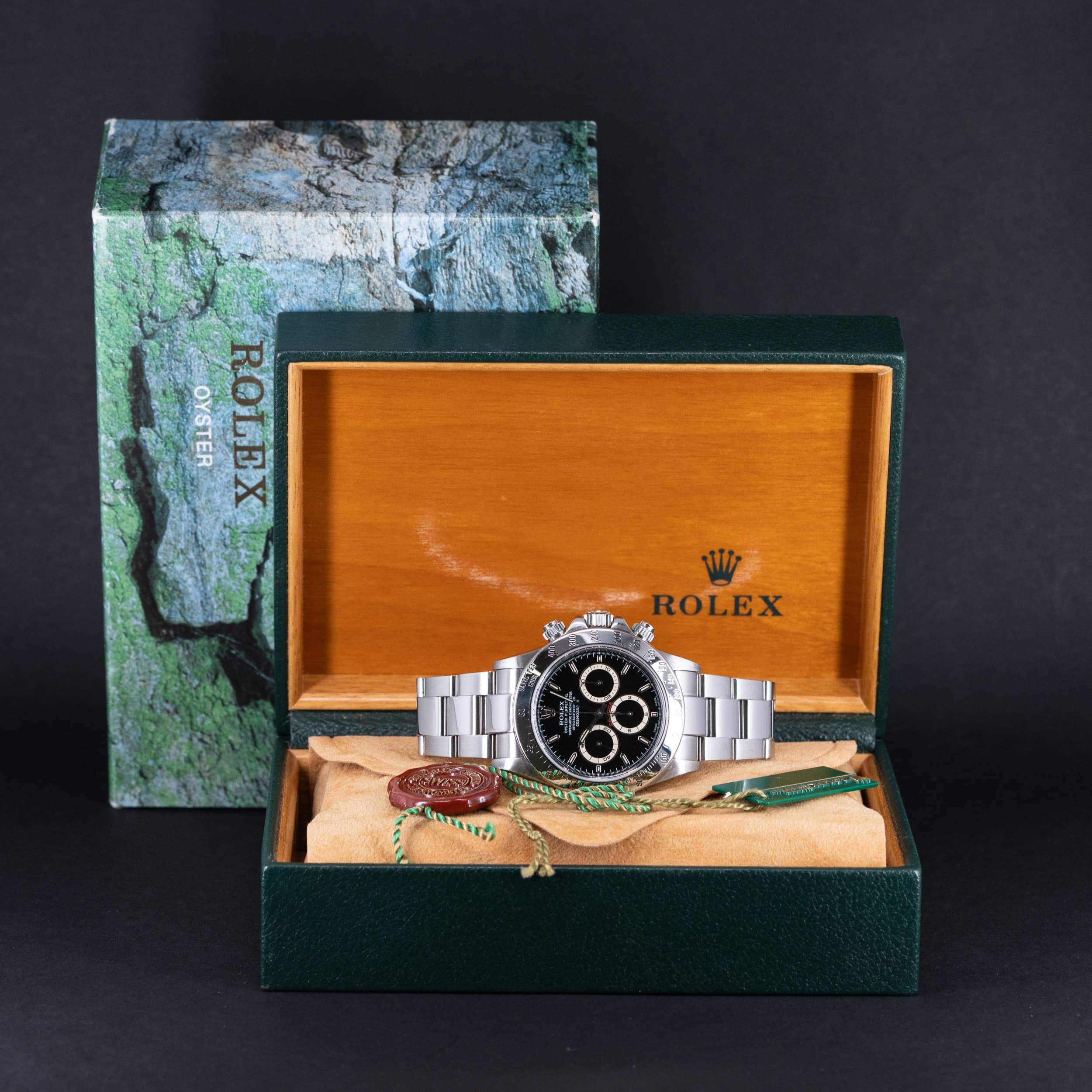 Harvinainen Rolex Oyster Perpetual Cosmograph Daytona 16520 vuodelta 1999/2000. A-sarjaa, full-set.