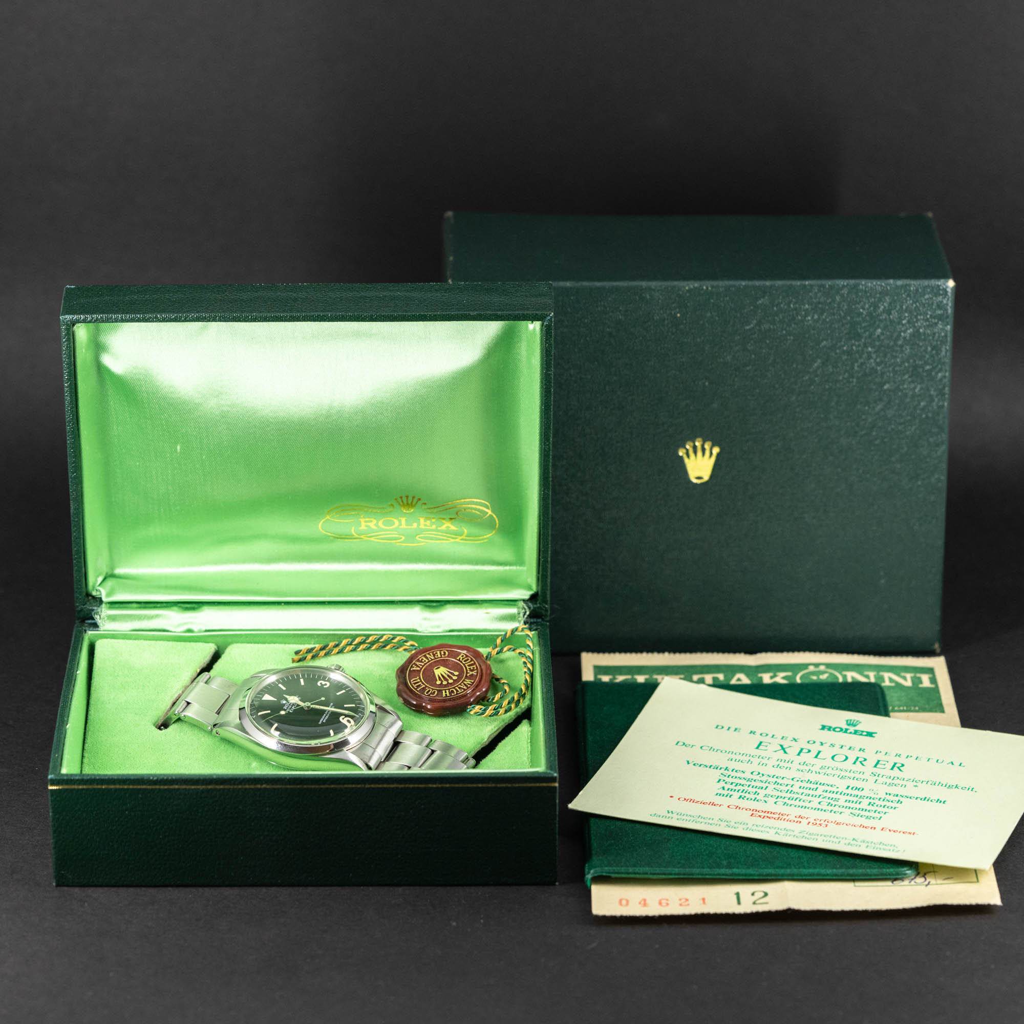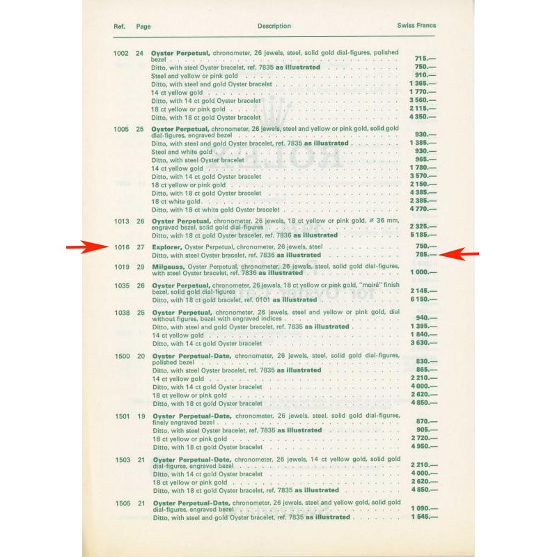Tämä kello tuli meille sen ensimmäiseltä omistajalta. Hän oli ostanut sen uutena Valkeakoskella Kultakönnin liikkeestä. Erikoista on, että kello, joka oli valmistettu jo 1968, on saatu myytyä vasta 1975. Onko kello ollut liian arvokas ja vuoden 1973 öljykriisin mainigeissa jäänyt myyymättä useaksi vuodeksi? Kellon aiempi omistaja kertoi kuitenkin ostaneensa sen silloin hintaan 675mk. Virallinen vuosien 1974-75 Rolex Explorerin hinta teräsranteella oli 785 Sfr (tämä oli n. 1100mk), joten kello on myyty hyvällä alennuksella. Valitettavasti kellon kronometritodistus ja käyttöohjeet olivat kadonnet aikojen saatossa.