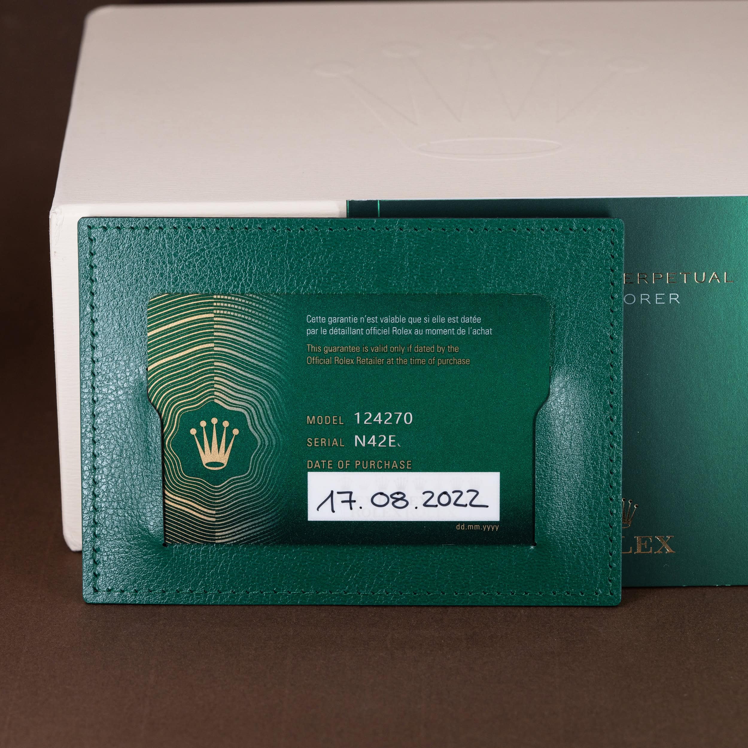 Kellolla on Rolexin kansainvälinen takuu voimassa vuoteen 2027 asti.