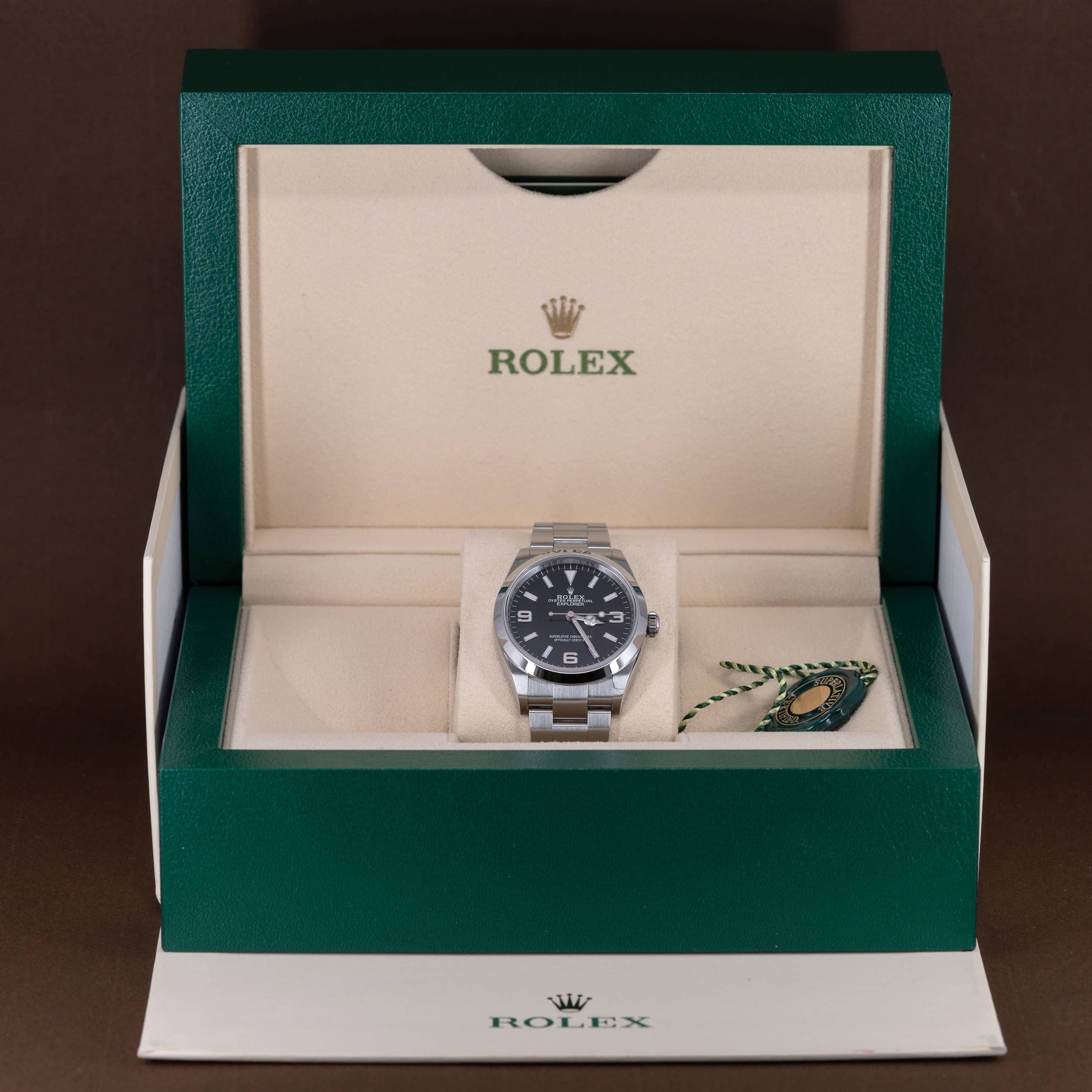 Uudenveroinen Rolex Oyster Perpetual Explorer 36 vuodelta 2022. Full-set ja suomikello.