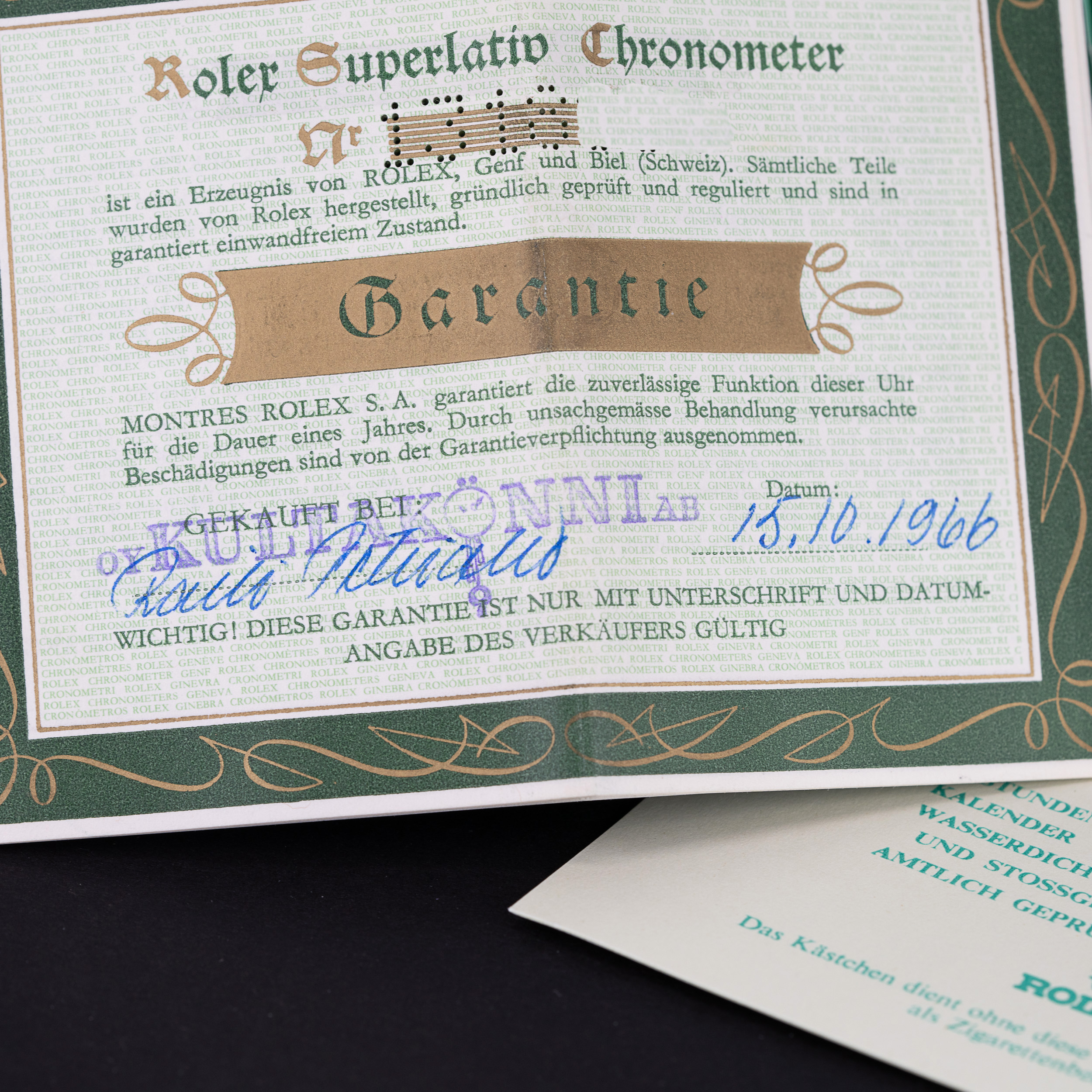 On aina hyvin harvinaista, että 56 vuotias Rolex GMT-Master on säilynyt hyväkuntoisena ja alkuperäisillä papereilla.  Vielä harvinaisempaa on, että tämä tapahtuu Suomessa, jossa ei yleensä ole ollut tapana säilyttää kellojen papereita. Tämän kellon kohdalla kuitenkin kävi toisin ja kellon kaikki alkuperäinen dokumentaatio on säilynyt.