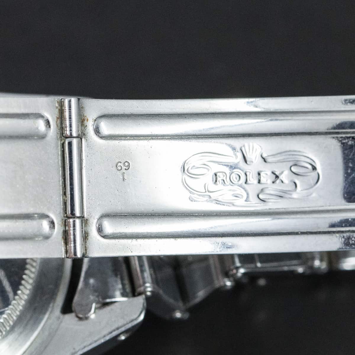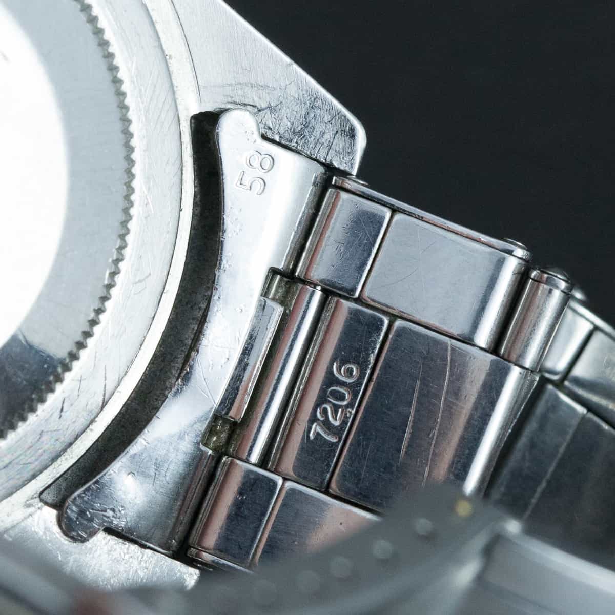 Rolex ref.7206 riveted Oyster teräsranneke 58 päätypaloilla. Leimattu 1/69. Kuoren koko on 40mm. Erittäin hieno ja harvinainen kokonaisuus. Kellon mukana tulee hieno aikaan sopiva Rolexin sisä ja ulkolaatikko.