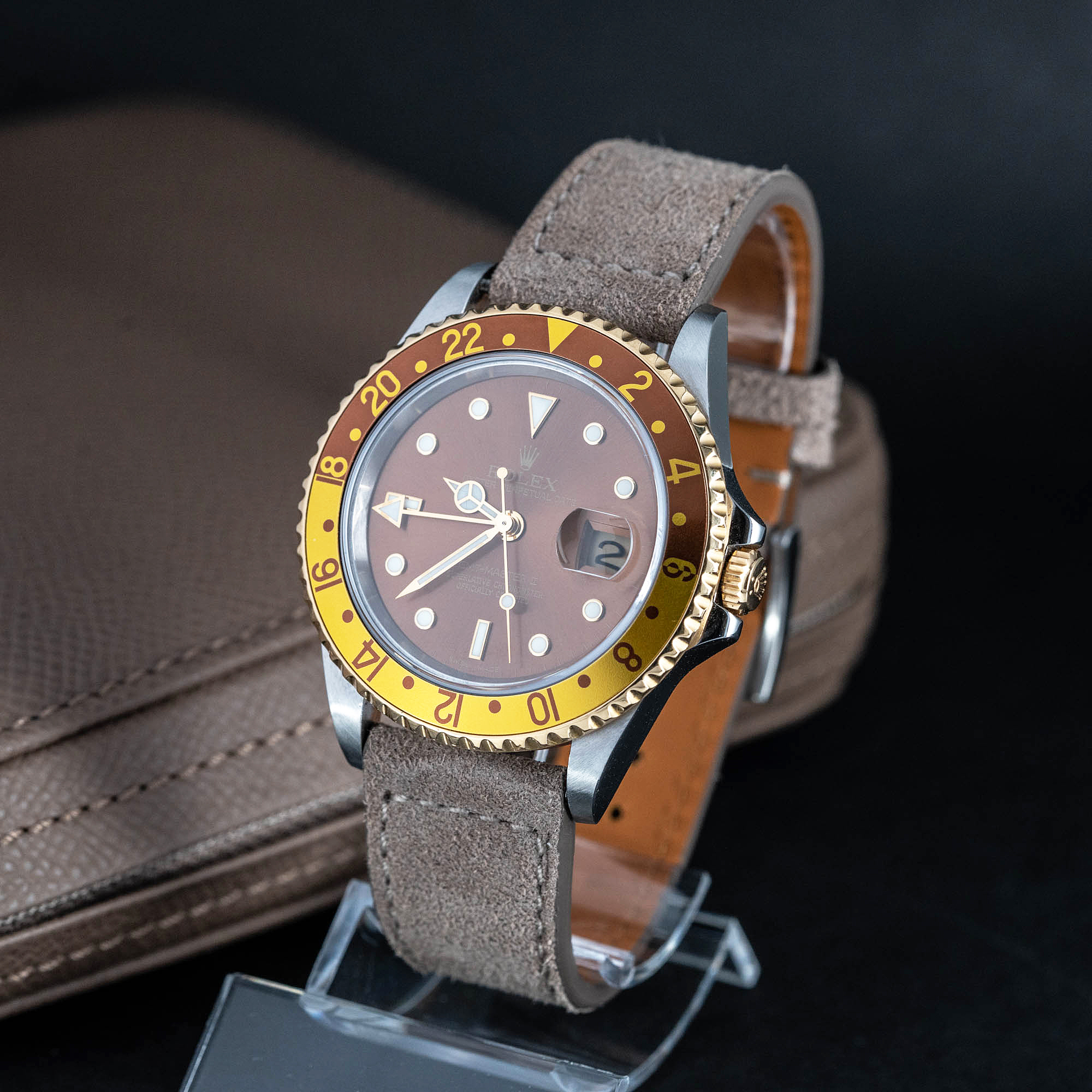 Rolexin kaksivärinen GMT-Master II 16713 oli tuotannossa vuosina 1989-2005. Kelloa valmistettiin usealla eri taulu-bezel yhdistelmillä, joista yleisin oli musta kellotaulu-musta bezel insert yhdistelmä. Root-bier malleissa oli ruskea kellotaulu ja joko ruskea-kulta bezel rengas insert tai harvemmin kokoruskea insert.  Harvinaisimmat tauluvaihtoehdot olivat hopean tai sappanjan sävyiset Serti-kellotaulut, joissa väli indeksit olivat timatteja ja 6-9-12 merkit olivat rubiineja.