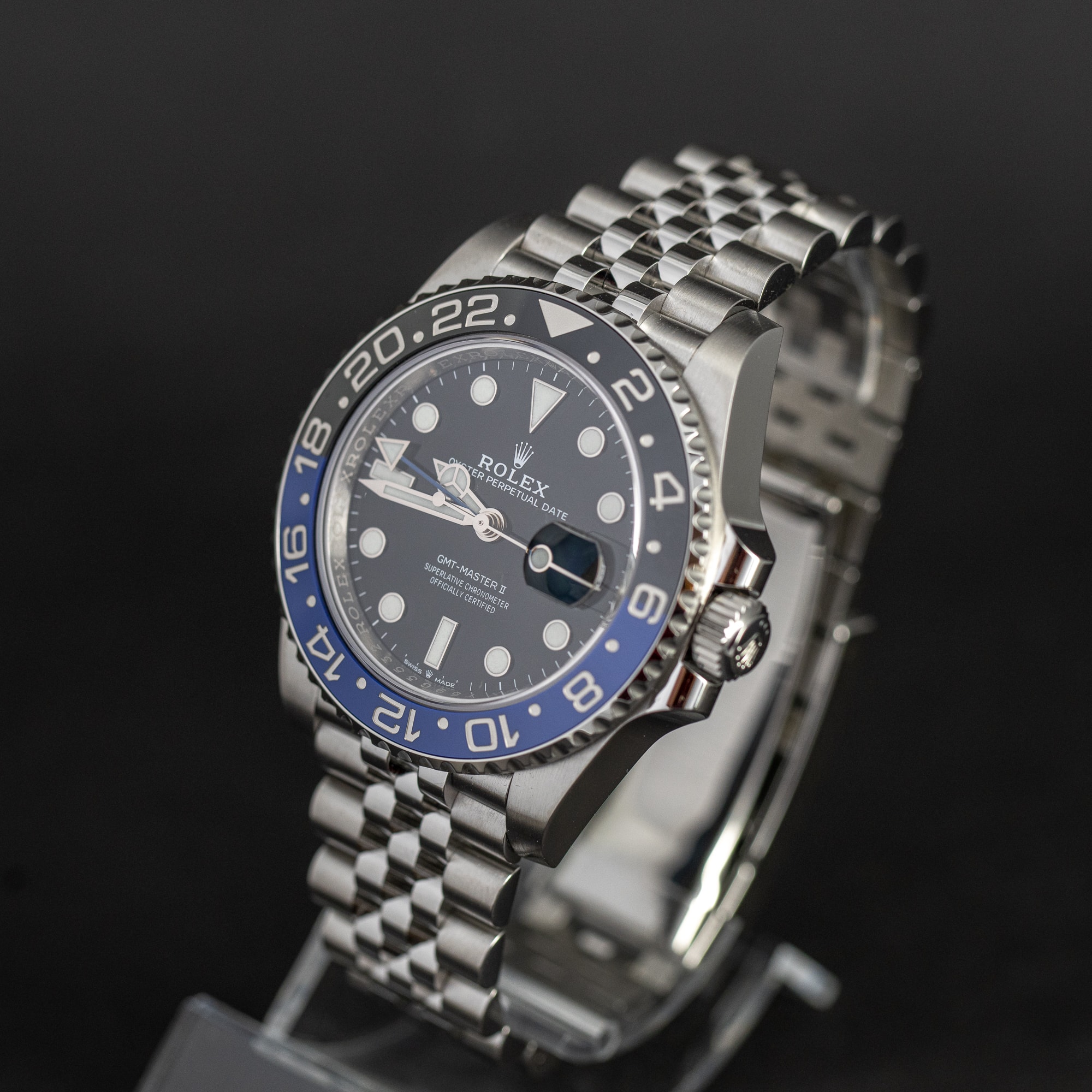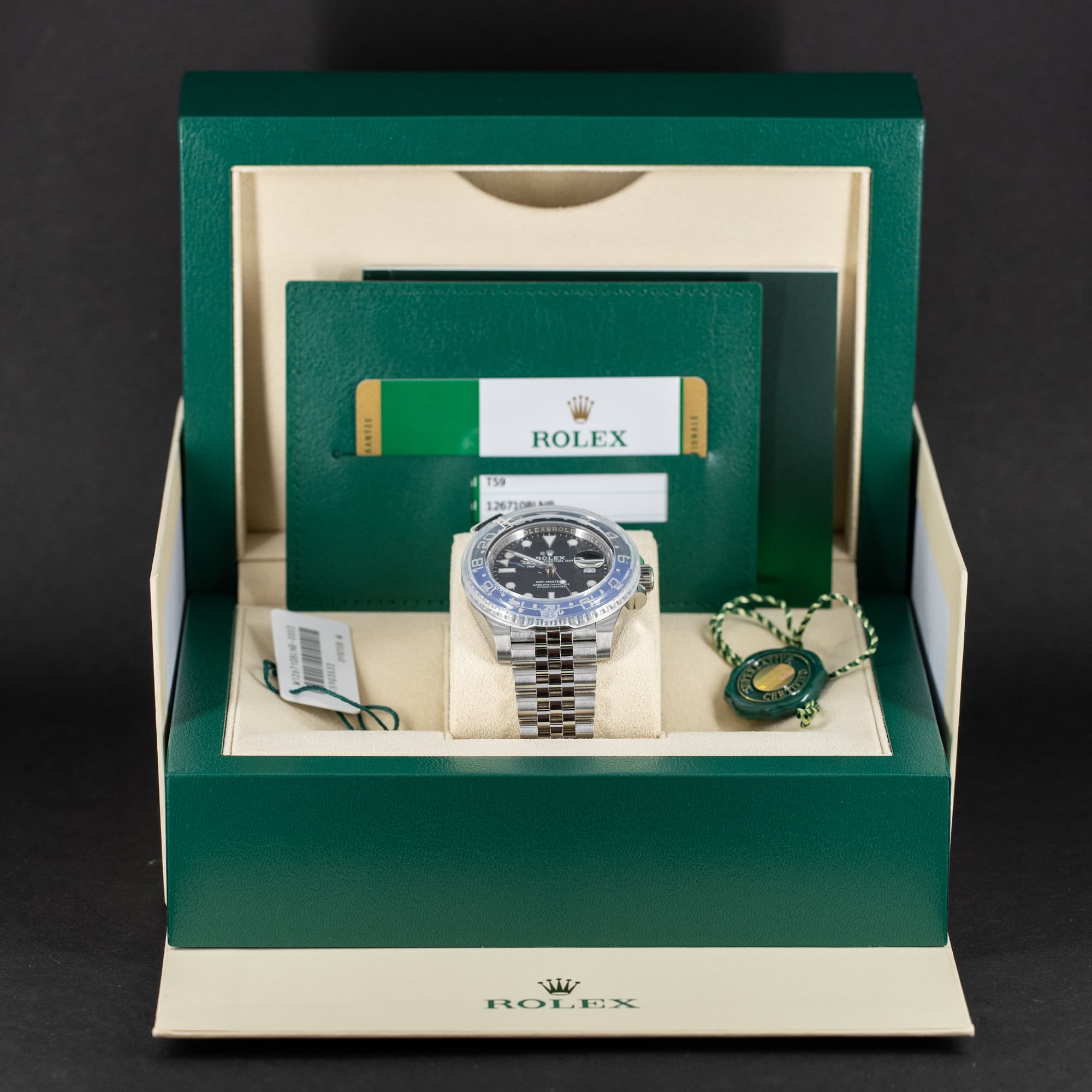 Rolex GMT-Master II ref. 126710 BLNR ”Batman” vuodelta 2019. Uusi, käyttämätön, full-set, suomikello. Uusin versio Jubilee teräsranteella. Kuoren koko 40mm.