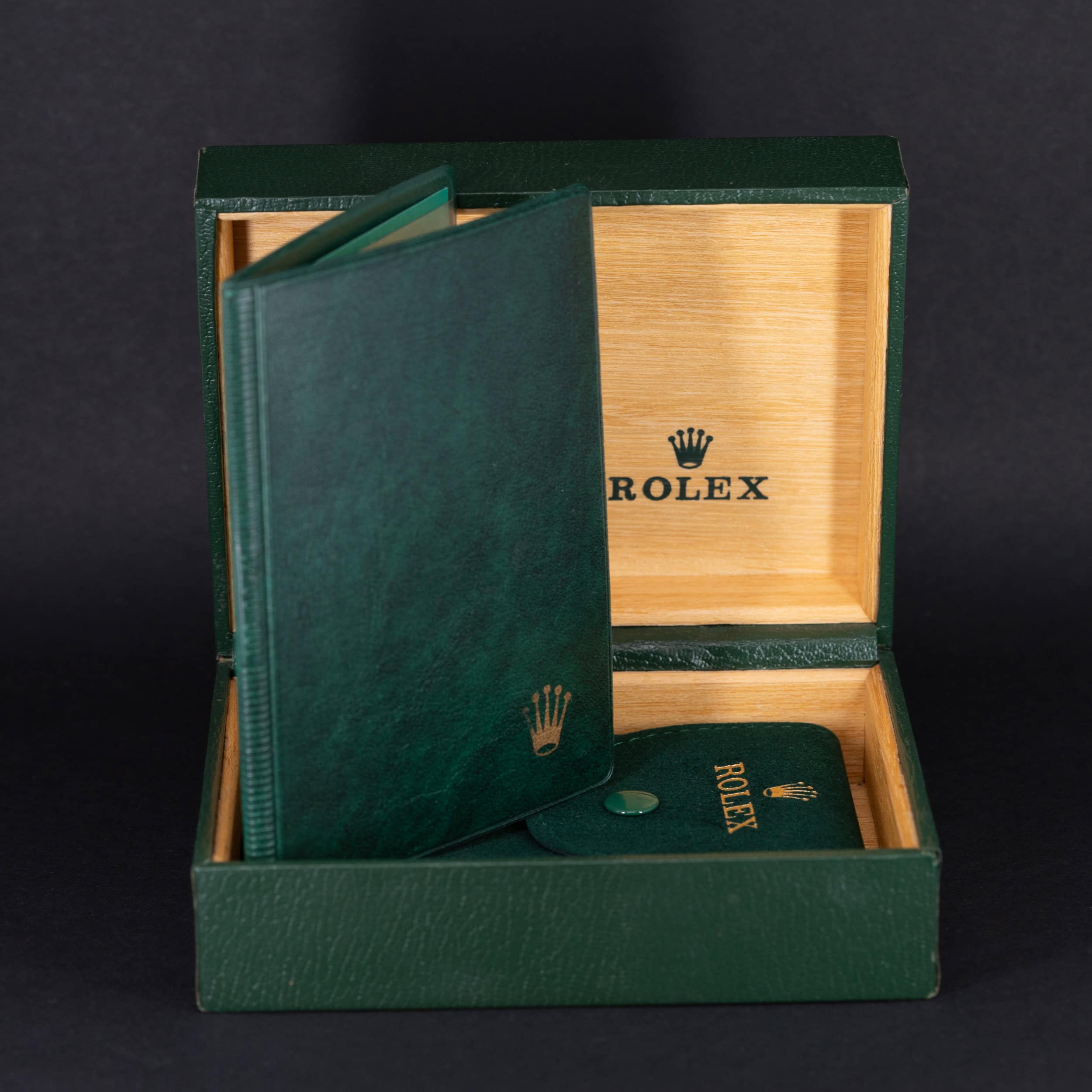 Kellon mukana tulee Rolexin vihreä kellolaatikko (ei sisälevyä), vihreä huoltopussi, alkuperäinen takuutodistus, käännösvihko sekä vihreä suojatasku.