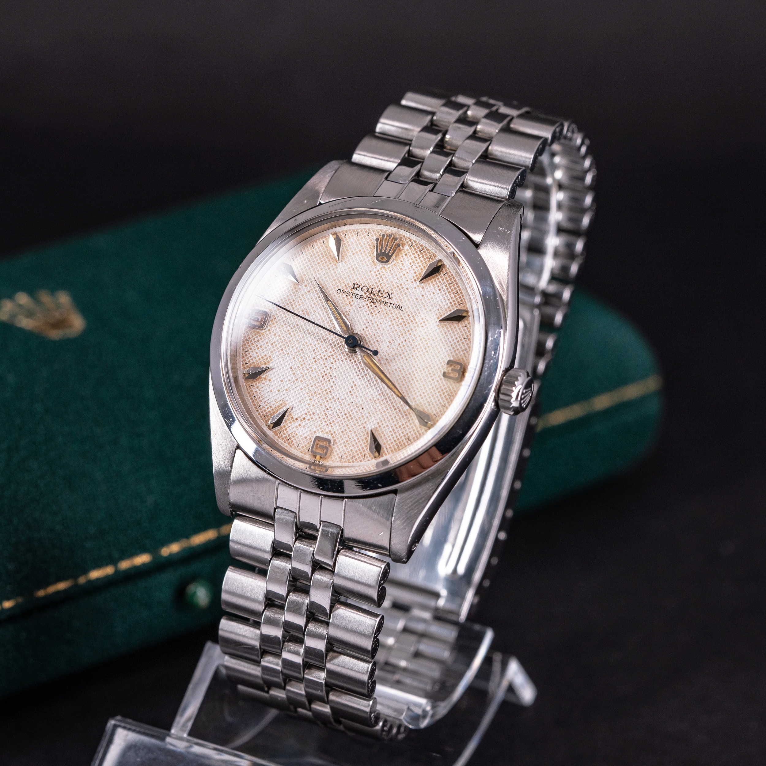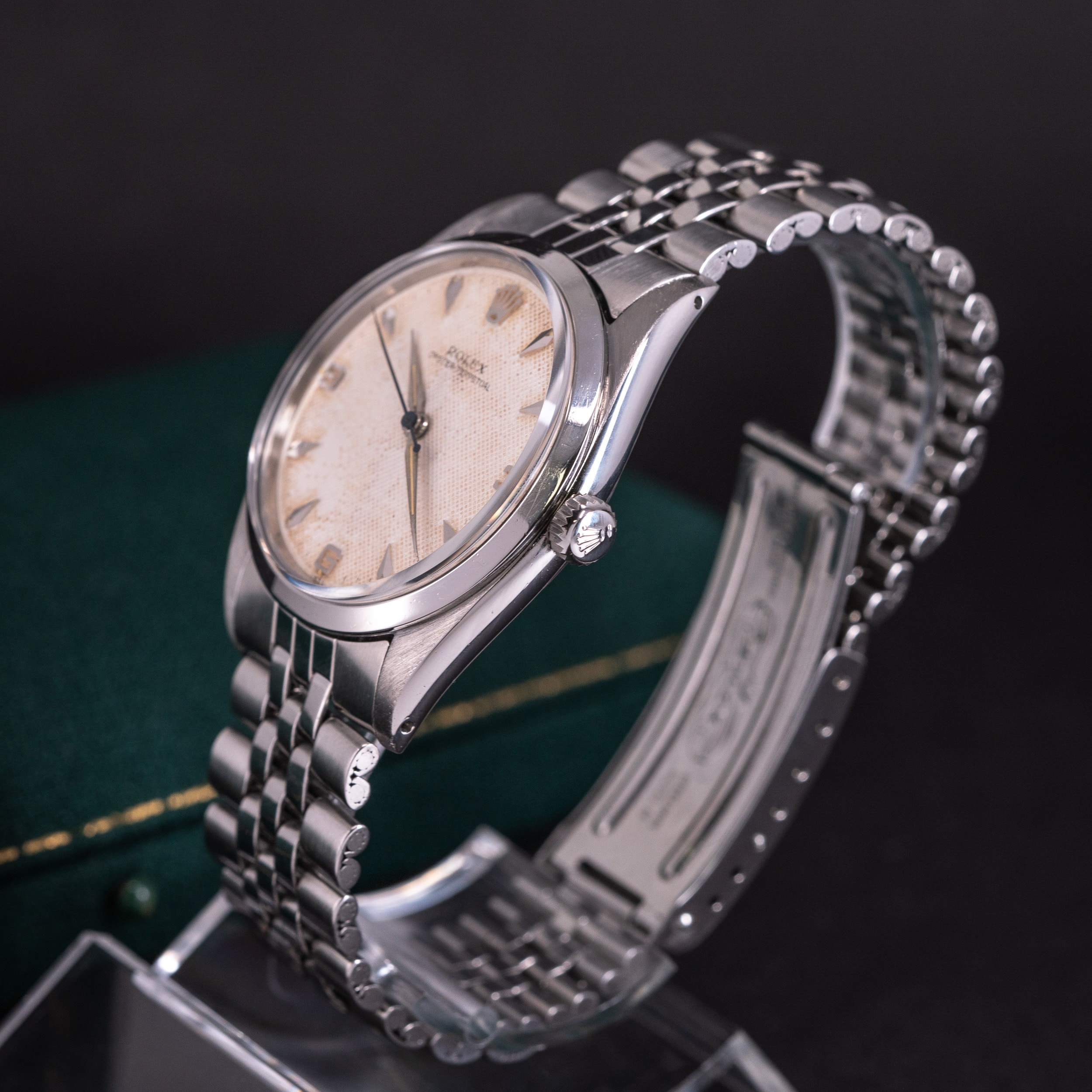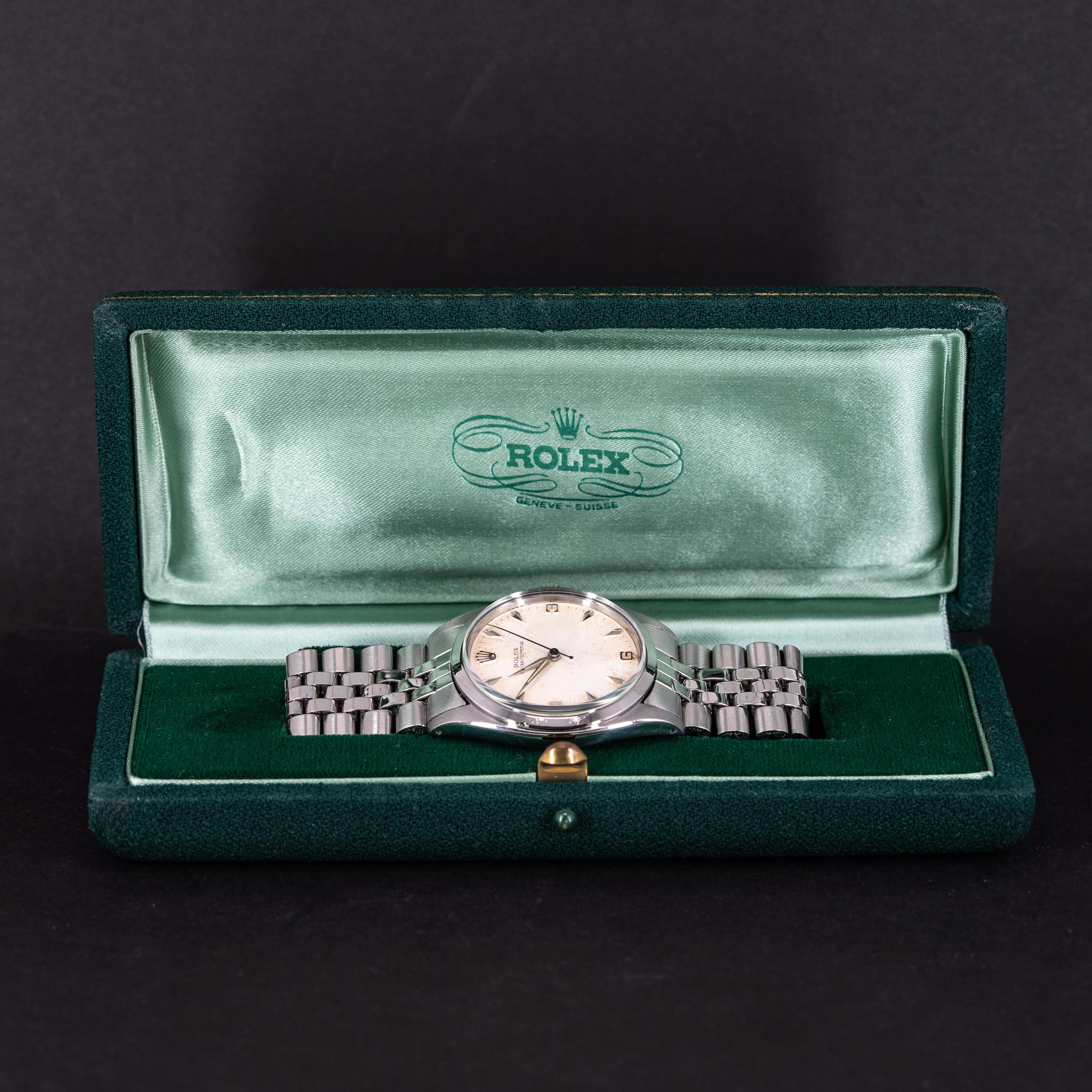 Kellossa on alkuperäinen Rolex 3-6-9 Honeycomb kellotaulu ja radium-osoittimet. Teräskuori on yhä hyväkuntoinen. Takapohjan sisäpuolella on leima II 1958. Kuoren koko on 36 mm.
