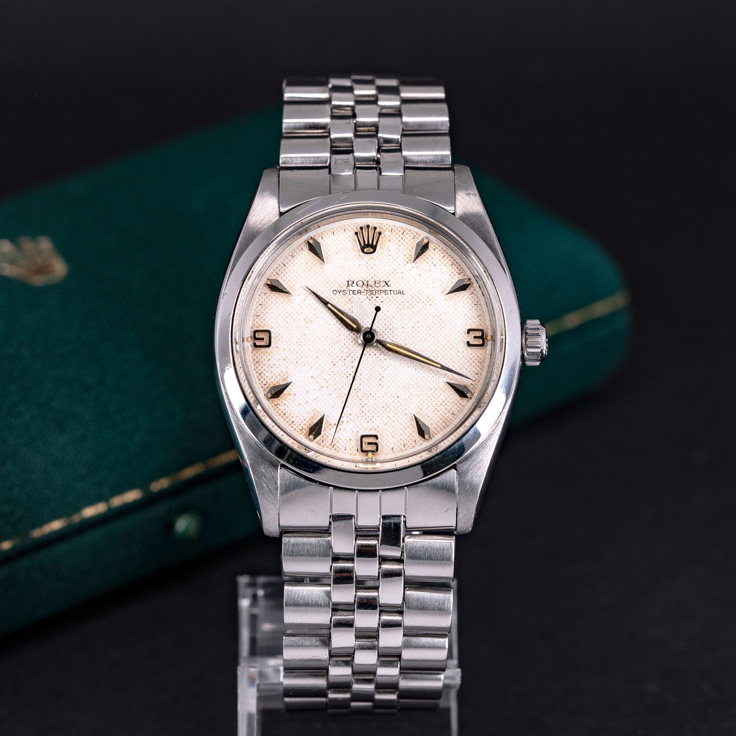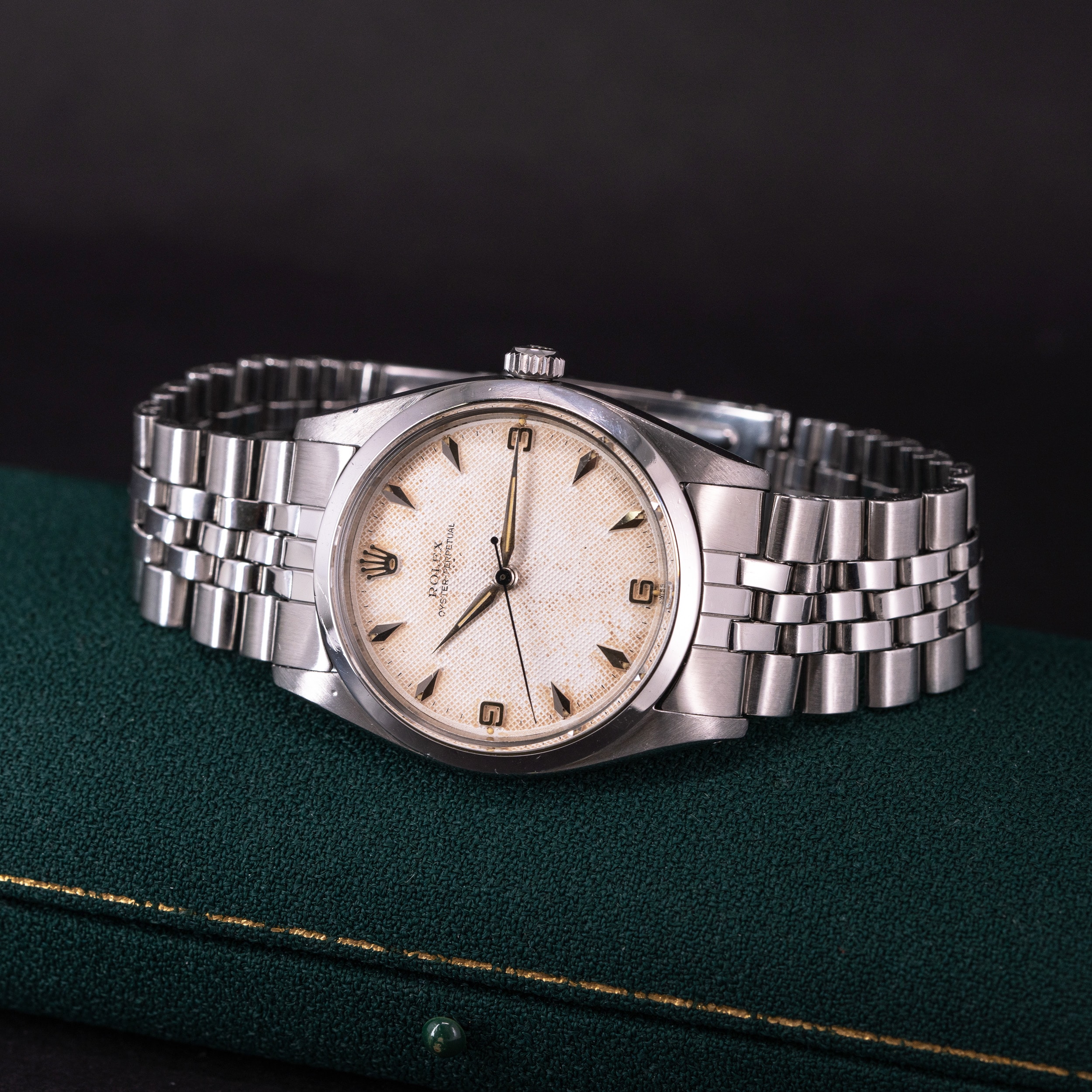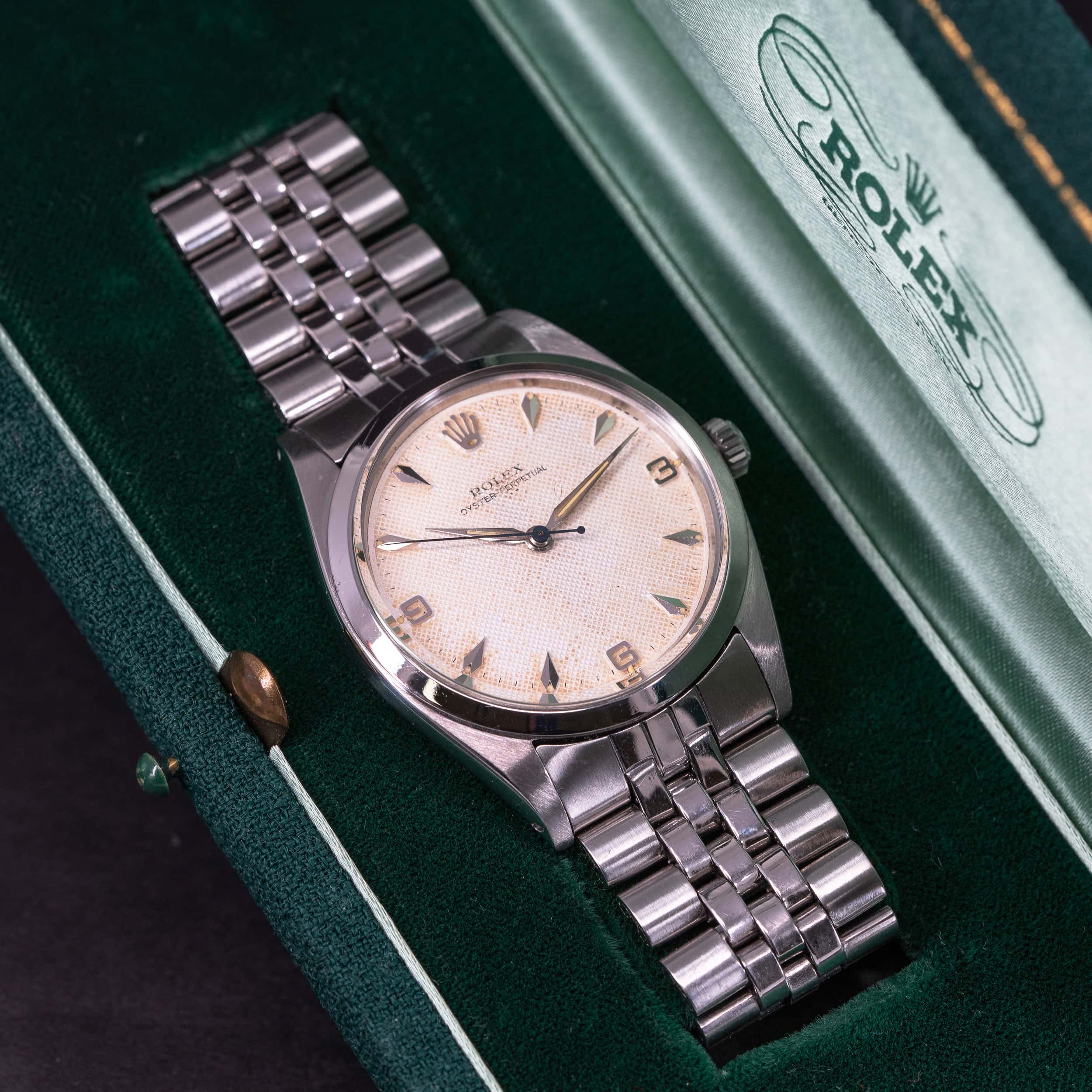 Kellossa on alkuperäinen Rolex 3-6-9 Honeycomb kellotaulu ja radium-osoittimet. Teräskuori on yhä hyväkuntoinen. Takapohjan sisäpuolella on leima II 1958. Kuoren koko on 36 mm.