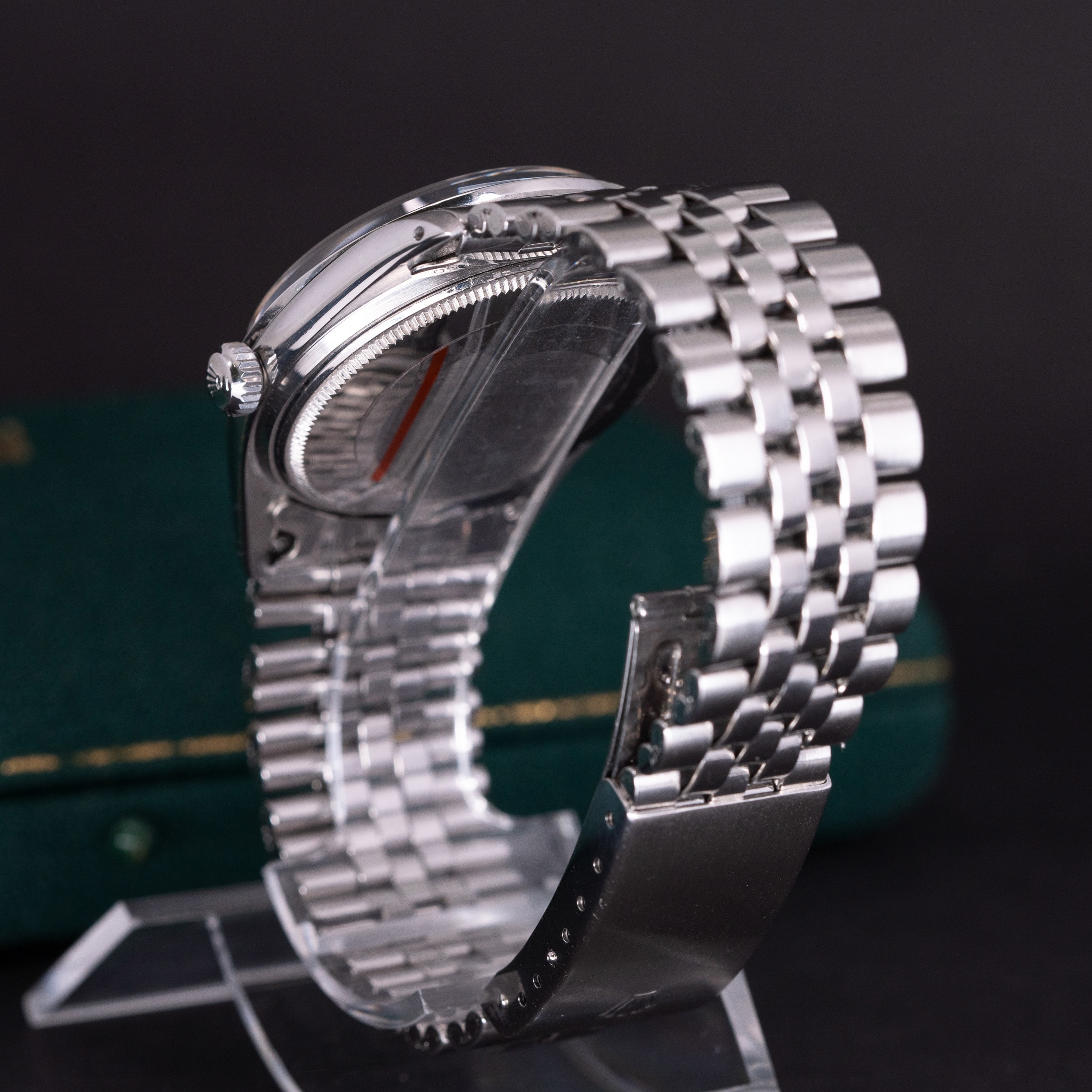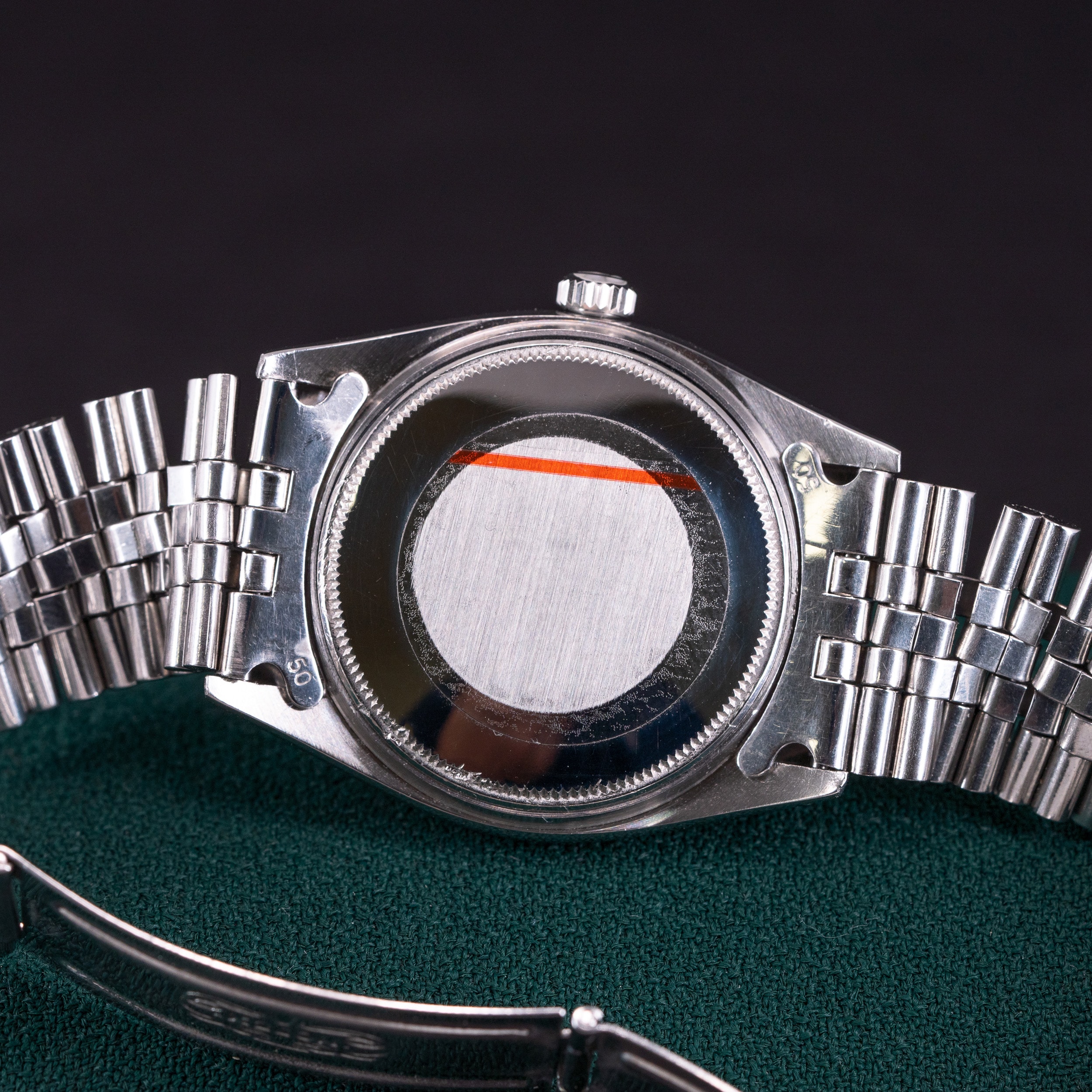 Rolex Jubilee 6251H teräsranneke no.50 päätypaloilla on hyvässä käyttökunnossa. Lukossa ei ole vuosikoodia.