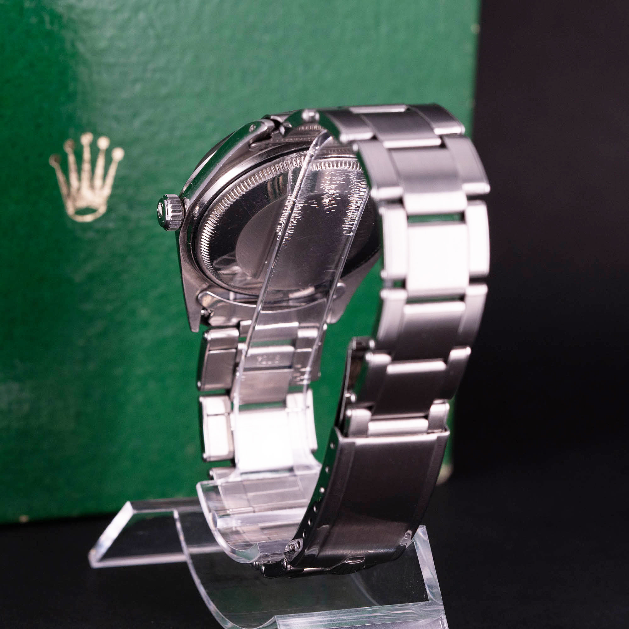 Kellossa on Rolexin harvinainen 20mm, 7206/80 ”riveted” teräsranneke (lukkokoodi 4/60). Kellon voi ostaa myös Rolex 9251/55 (lukkokoodi 3/66) Jubilee teräsranteella (15200€).