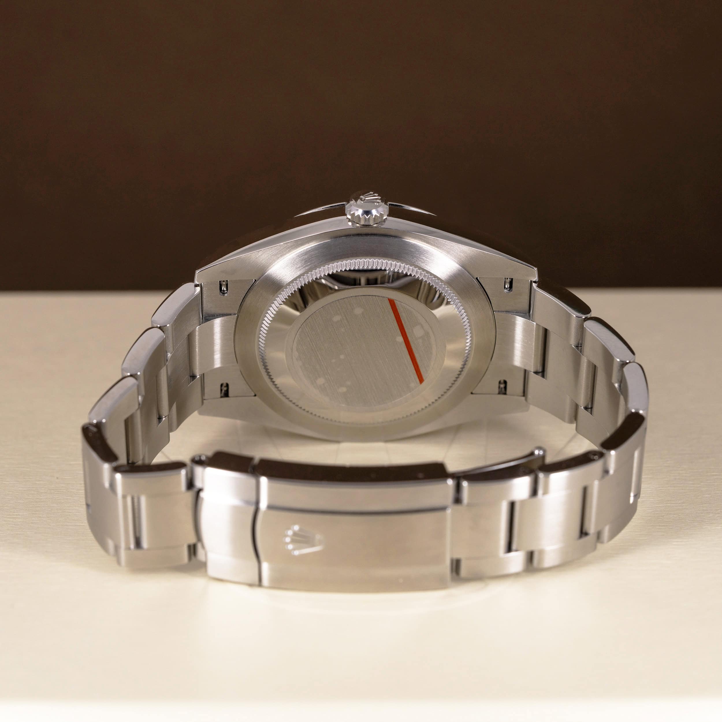 Teräsranneke on uudenveroisessa kunnossa. Ranteessa on Rolexin Easy-Link pikasäätö toiminto.