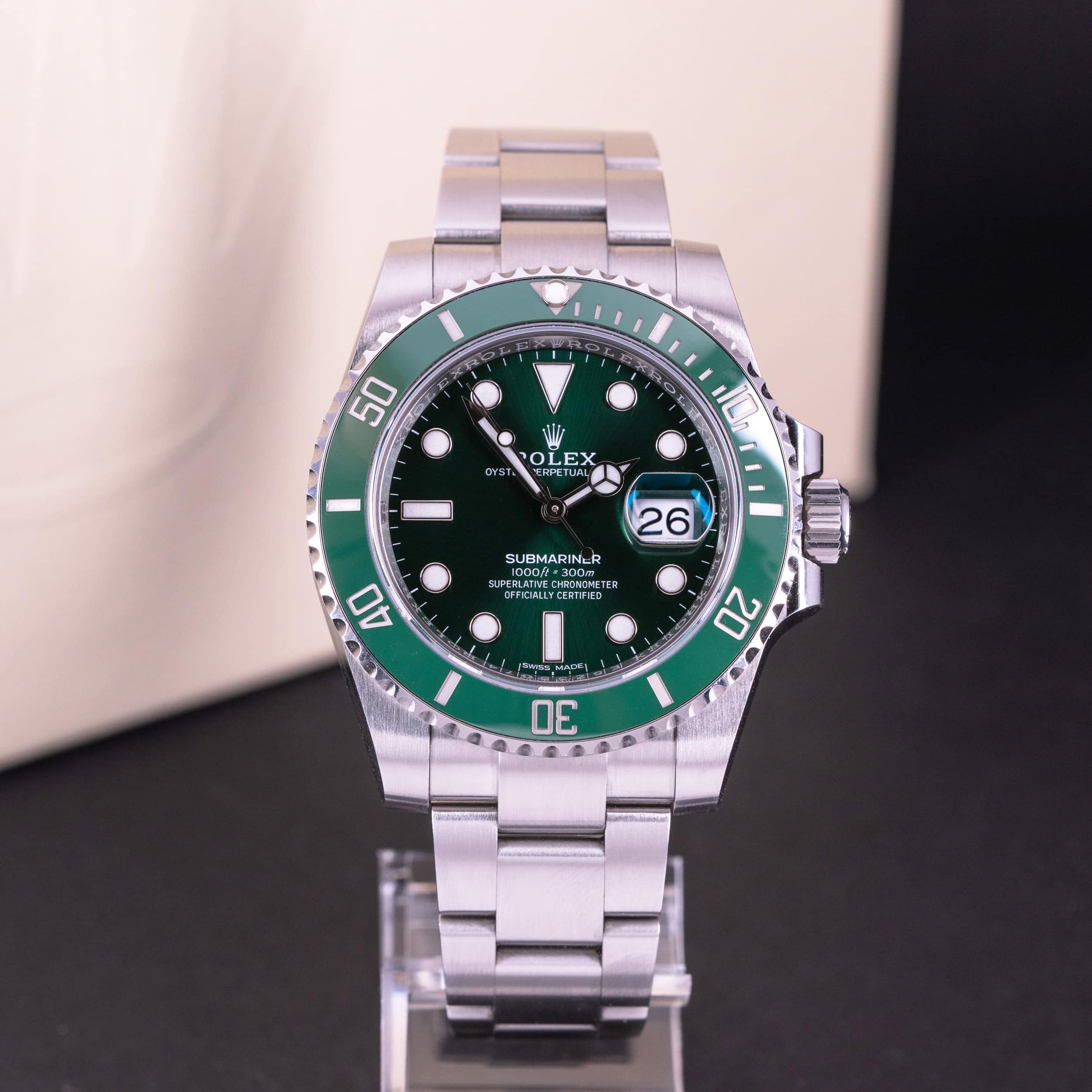 Rolex Oyster Perpetual Submariner “Hulk” 116610LV vuodelta 2020. Full set, kaikki laatikot ja paperit.