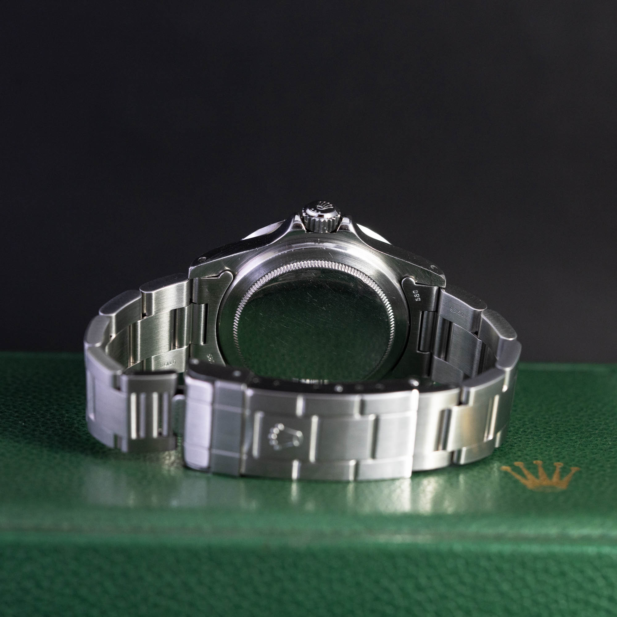 Kellossa on uusi, käyttämätön NOS Rolex ref. 93150/580 Oyster flip-lock teräsranneke (lukkokoodi OP, 2006). Kellon mukana tulee Rolexin vihreä kellolaatikko (ei tyynyä) ja Rolexin huoltopussi, ei papereita.