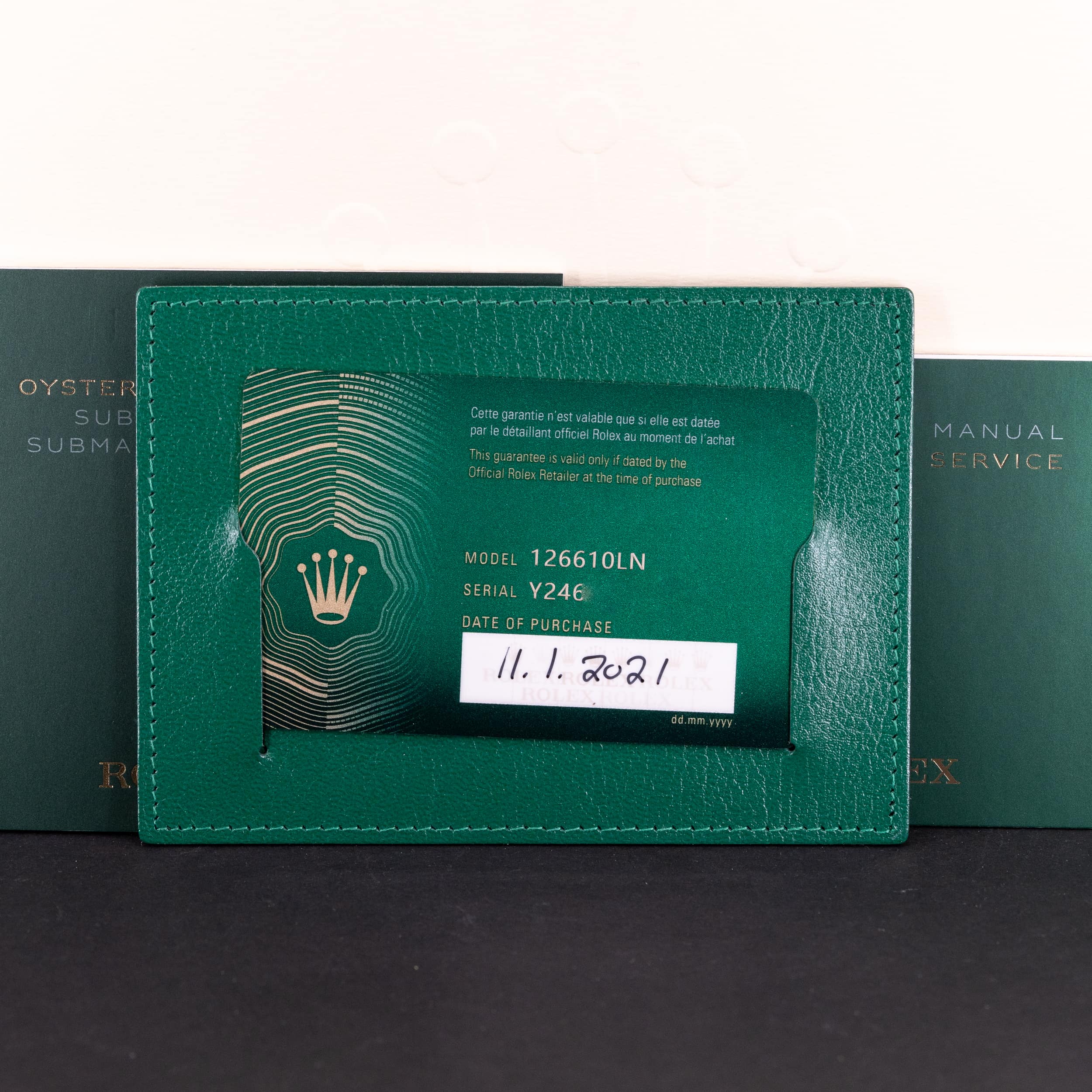 Kellolla on Rolexin kansainvälinen takuu voimassa vuoteen 2026 asti.