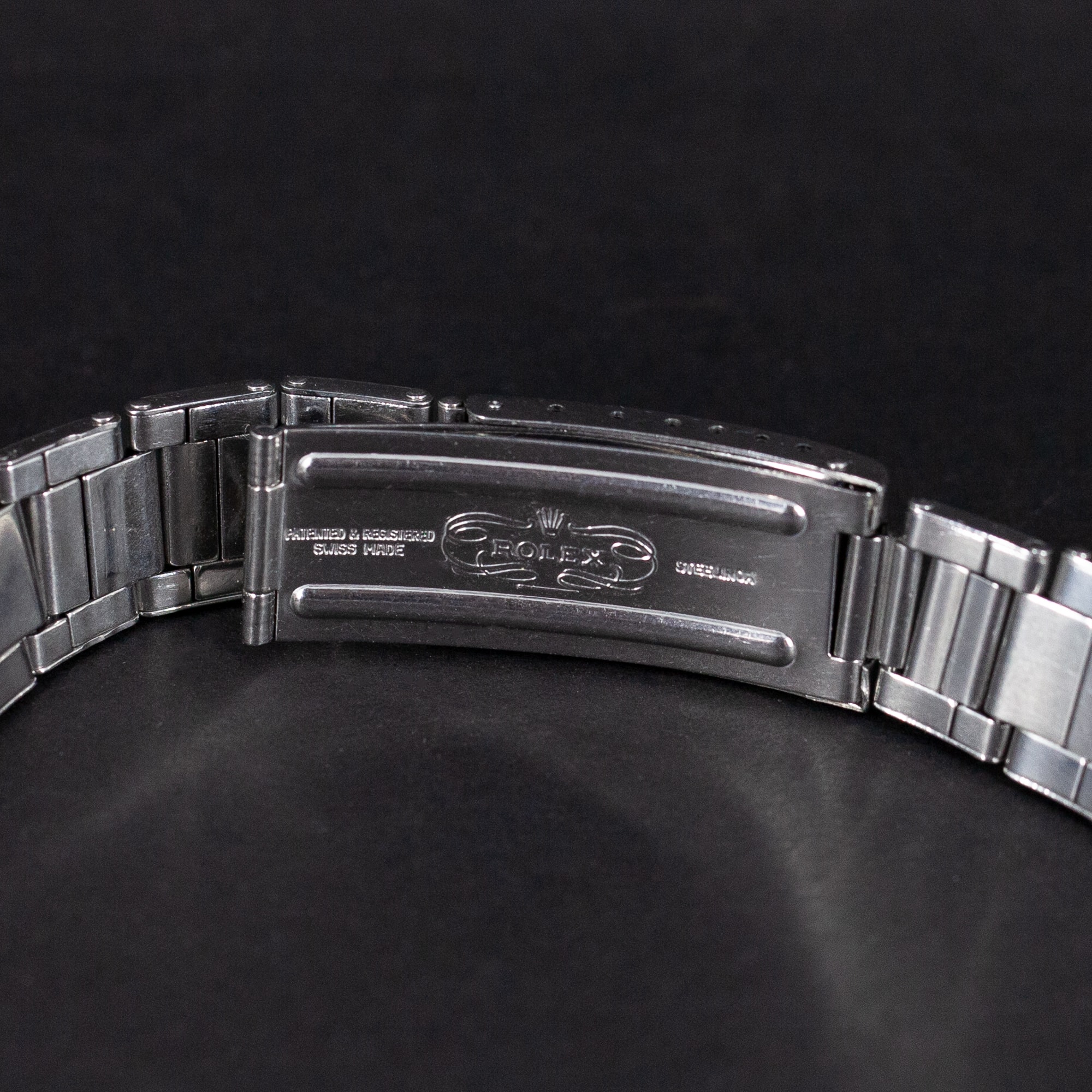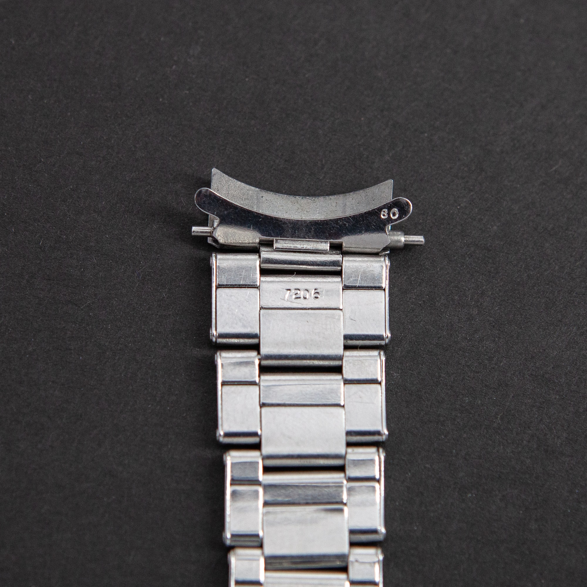 Kellossa on harvinainen Rolex 7206/80 riveted teräsranneke. Teräsranteen lukon koodi on 2/65.