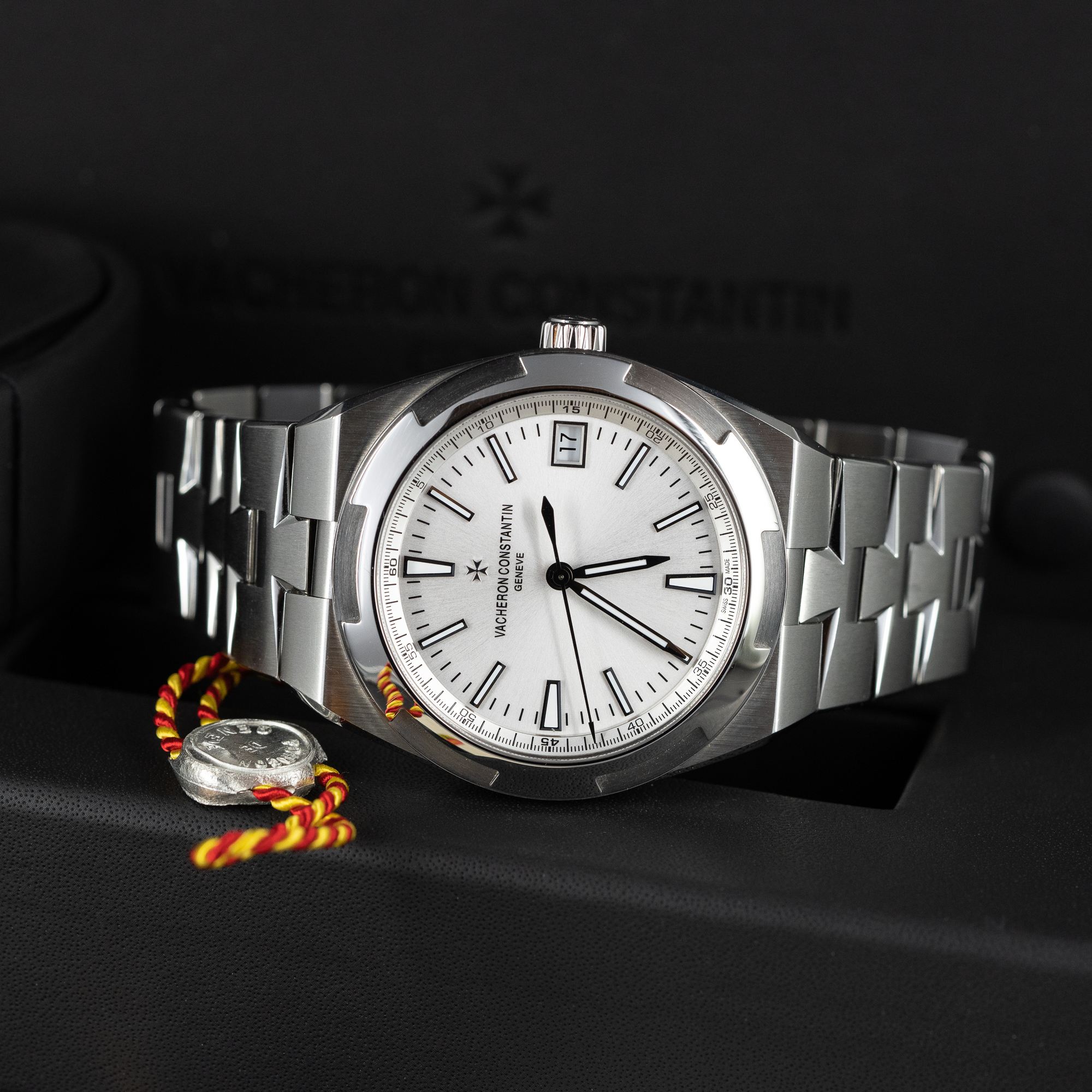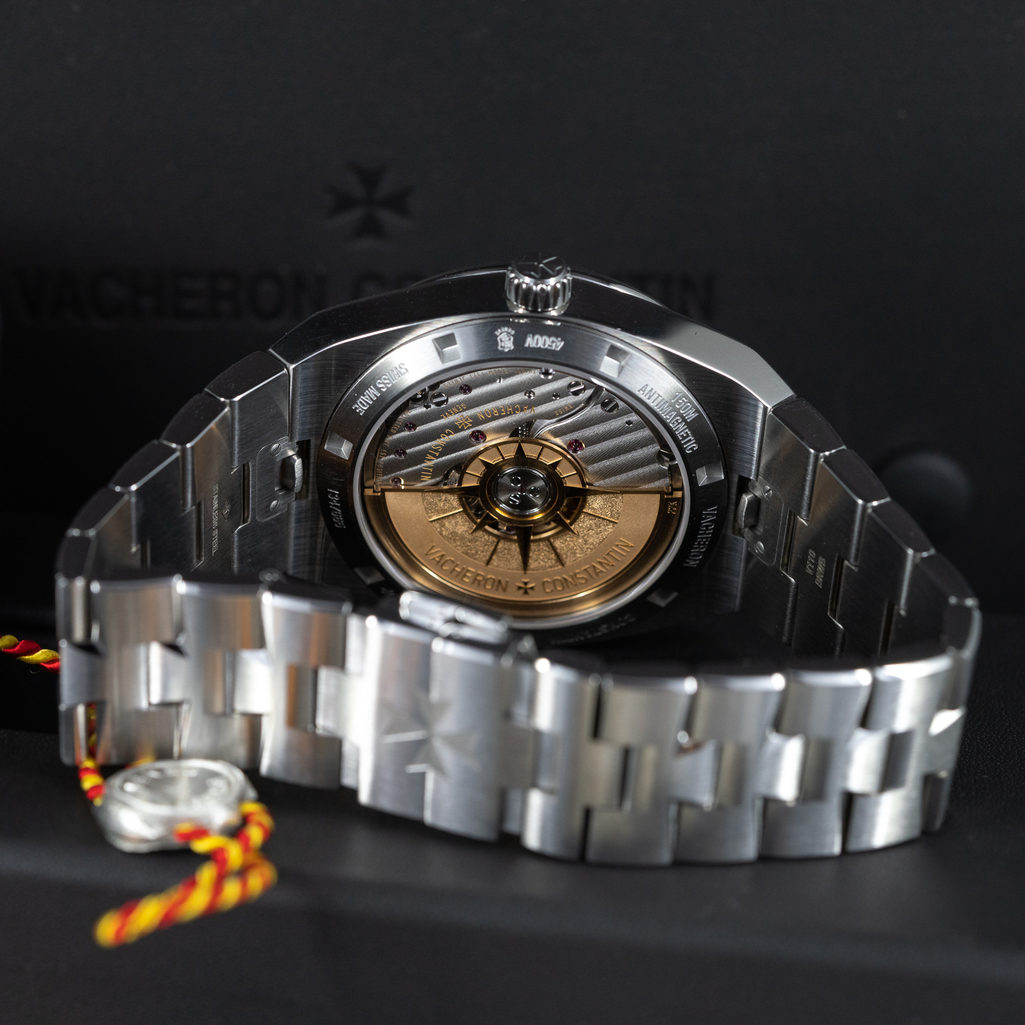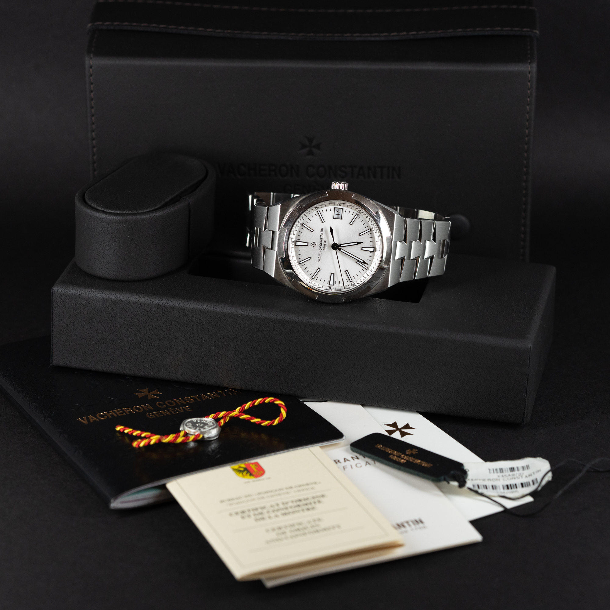 Vacheron & Constantin Overseas ref. 4500V/110A-B126 vuodelta 2016. Full-set, kaikki laatikot ja paperit. Suomikello. Kellossa on virheetön kellotaulu ja osoittimet. Teräskuoressa hyvin pieniä käytön jälkiä. Vähän käytetty yksilö alkuperäisellä teräsranteella. Koneisto on Vacheron & Constantin kehittämä cal.5100 automaattikoneisto jossa on 20-karaatin kultaroottori ja 60h käyntivara.